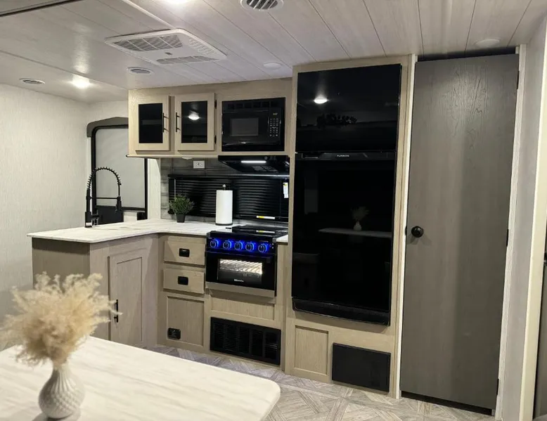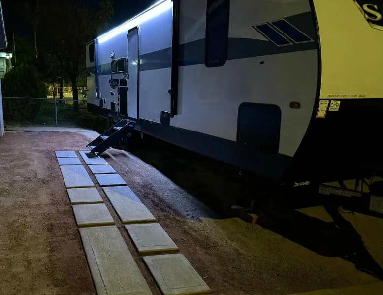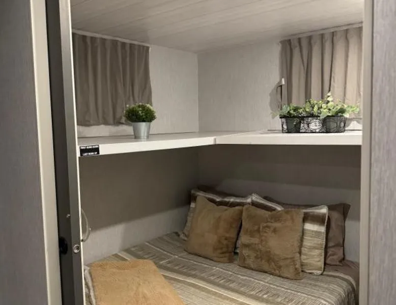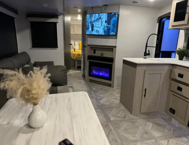 Comfortable Accommodations: Cozy Stationary RV Getaway in Las Vegas offers a two-bedroom, one-bathroom layout with a living room. The property features a fully equipped kitchen, air-conditioning, and a fireplace. Modern Amenities: Guests enjoy free WiFi, a lounge, and family rooms. Additional amenities include a sofa bed, refrigerator, microwave, TV, and wardrobe. Convenient Location: Located 12 mi from Harry Reid International Airport, the camping site is near attractions such as The Neon Museum (4.3 mi), Fremont Street Experience (5 mi), and Mob Museum (6.2 mi). Highly Rated by Guests: Guests appreciate the private check-in and check-out services, ensuring a comfortable and hassle-free stay. The fireplace is the standout feature of this mobile home. This air-conditioned mobile home features 1 living room, 2 separate bedrooms and 1 bathroom with a shower. In the fully equipped kitchen, guests will find a refrigerator, kitchenware, a microwave and a tea and coffee maker. The mobile home features a seating area, a wardrobe, a sofa, heating, as well as a flat-screen TV. The unit has 3 beds.