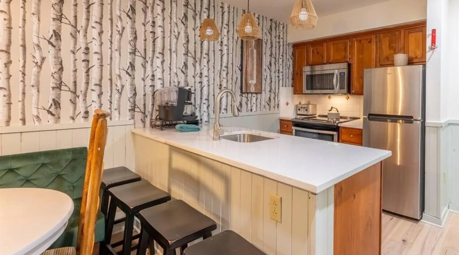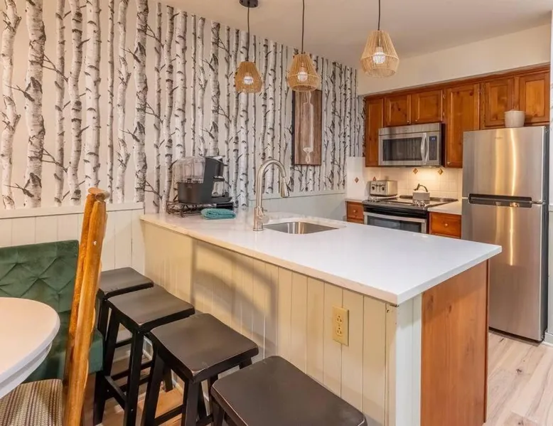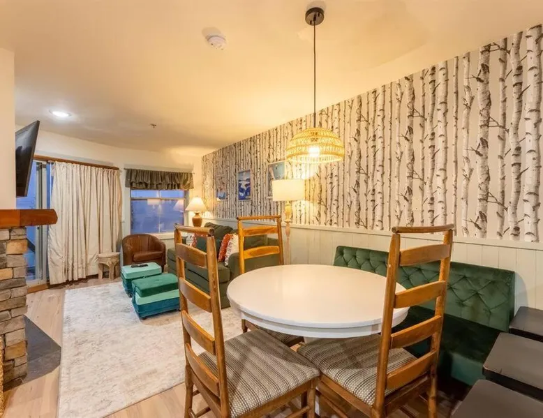 Spacious Accommodations: RF312 Hot Tub Heated Garage and Parking in Snowshoe offers a spacious apartment with two bedrooms and two bathrooms. The living room features a balcony and a fireplace, providing a comfortable space for relaxation. Modern Amenities: Guests enjoy free WiFi, air-conditioning, and a fully equipped kitchen with a refrigerator, microwave, dishwasher, oven, and stovetop. Additional amenities include a hot tub, tea and coffee maker, hairdryer, and a work desk. Convenient Location: Located 65 mi from Greenbrier Valley Airport, the apartment is a 4-minute walk from The Big Top. Seneca State Forest is 29 mi away, offering scenic outdoor activities. This apartment's standout features are the hot tub and fireplace. In the well-fitted kitchen, guests will find a stovetop, a refrigerator, a dishwasher and an oven. The spacious apartment features air conditioning, a private entrance, a tea and coffee maker, heating and a flat-screen TV. The unit has 4 beds.