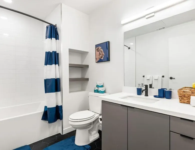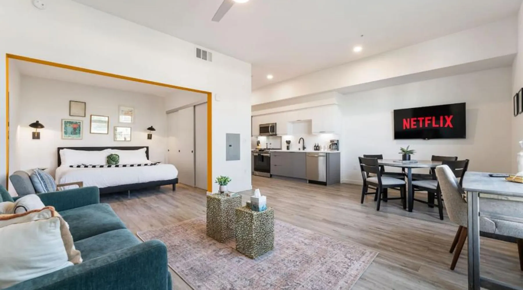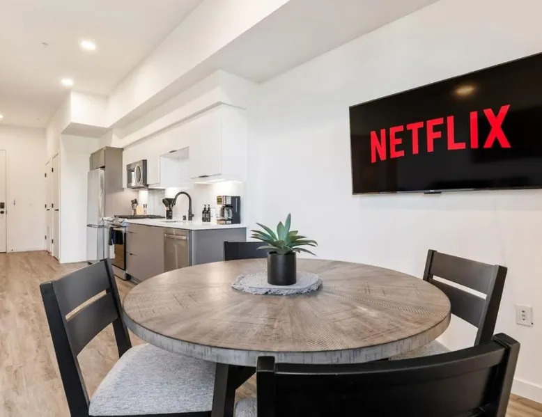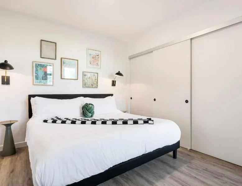 Spacious Accommodations: Chic Home in Los Angeles offers a spacious apartment with one bedroom and one bathroom. The ground-floor unit features a private entrance and a balcony with city views. Modern Amenities: Guests enjoy free WiFi, air-conditioning, and a fitness center. The apartment includes a fully equipped kitchen with a refrigerator, oven, stovetop, microwave, dishwasher, and tea and coffee maker. Additional amenities include a washing machine, work desk, and free toiletries. Convenient Location: Located in the city center, the property is 12 mi from Hollywood Burbank Airport. Nearby attractions include La Union Station (1.4 mi), Microsoft Theater and Crypto.com Arena (1.9 mi each), and Dodger Stadium (2.4 mi). Boating is available in the surrounding area. Featuring a private entrance, this spacious apartment also consists of 1 separate bedroom and 1 bathroom with a bath and a hairdryer. Guests will find a stovetop, a refrigerator, a dishwasher and kitchenware in the well-fitted kitchen. The apartment also offers a barbecue. Boasting a balcony, this apartment also provides air conditioning, a washing machine and a TV. The unit offers 1 bed and 1 futon.