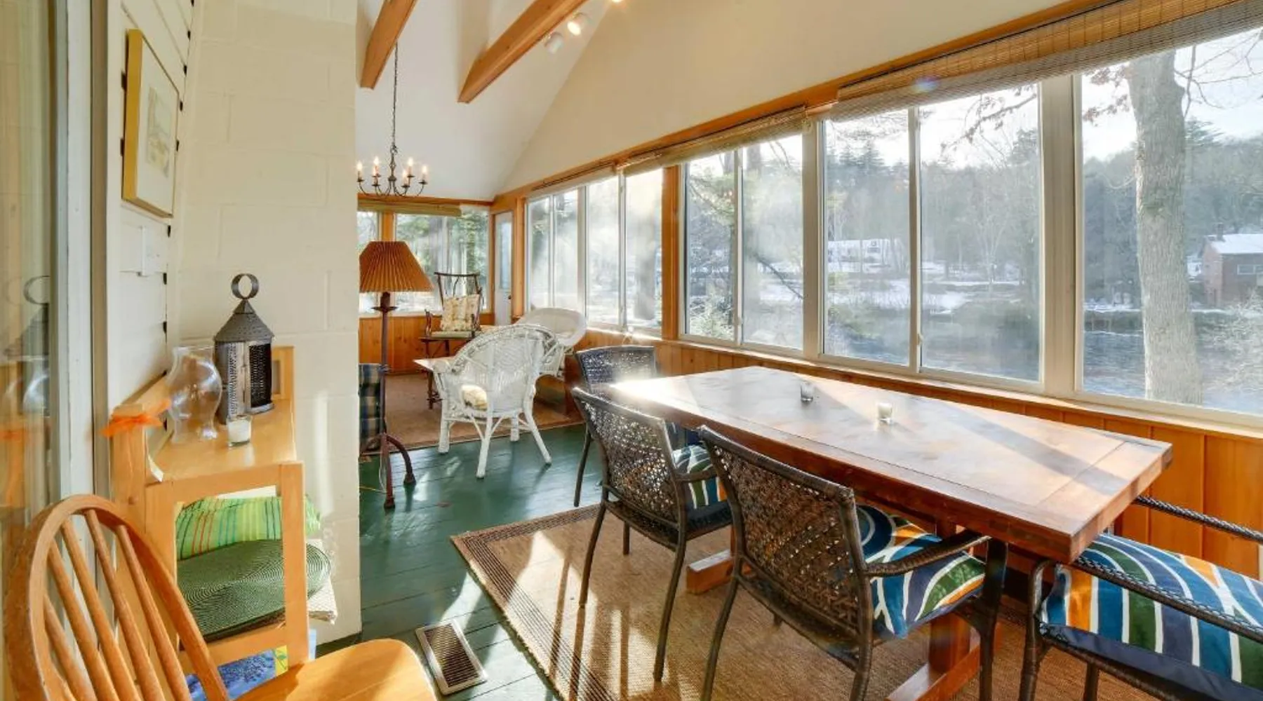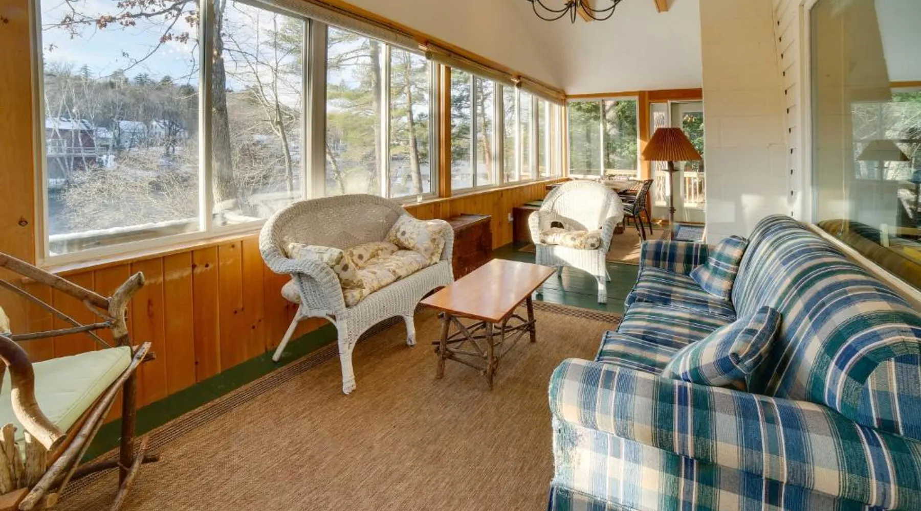 Beachfront and Free WiFi: Lakefront Bradford Cottage with Dock, Near Skiing! in Bradford offers direct beachfront access and free WiFi. Guests can enjoy stunning lake views and relax on the balcony. Comfortable Living Spaces: The holiday home features three bedrooms and a living room. Amenities include a fully equipped kitchen, washing machine, and a games room. Outdoor Spaces: An outdoor dining area provides a perfect spot for alfresco meals. A barbecue is available for outdoor entertainment. Local Attractions: Lake Sunapee Golf Course is 19mming pool is 19mming pool is 12 mi, New Hampshire State Capitol 29 mi, New Hampshire Supreme Court 30 mi. Lebanon Municipal Airport is 40 mi away. Boasting a private entrance, this holiday home features 1 living room, 3 separate bedrooms and 1 bathroom with a bath and a shower. Guests will find a stovetop, a refrigerator, a dishwasher and kitchenware in the well-fitted kitchen. The holiday home also comes with a barbecue. Featuring a balcony with lake views, this holiday home also features a washing machine and a flat-screen TV with cable channels. The unit has 4 beds.