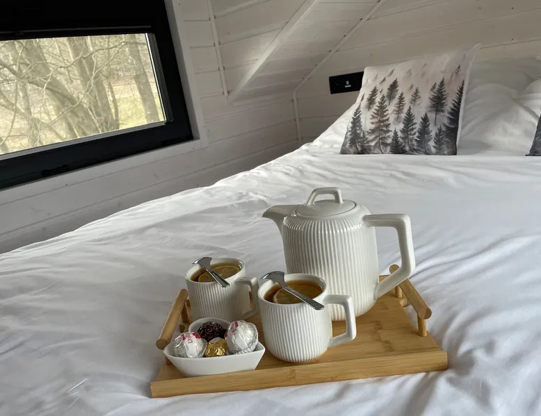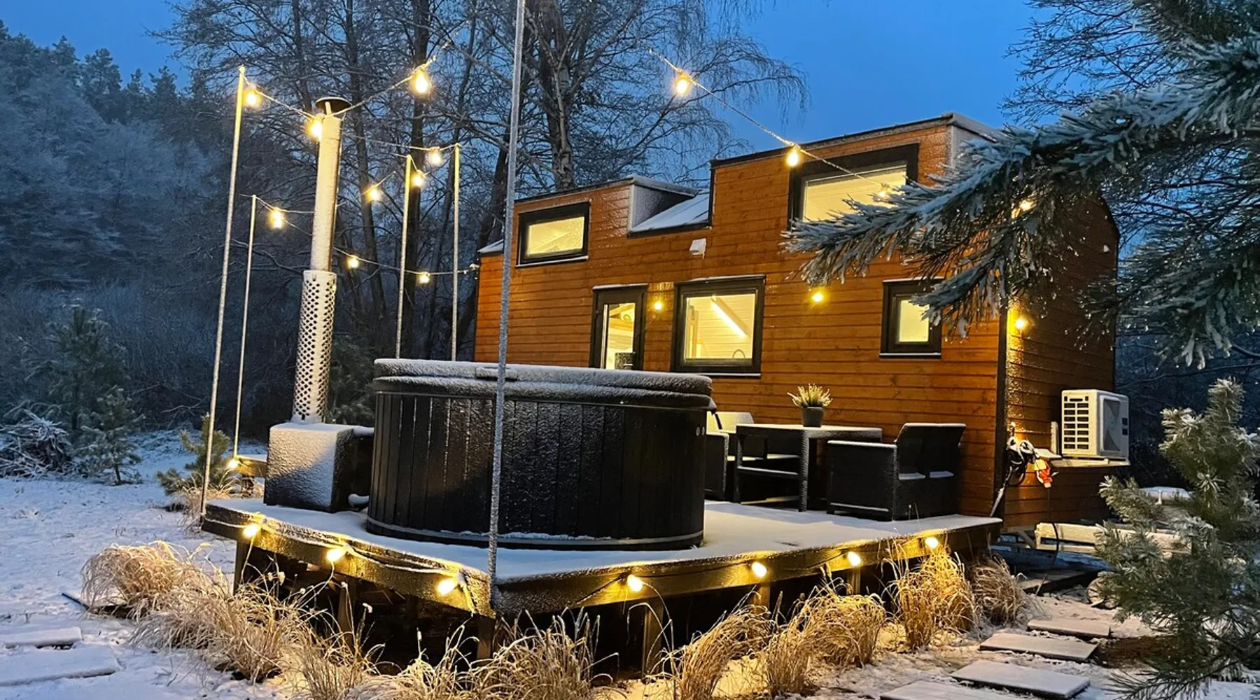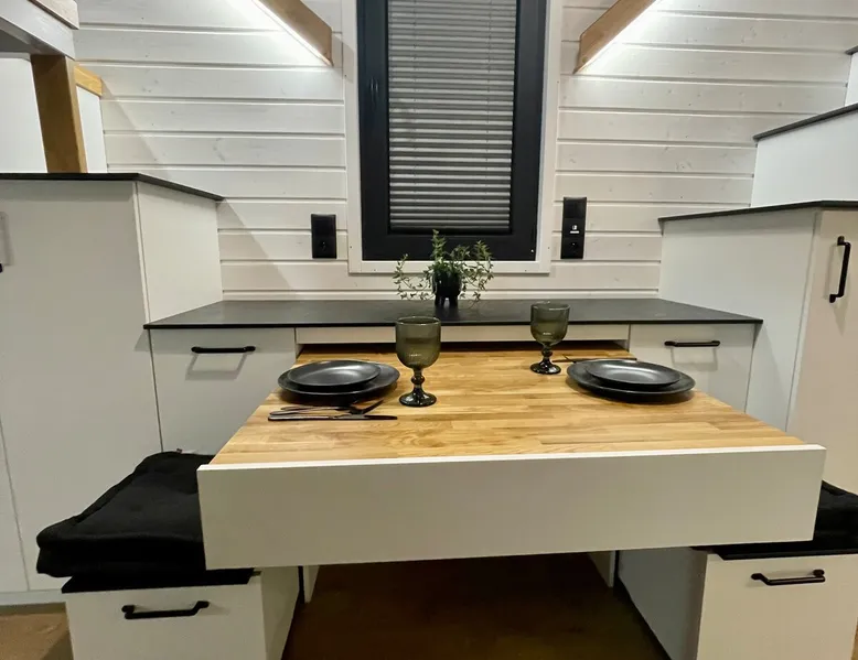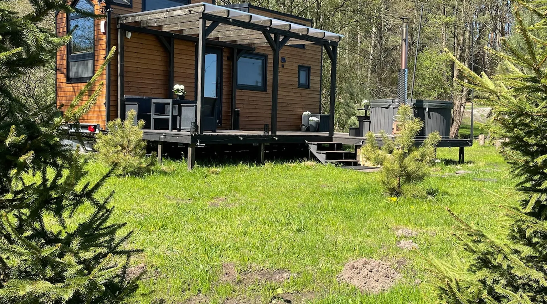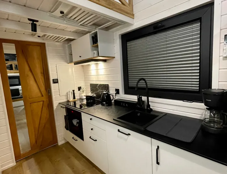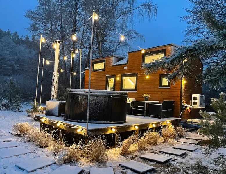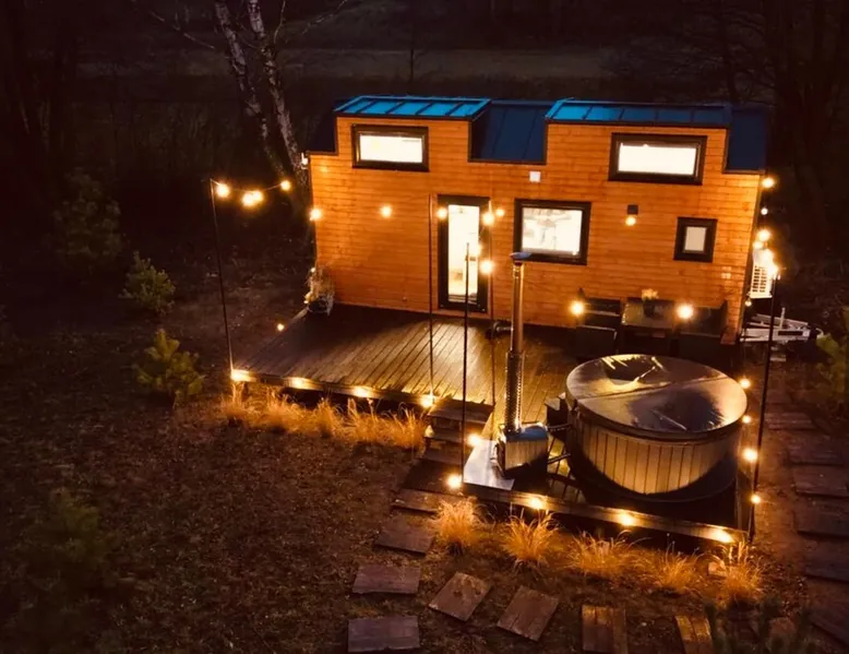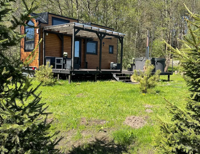 Tiny Silent House is the perfect place to escape the hustle and bustle of the city. This cottage will delight you with its charm and tranquility. It is surrounded by beautiful nature where you can rest and recharge. The house is fully equipped with everything needed for a comfortable stay, from a tastefully decorated bedroom to a cozy lounge. You can also use the lovely terrace and *hot tub where you can enjoy the fresh air and beautiful views . The space Hello, I would like to show you Tiny house in the highest quality workmanship. Our tiny house is designed as functional as possible so that the user doesn't run out of anything they don't have in their own home. Despite the small space, we have a room with a lockable door with a sofa bed where we can read a book or watch a TV. Fully equipped kitchen and dining area. In addition, on the landing, there is a living room with beautiful views of the landscapes and the possibility of relaxing in front of the TV. There is also a bedroom on the first floor - for 2 people , where you can feel the atmosphere outside the windows : trees , forests , nature . :) Guest access As a standard, there is a cottage with a terrace , a hot tub is charged extra. First session 200zl ,every next day 100 zlotys . During the period from May to August inclusive, booking only for entire weekends ( minimum 3 nights ) There is a free fire pit near the property. The heat collected by yourself in the forest is also free , we can also prepare a tree for a fee of 50 zł . Other things to note TINY SILENT HOUSE RULES: §1 RESERVATION AND PAYMENTS 1. These Rules set out the terms and conditions under which Tiny Silent House can be booked and rented. Making a reservation is tantamount to accepting the provisions of these Terms. The rules are an integral part of the contract. At the time of booking (payment of 30% of the entire stay) the rental agreement is deemed to have been concluded. The rules cover all guests of the cottages and others on the property. Compliance with the rules by you and other guests ensure you have a peaceful and safe stay. 2. The agreed initial booking (by phone or email) must be confirmed by paying the amount of the deposit referred to in point 1 within 3 days (send a confirmation of the transfer by email). Failure to pay for the above dates results in the cancellation of the initial reservation. 3. By making a reservation, the Landlord agrees to the processing of personal data only for the purpose of completing the reservation and fulfilling the check-in obligation in accordance with the provisions of the Personal Data Protection Act. The Reservationer has the right to inspect and update their personal information. 4. The cost of the stay is determined individually for each client and depends on the length of stay, number of people, dates of stay, etc. 5. The cost of the stay includes: – Accommodation with the possibility of using all the equipment . 6. Payment of the deposit by the Landlord means that he/she accepts the lease rules in question. 7. The remaining amount for the stay is paid by the Landlord by bank transfer before arrival, in cash on the day of arrival when collecting the keys. 8. In the event of a change in the dates of the reservation by the Landlord or the total cancellation of the stay for reasons beyond our control, the deposit is non-refundable. 9. The booking person is fully responsible for the persons staying with them. 10. In the event of lost keys, the Landlord pays a fee of PLN 50. §2 ACCOMMODATION AND HOUSE RULES 1. Check-in time is 3:00 PM (check-in) and check-out time is 11:00 AM (checkout). We need to have time to clean and prepare the cottage for the next guests. 2. If it is not possible to arrive at a specific time, the Landlord is obliged to immediately notify by phone. 3. The Landlord is obliged on the day of arrival when collecting the keys to pay the entire amount for the stay. 4. The arrival of the Guest after the start of the hotel day (personal reasons, communication difficulties, etc.) does not affect the amount of the fee due. 5. In the event of a shortening of the stay by the Landlord, the amount for the unused period is not refunded. 6. It is possible to extend the stay only in the absence of prior reservation of the cottage by other customers. 7. If the night is exceeded, the Landlord will be charged for the next night without the possibility of occupying the cottage. 8. The Landlord may not delegate to another person the right to use the cottage they occupy. 9. Accommodation and check-out takes place in the presence of the Owner or an authorized person. 10. The owner reserves the right to refuse to book or check in a person who has previously grossly violated the Rules or destroyed the property of the property. 11. The maximum number of Guests in the cottage regardless of age is 5 people. 12. In the event of exceeding the declared number of persons using the Cottage (without the consent and knowledge of the Owner or the authorized person), the Owner reserves the right to immediately terminate the agreement with all consequences without the need to refund the previously paid fee. 13. The Landlord upon arrival, but before moving in, is obliged to pick up the Cottage, i.e. check furniture, windows, shower and other appliances and equipment located in the Cottage. 14. Notes regarding damage, damage must be reported immediately to the Owner or authorized person. The owner allows for damage to the so-called hidden, but only in the invisible elements. No comments from the Landlord about such damage within 4 hours after receiving the keys means that the Landlord has no objections and all appliances and furniture are in good condition. 15. The Landlord is financially responsible for damage to the Cottage during its stay and agrees that any repairs of damage, supplementation of equipment deficiencies or troubleshooting are carried out at its expense. 16. The users of the facility are obliged to comply with the 