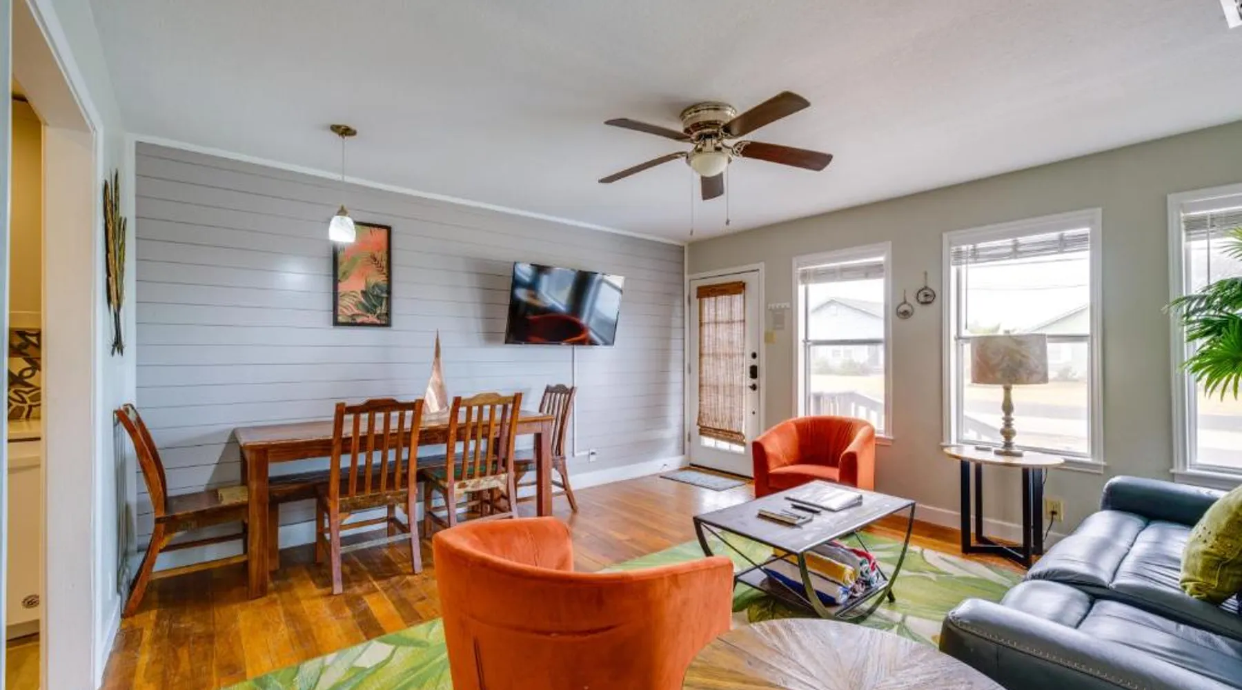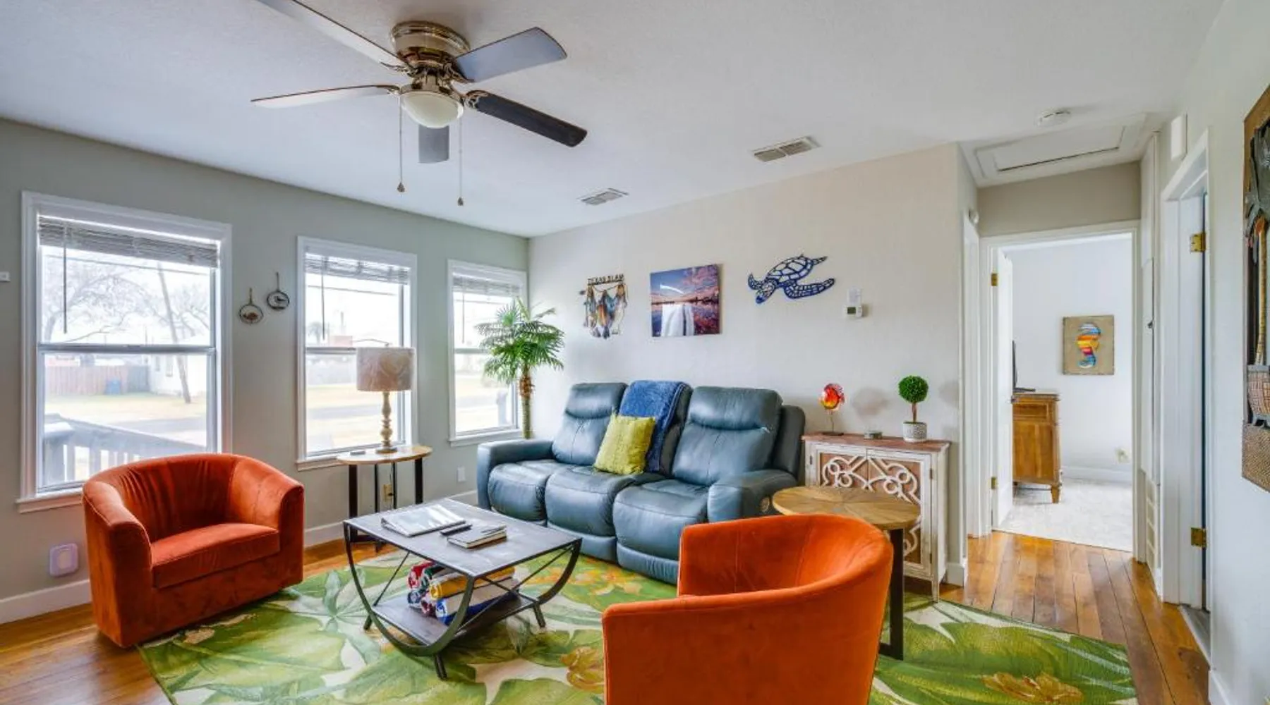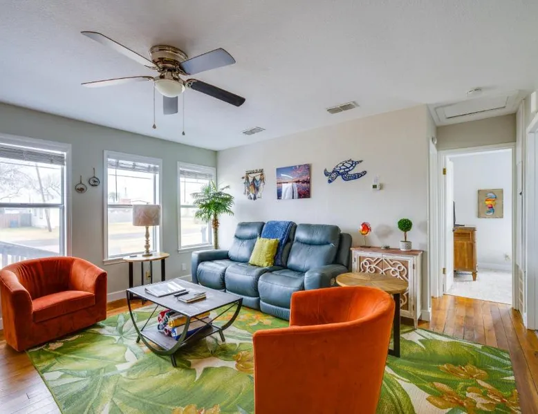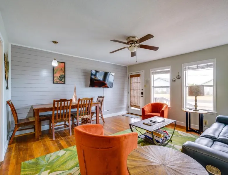 Comfortable Living: Walk Dtwn Pet-Friendly Townhome in Rockport offers a two-bedroom, one-bathroom holiday home with a spacious living room. Guests enjoy free WiFi, air-conditioning, and a fully equipped kitchen with modern appliances. Convenient Amenities: The property includes a washing machine, dishwasher, microwave, and a work desk. Additional features include a barbecue, outdoor dining area, and a private entrance. Free toiletries and a hairdryer are available for added comfort. Prime Location: Located in Rockport, the townhome is less than 0.6 mi from Rockport Beach Park and 39 mi from Corpus Christi International Airport. Nearby attractions include the American Bank Center Convention Center, 31 mi away. Boasting a private entrance, this air-conditioned holiday home comes with 1 living room, 2 separate bedrooms and 1 bathroom with a bath and a hairdryer. Guests will find a stovetop, a refrigerator, a dishwasher and kitchenware in the kitchen. The holiday home also includes a barbecue. Featuring an outdoor dining area, this holiday home also features a washing machine, a coffee machine and a flat-screen TV. The unit has 2 beds.