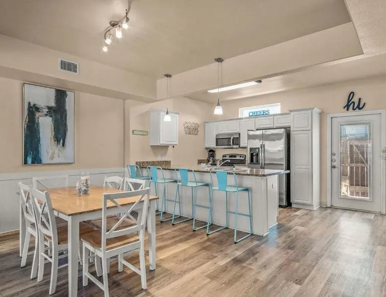 Spacious Accommodations: Walk to Beach Shared Pool & Grill Dog Friendly in Padre Island offers a spacious holiday home with three bedrooms and three bathrooms. The property features a private entrance and a fully equipped kitchen with modern appliances. Modern Amenities: Guests enjoy free WiFi, air-conditioning, and a washing machine. The home includes a patio with outdoor furniture, a barbecue, and a dining table. Additional amenities include a casino, free on-site parking, and a fully equipped kitchen with kitchenware. Prime Location: Located 22 mi from Corpus Christi International Airport, the property is a 5-minute walk from Padre Island Seawall Beach. Nearby attractions include Bob Hall Pier (2.5 mi) and Mustang Island State Park (7.5 mi). Highly rated by guests. The spacious holiday home has 3 bedrooms and 3 bathrooms with a hairdryer and free toiletries. Guests will find a stovetop, a refrigerator, a dishwasher and kitchenware in the fully equipped kitchen. The holiday home also features a barbecue. This holiday home is air-conditioned and features a TV with cable channels, a washing machine, a private entrance and a tea and coffee maker. The unit has 3 beds.