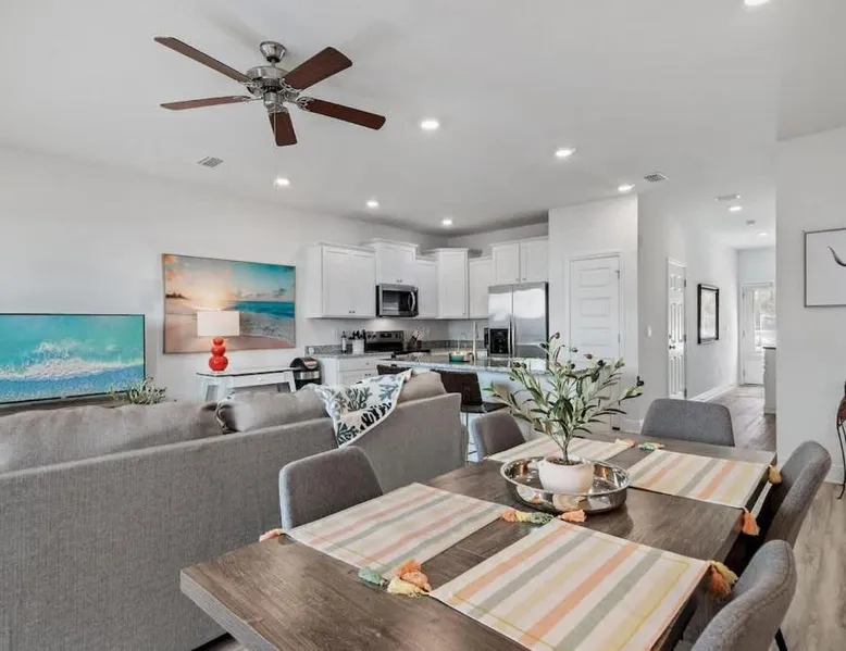 Spacious Holiday Home in Santa Rosa Beach: B Coastal Near Cessna Landing offers a spacious holiday home in Santa Rosa Beach. The property features three bedrooms and three bathrooms, ensuring ample space for guests. Modern Amenities and Comfort: Guests enjoy free WiFi, air-conditioning, and a fully equipped kitchen with a washing machine. Additional amenities include a barbecue, dishwasher, and a private entrance. Convenient Location: Located 30 mi from Destin-Fort Walton Beach Airport, the property is close to attractions such as Destin Harbor Boardwalk (19 mi) and Pier Park (27 mi). Free on-site parking is available. Boasting a private entrance, this air-conditioned apartment comes with 1 living room, 3 separate bedrooms and 3 bathrooms with a bath and a hairdryer. Guests will find a stovetop, a refrigerator, a dishwasher and kitchenware in the kitchen. The apartment also includes a barbecue. The spacious apartment features a washing machine, a tea and coffee maker, a wardrobe, tumble dryer and a TV. The unit has 5 beds.