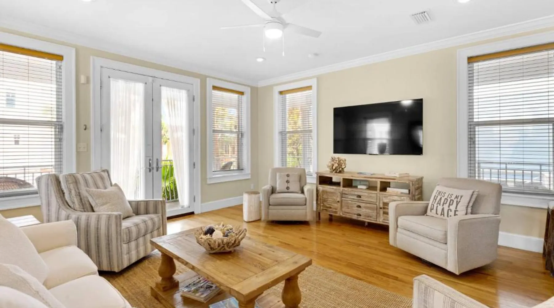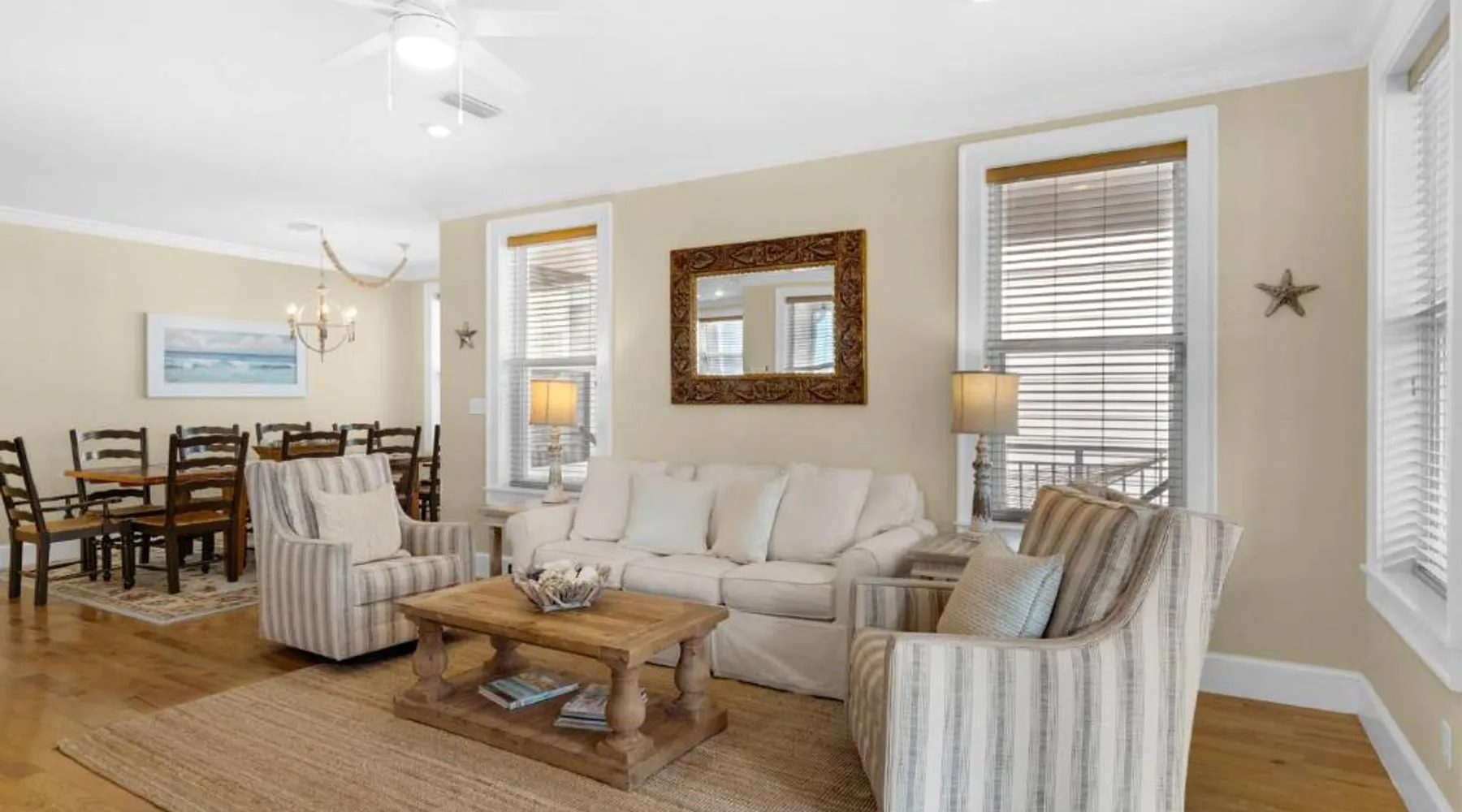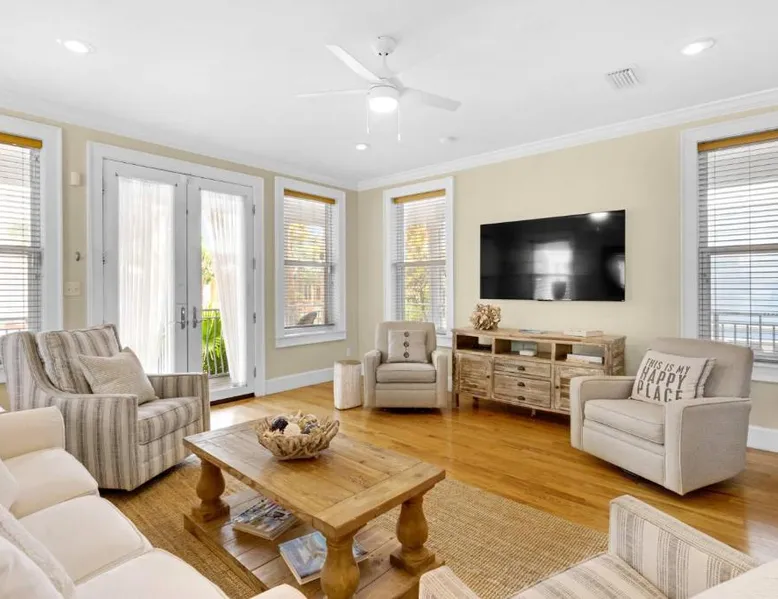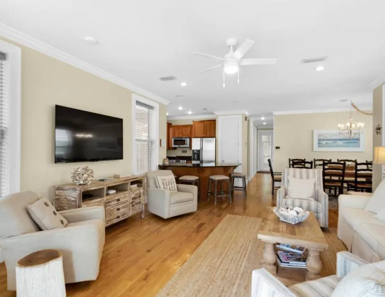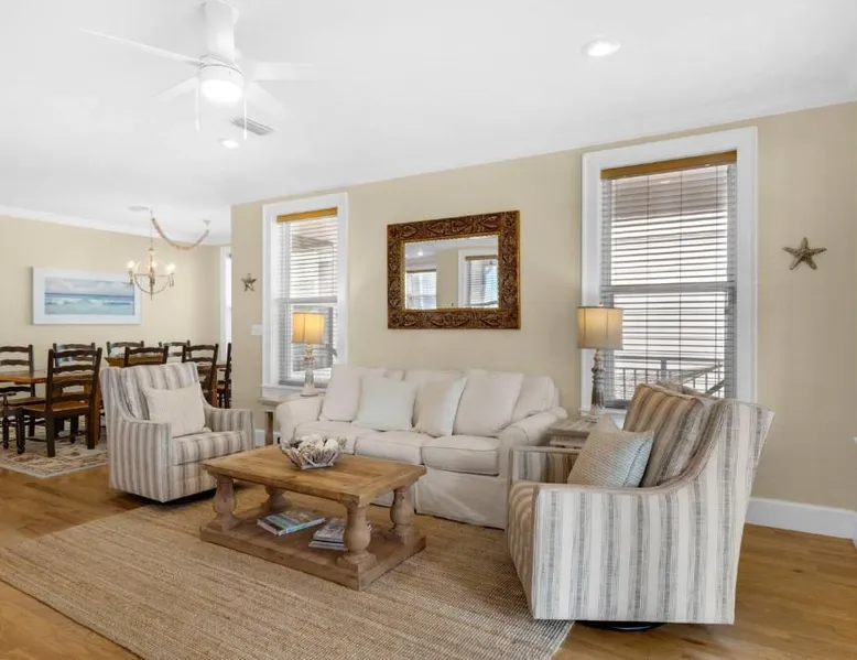 Spacious Accommodations: Palms and Pines in Seacrest Beach offers a spacious holiday home with four bedrooms and five bathrooms. The living room features a sofa bed and a dining area with a table. Modern Amenities: The property includes air-conditioning, a balcony, washing machine, patio, kitchen, barbecue, tea and coffee maker, hairdryer, dining table, outdoor furniture, outdoor dining area, sofa bed, refrigerator, seating area, free toiletries, microwave, dishwasher, oven, stovetop, toaster, and TV. Local Attractions: Rosemary Beach is an 8-minute walk away, while Northwest Florida Beaches International Airport is 21 mi distant. Nearby attractions include Russell-Fields Pier and Pier Park, both 11 mi away. This spacious holiday home features 2 living rooms, 4 separate bedrooms and 5 bathrooms with a hairdryer and free toiletries. Guests will find a stovetop, a refrigerator, a dishwasher and kitchenware in the kitchen. The holiday home also comes with a barbecue. This air-conditioned holiday home is consisted of of a dining area, a TV with satellite channels a washing machine and a patio. The unit has 9 beds.