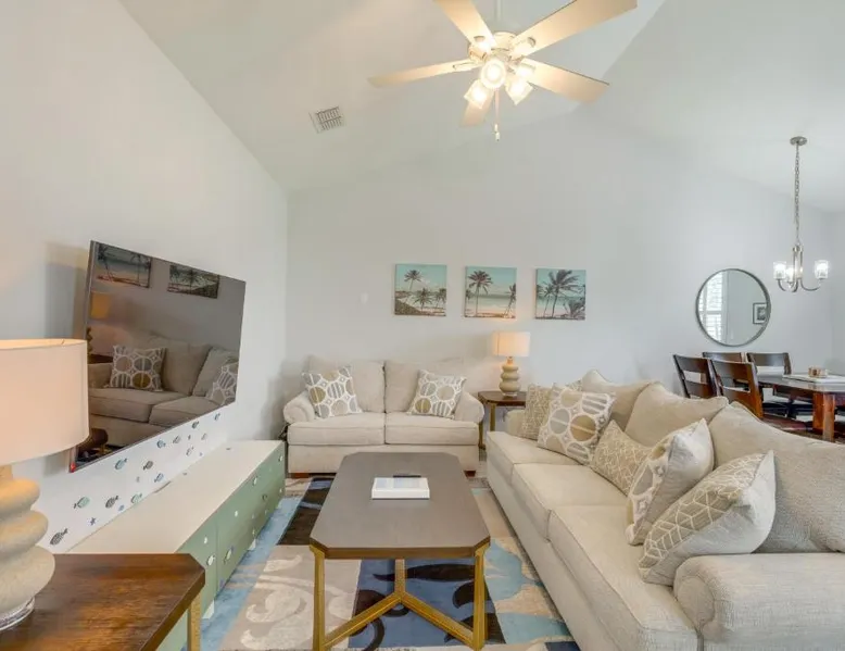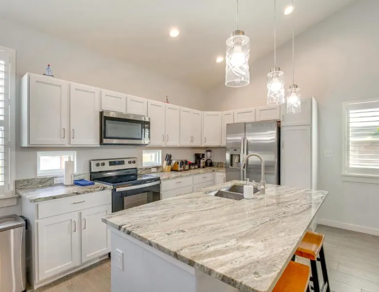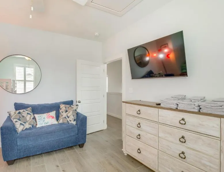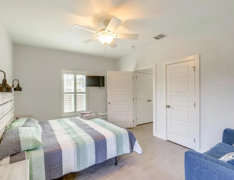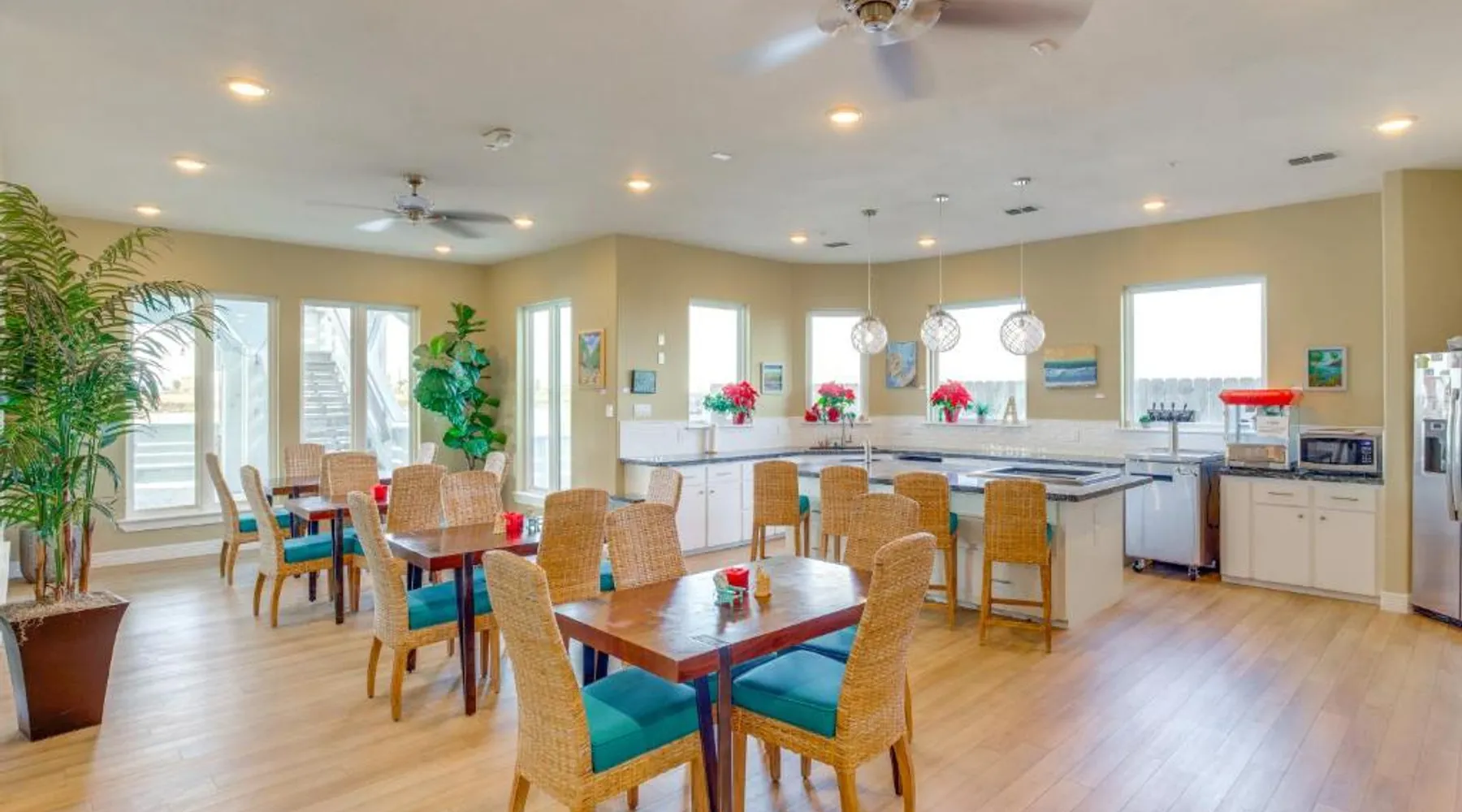 Comfortable Accommodations: Walk to Whitecap Beach Corpus Christi Retreat in Padre Island offers two bedrooms and two bathrooms. The living room features a dining table and a TV, ensuring a relaxing stay. Outdoor Amenities: Guests can enjoy an outdoor swimming pool and free WiFi. The property includes a games room for entertainment. Convenient Facilities: The holiday home provides air-conditioning, a washing machine, and a fully equipped kitchen with a coffee machine, microwave, and dishwasher. Additional amenities include a hairdryer, free toiletries, and a private entrance. Nearby Attractions: Padre Island Seawall Beach is a 5-minute walk away. Corpus Christi International Airport is 22 mi from the property. Boasting a private entrance, this air-conditioned holiday home comes with 1 living room, 2 separate bedrooms and 2 bathrooms with a hairdryer. In the fully equipped kitchen, guests will find a stovetop, a refrigerator, a dishwasher and kitchenware. The holiday home features a washing machine, a coffee machine, tumble dryer, heating, as well as a flat-screen TV. The unit has 7 beds.