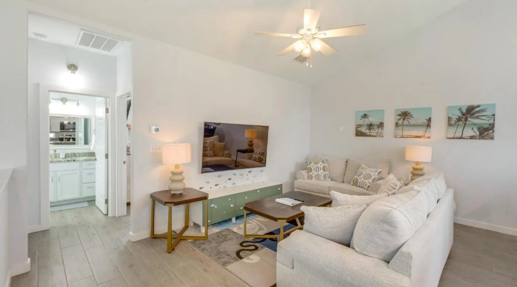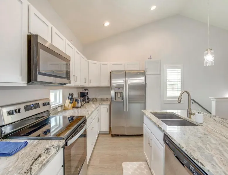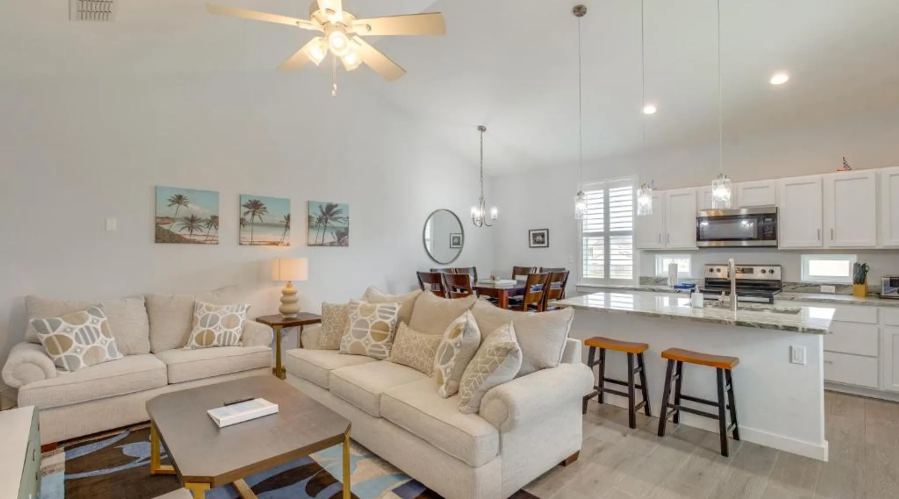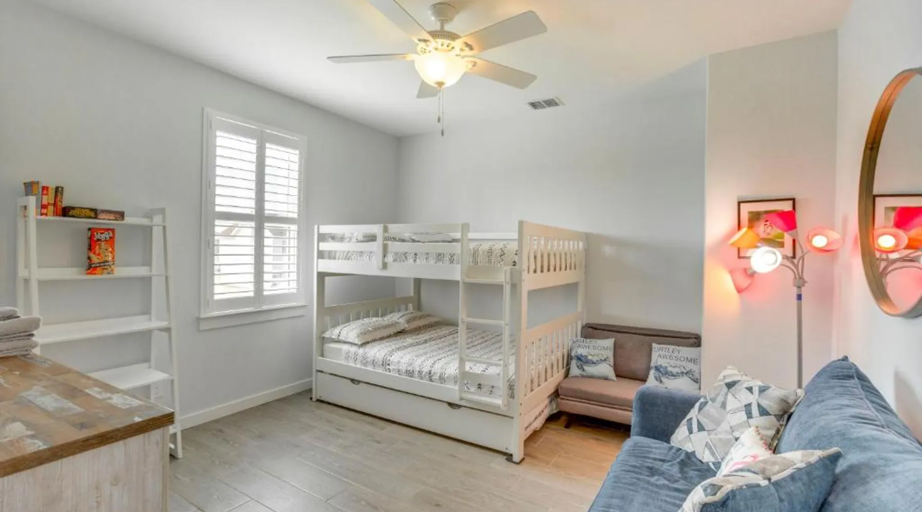 Comfortable Accommodations: Walk to Whitecap Beach Corpus Christi Retreat in Padre Island offers two bedrooms and two bathrooms. The living room features a dining table and a TV, ensuring a relaxing stay. Outdoor Amenities: Guests can enjoy an outdoor swimming pool and free WiFi. The property includes a games room for entertainment. Convenient Facilities: The holiday home provides air-conditioning, a washing machine, and a fully equipped kitchen with a coffee machine, microwave, and dishwasher. Additional amenities include a hairdryer, free toiletries, and a private entrance. Nearby Attractions: Padre Island Seawall Beach is a 5-minute walk away. Corpus Christi International Airport is 22 mi from the property. Boasting a private entrance, this air-conditioned holiday home comes with 1 living room, 2 separate bedrooms and 2 bathrooms with a hairdryer. In the fully equipped kitchen, guests will find a stovetop, a refrigerator, a dishwasher and kitchenware. The holiday home features a washing machine, a coffee machine, tumble dryer, heating, as well as a flat-screen TV. The unit has 7 beds.