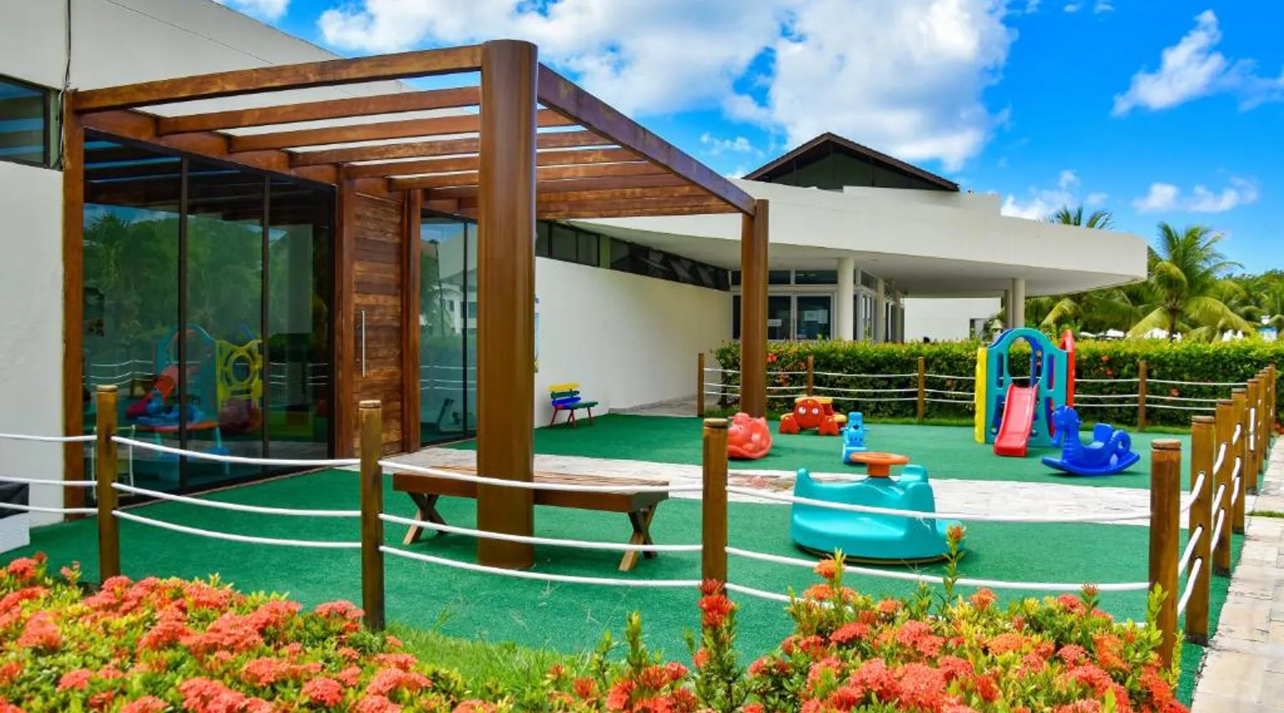 Beachfront Location: Luxo à Beira-Mar in Tamandaré offers direct beachfront access with a private beach area. Guests enjoy stunning sea views and direct beachfront access. Exceptional Facilities: The resort features a fitness center, tennis court, open-air bath, and a year-round outdoor swimming pool. Additional amenities include a hot tub, sauna, and a children's playground. Comfortable Accommodations: Apartments offer air-conditioning, balconies, and fully equipped kitchens. Free WiFi is available throughout the property, ensuring connectivity for all guests. Dining Experience: The family-friendly restaurant serves Brazilian cuisine for lunch and dinner. A bar provides a relaxing atmosphere for evening entertainment. Nearby Attractions: Carneiros Beach is a 3-minute walk away, while Sao Benedito Church lies 2.5 mi from the resort. Other attractions include Tamandaré Fort and Estrela do Mar Square, each within 3.1 mi. This apartment's special feature is the hot tub. This spacious apartment consists of 1 living room, 2 separate bedrooms and 2 bathrooms with a shower and free toiletries. The fully equipped kitchen features a stovetop, a refrigerator, kitchenware and an oven. The air-conditioned apartment provides a flat-screen TV with streaming services, a washing machine, a private entrance, a tea and coffee maker as well as garden views. The unit offers 5 beds.