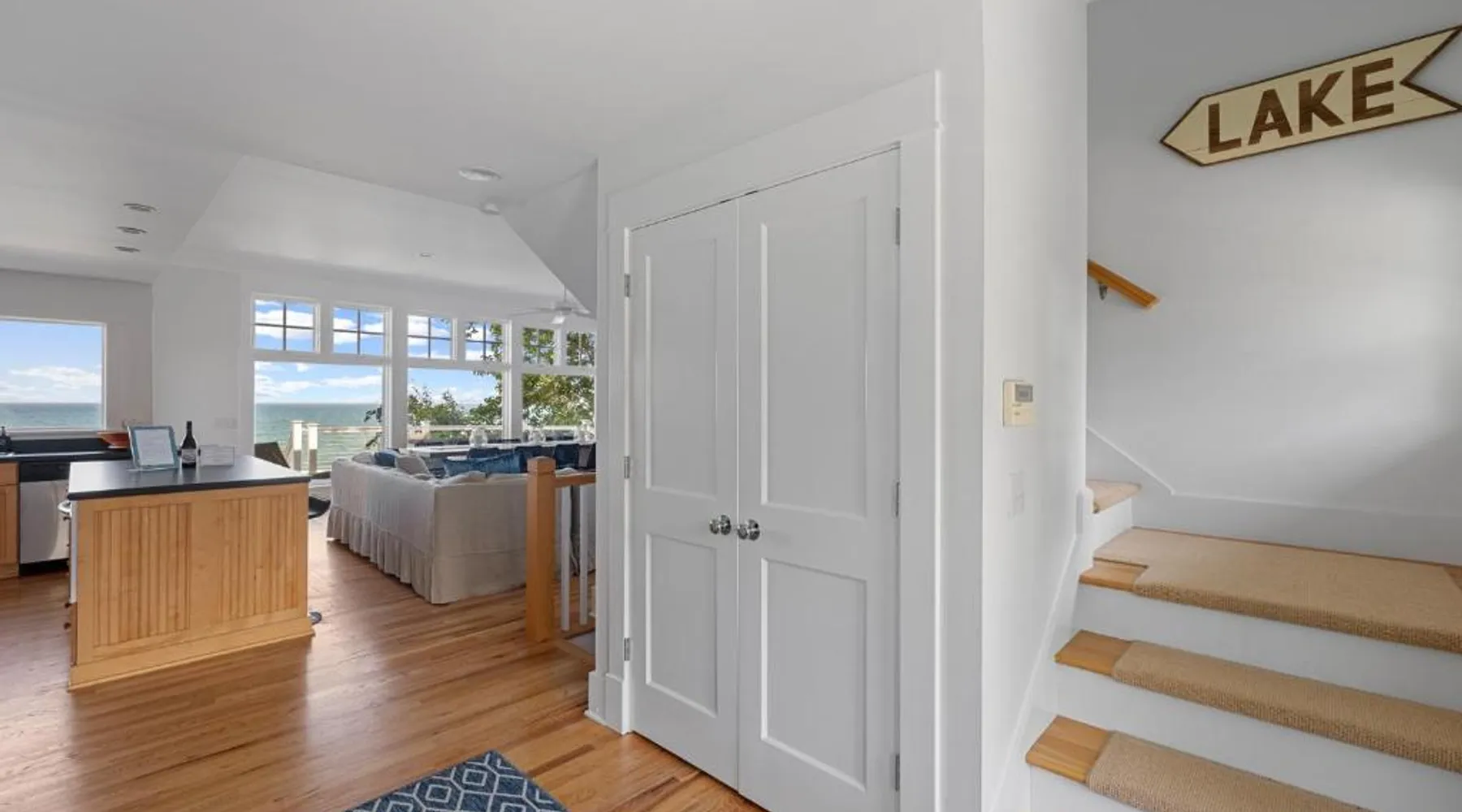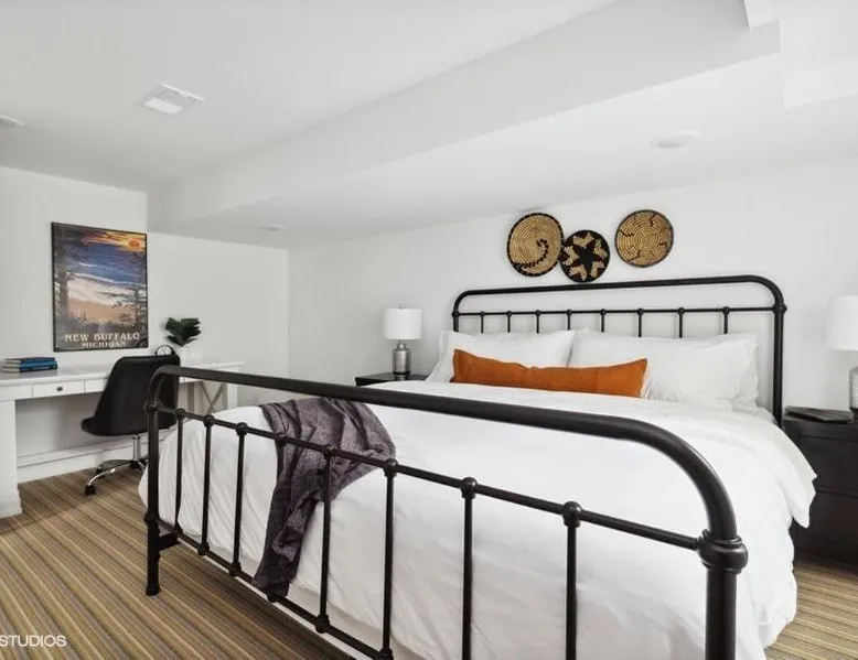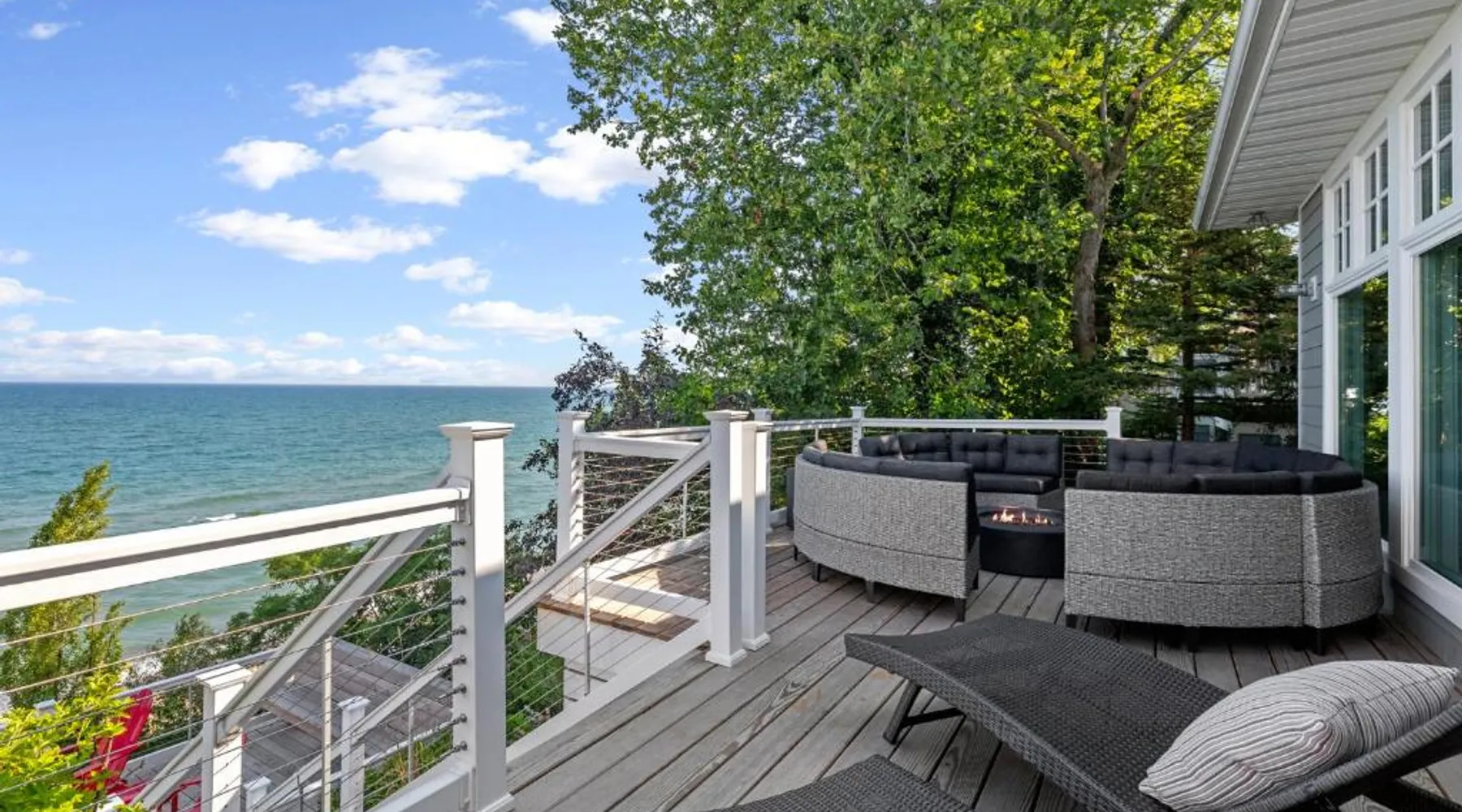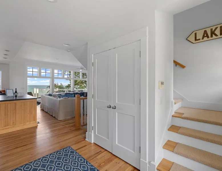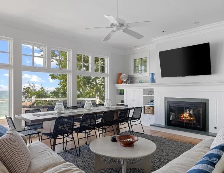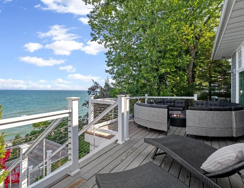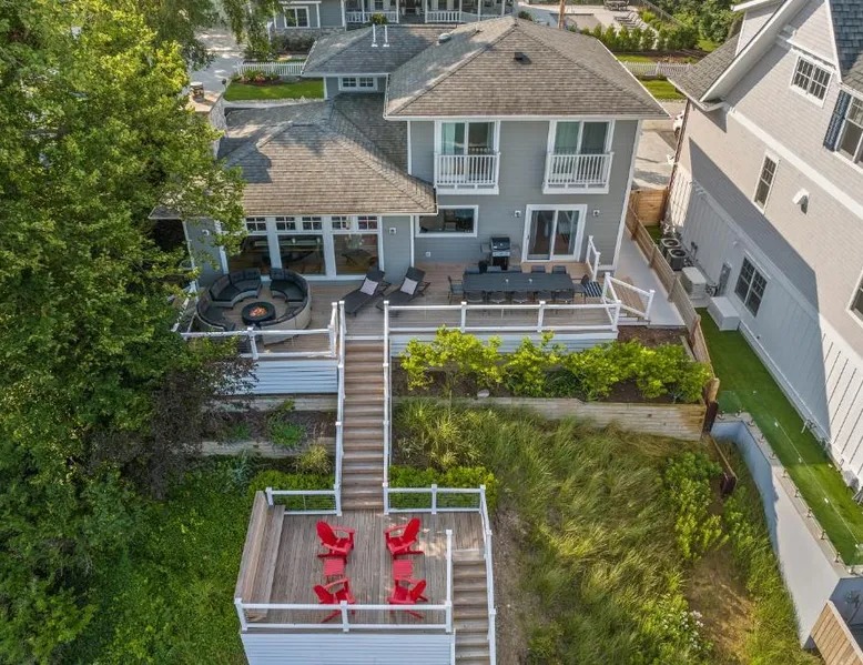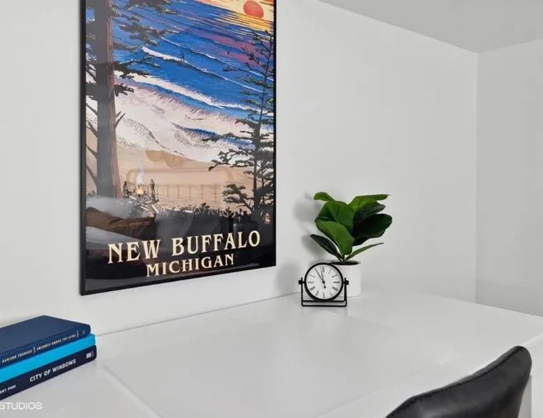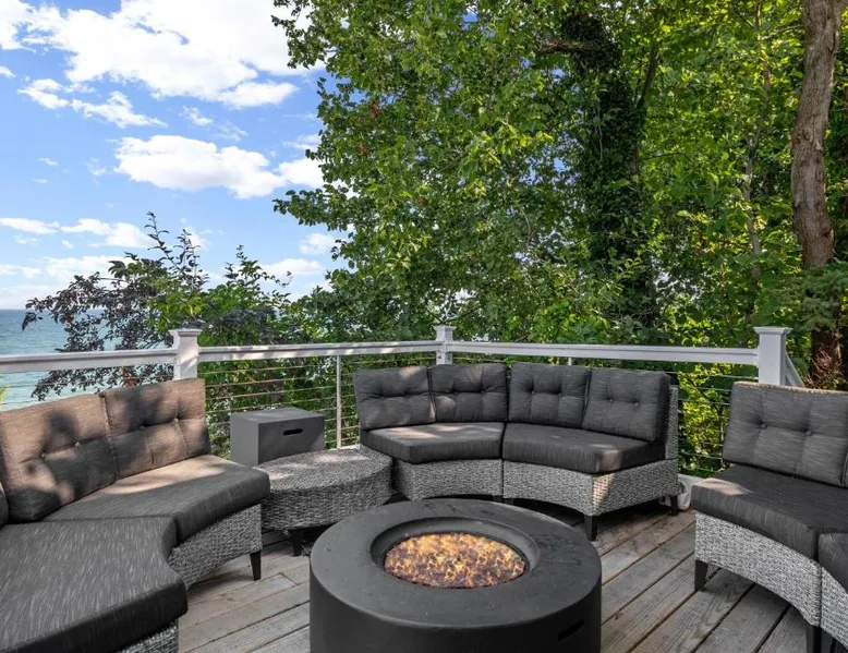 Spacious Accommodations: The Shore House in New Buffalo offers six bedrooms and five bathrooms. Guests enjoy a fully equipped kitchen, air-conditioning, and a cozy fireplace. Modern Amenities: The property features free WiFi, a washing machine, and a work desk. Additional amenities include a barbecue, outdoor dining area, and a private entrance. Outdoor Spaces: An outdoor seating area provides relaxing lake views. Free on-site private parking is available for guests. Local Attractions: New Buffalo Beach is located 1.2 mi away. South Bend Regional Airport is 37 mi from the property. The fireplace is a top feature of this holiday home. Boasting a private entrance, this spacious holiday home also comes with 6 separate bedrooms and 5 bathrooms with a bath. Guests will find a stovetop, a refrigerator, a dishwasher and kitchenware in the well-equipped kitchen. The holiday home also includes a barbecue. The air-conditioned holiday home features a TV, a washing machine, a tea and coffee maker, tumble dryer as well as lake views. The unit has 7 beds.
