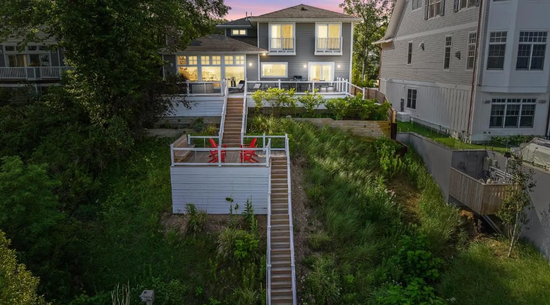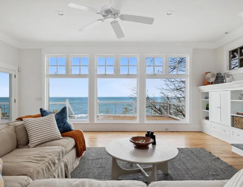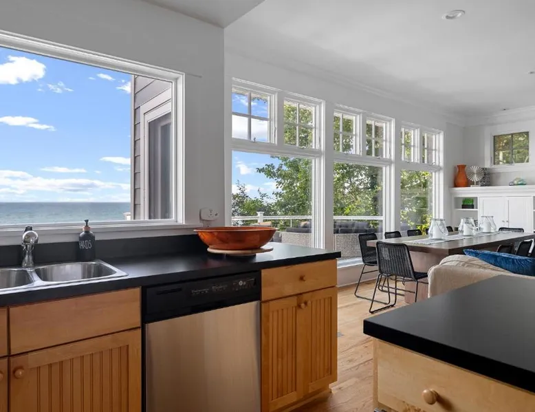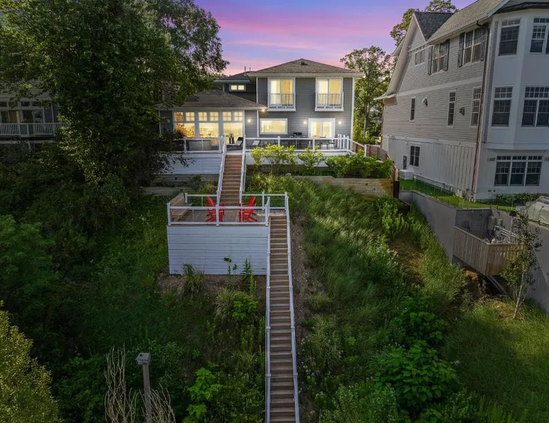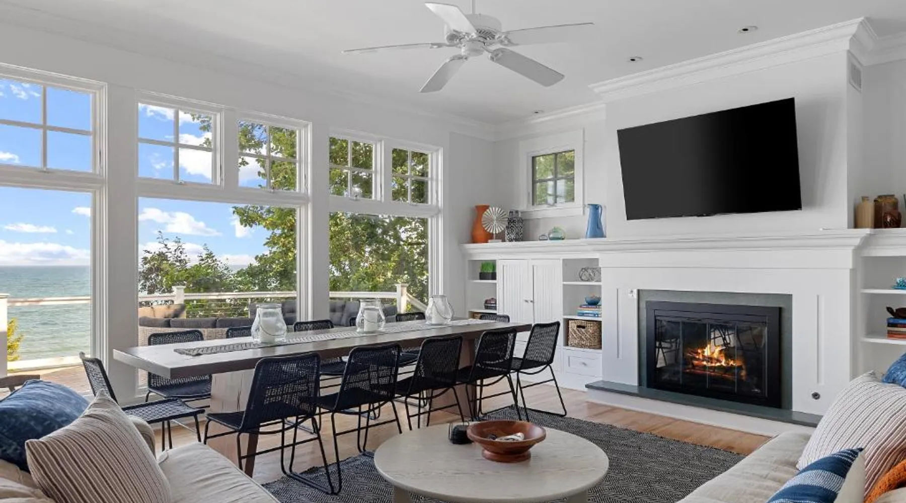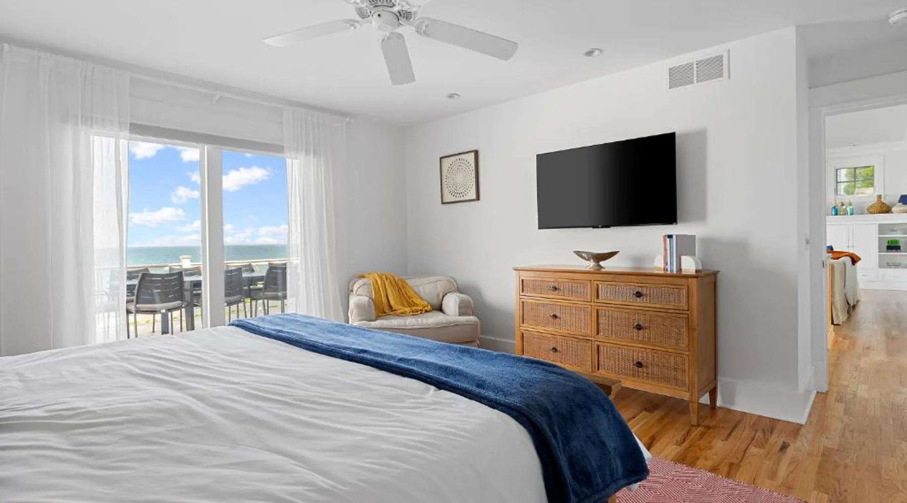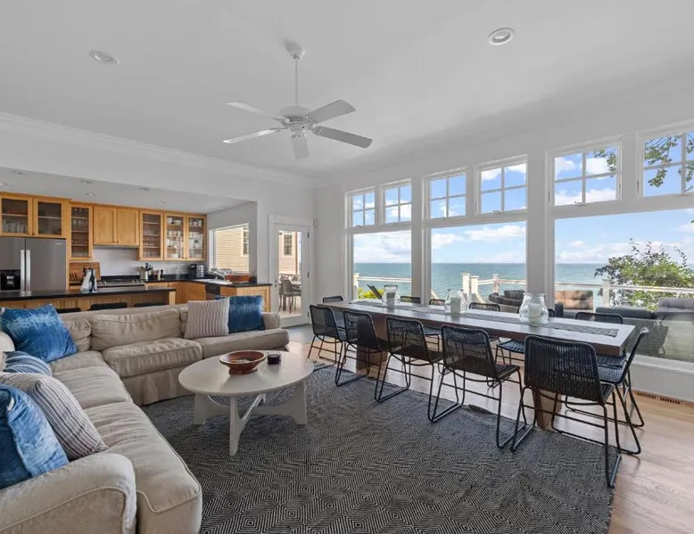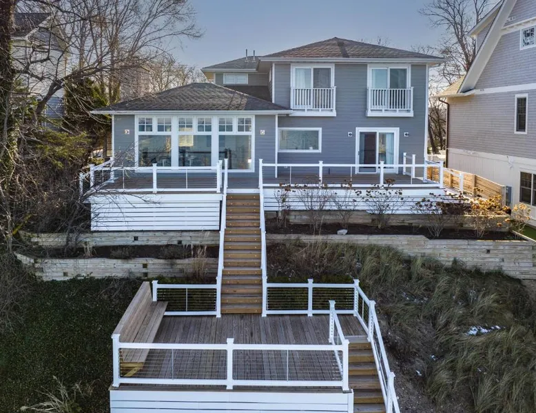 Spacious Accommodations: The Shore House in New Buffalo offers six bedrooms and five bathrooms. Guests enjoy a fully equipped kitchen, air-conditioning, and a cozy fireplace. Modern Amenities: The property features free WiFi, a washing machine, and a work desk. Additional amenities include a barbecue, outdoor dining area, and a private entrance. Outdoor Spaces: An outdoor seating area provides relaxing lake views. Free on-site private parking is available for guests. Local Attractions: New Buffalo Beach is located 1.2 mi away. South Bend Regional Airport is 37 mi from the property. The fireplace is a top feature of this holiday home. Boasting a private entrance, this spacious holiday home also comes with 6 separate bedrooms and 5 bathrooms with a bath. Guests will find a stovetop, a refrigerator, a dishwasher and kitchenware in the well-equipped kitchen. The holiday home also includes a barbecue. The air-conditioned holiday home features a TV, a washing machine, a tea and coffee maker, tumble dryer as well as lake views. The unit has 7 beds.