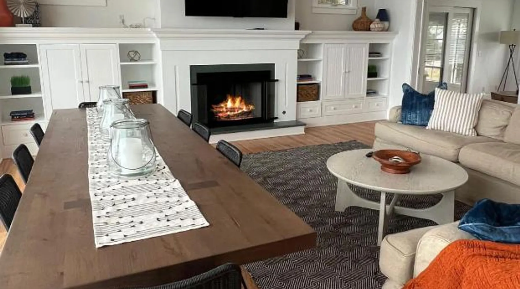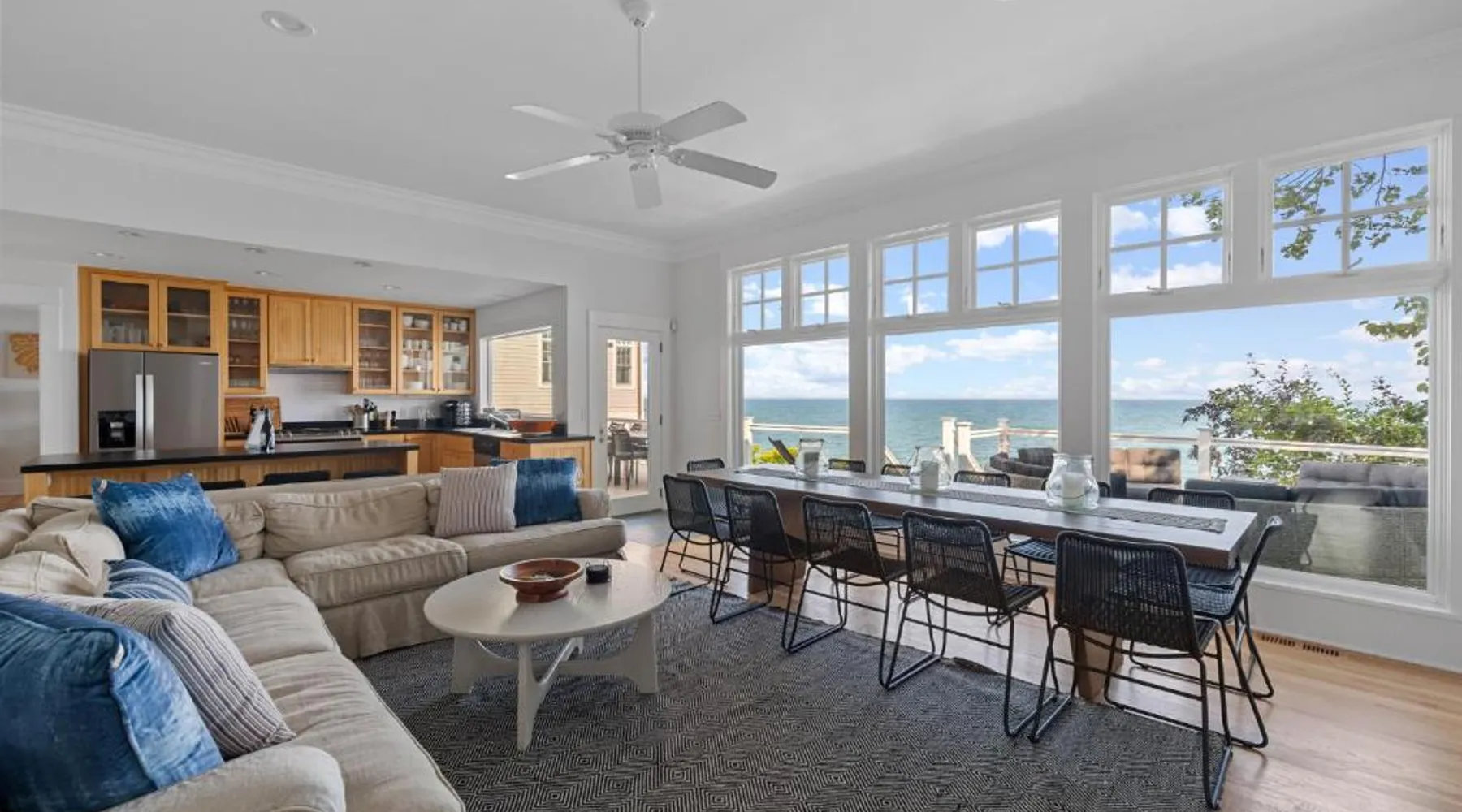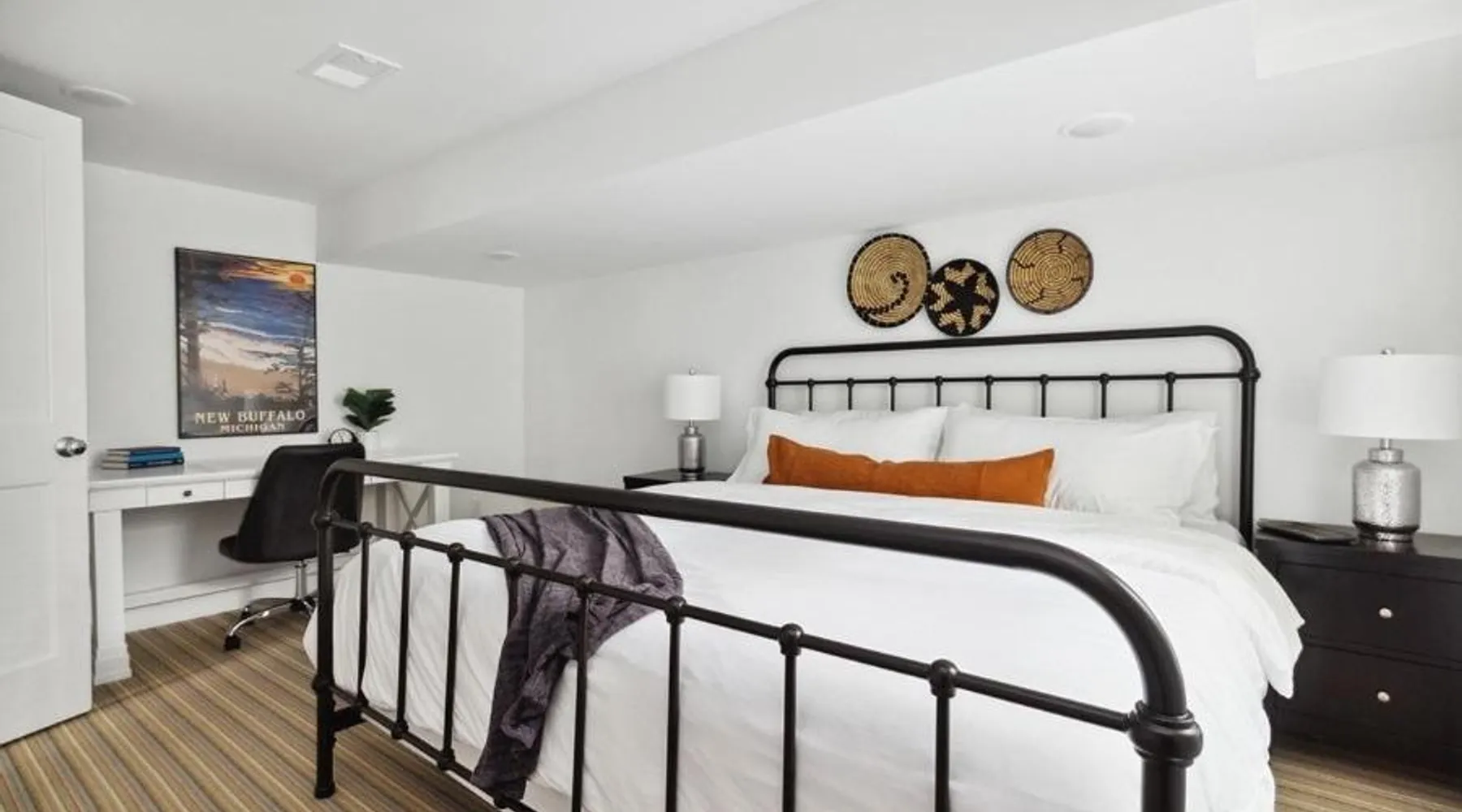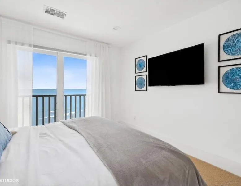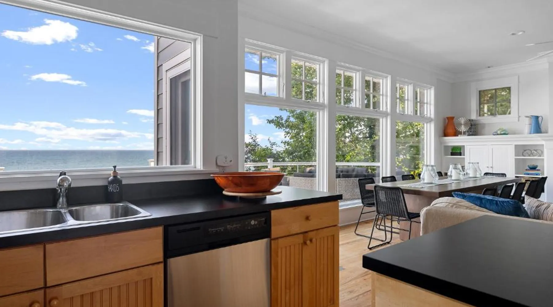 Spacious Accommodations: The Shore House in New Buffalo offers six bedrooms and five bathrooms. Guests enjoy a fully equipped kitchen, air-conditioning, and a cozy fireplace. Modern Amenities: The property features free WiFi, a washing machine, and a work desk. Additional amenities include a barbecue, outdoor dining area, and a private entrance. Outdoor Spaces: An outdoor seating area provides relaxing lake views. Free on-site private parking is available for guests. Local Attractions: New Buffalo Beach is located 1.2 mi away. South Bend Regional Airport is 37 mi from the property. The fireplace is a top feature of this holiday home. Boasting a private entrance, this spacious holiday home also comes with 6 separate bedrooms and 5 bathrooms with a bath. Guests will find a stovetop, a refrigerator, a dishwasher and kitchenware in the well-equipped kitchen. The holiday home also includes a barbecue. The air-conditioned holiday home features a TV, a washing machine, a tea and coffee maker, tumble dryer as well as lake views. The unit has 7 beds.