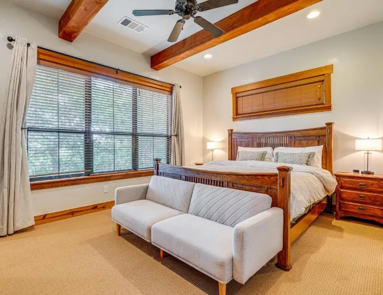 Spacious Accommodations: Lake Travis Home Near Marina with Spectacular Views! in Jonestown offers a spacious holiday home with four bedrooms and three bathrooms. The property features a private entrance and a fully equipped kitchen. Outdoor Amenities: Guests can enjoy an outdoor swimming pool, hot tub, and patio. The balcony provides stunning views, while the outdoor dining area is perfect for relaxing. Modern Facilities: The holiday home includes air-conditioning, free WiFi, and a washing machine. Additional amenities include a work desk, dishwasher, and TV. Nearby Attractions: Located 40 mi from Austin-Bergstrom International Airport, the property is close to Dell Diamond (29 mi) and Mount Bonnell (31 mi). Featuring a private entrance, this spacious holiday home also is consisted of of 4 separate bedrooms and 3 bathrooms with a bath and a shower. Guests will find a stovetop, a refrigerator, a dishwasher and kitchenware in the fully equipped kitchen. The holiday home also has a barbecue. Boasting a patio, this holiday home also offers air conditioning, a washing machine and a flat-screen TV with cable channels. The unit offers 7 beds.