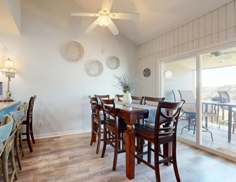 Spacious Accommodations: Great Cove Lodge in Point Venture offers a spacious holiday home with four bedrooms and three bathrooms. The property includes a terrace, balcony, and private entrance. Leisure Facilities: Guests can enjoy a swimming pool with a view, fitness room, outdoor seating area, games room, and children's playground. Air-conditioning, streaming services, and a washing machine enhance comfort. Convenient Amenities: The home features a fully equipped kitchen with a dishwasher, microwave, and oven. Additional amenities include a barbecue, work desk, and free toiletries. Accessibility: Austin-Bergstrom International Airport is 46 mi away. Czech, German, English, Spanish, French, Italian, Dutch, and Portuguese are spoken. Boasting 4 bedrooms and 3 bathrooms with a hairdryer, this spacious holiday home has a well-fitted kitchen and a terrace. Guests will find a stovetop, a refrigerator, a dishwasher and kitchenware in the well-equipped kitchen. The holiday home also features a barbecue. This air-conditioned holiday home includes a dining area, a TV with streaming services a washing machine and a patio. The unit offers 6 beds.