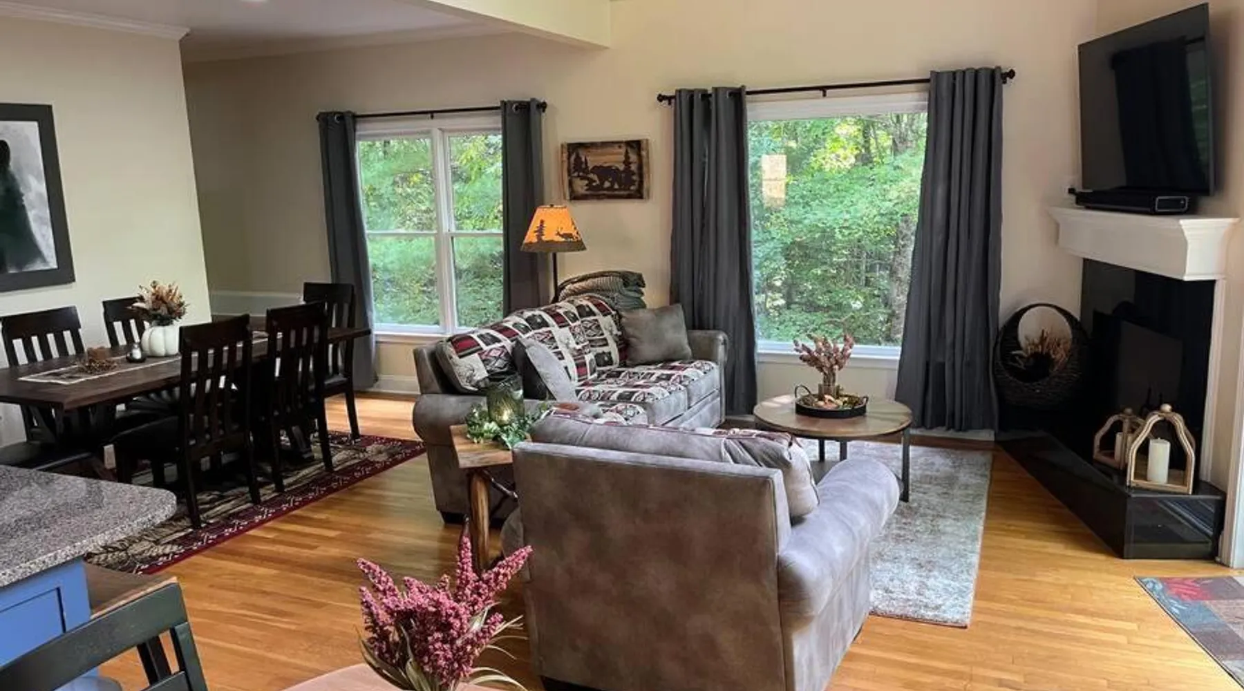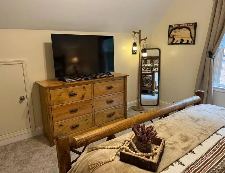 Comfortable Accommodations: Helen, GA Bear Paw Haus offers a holiday home in Helen with four bedrooms and three bathrooms. The property features family rooms, a terrace, balcony, and free WiFi. Leisure Facilities: Guests can enjoy a seasonal outdoor swimming pool, bar, and pool table. Additional amenities include air-conditioning, a fireplace, and free on-site private parking. Local Attractions: Located 97 mi from Hartsfield–Jackson Atlanta International Airport, the property is near Anna Ruby Falls (9.9 mi), Helen Festhalle (2.2 mi), and Helen Arts & Heritage Center (2.5 mi). Guest Satisfaction: Highly rated by guests, the property is praised for its friendly host. The fireplace is a top feature of this holiday home. Guests will find a stovetop, a refrigerator, a dishwasher and kitchenware in the kitchen. The holiday home also includes a barbecue. This air-conditioned holiday home comes with a dining area, a flat-screen TV with streaming services a washing machine and a terrace. The unit has 2 beds.