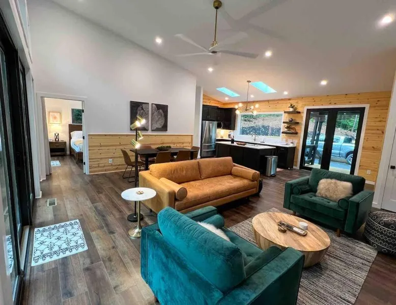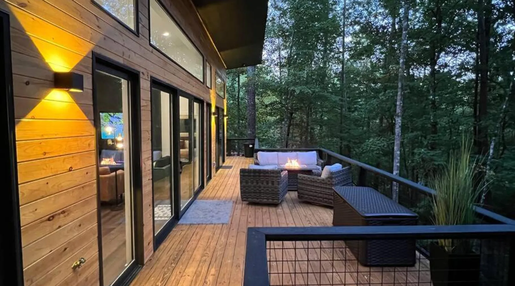 Spacious Accommodations: Modern Mountain Getaway with Hot Tub, Fire Pit in Sautee Nacoochee offers a spacious chalet with two bedrooms and two bathrooms. Free on-site private parking is available. Relaxing Amenities: Guests can unwind in the hot tub or fire pit, perfect for relaxation. The property is highly rated for its hot tub and jacuzzi. Local Attractions: Anna Ruby Falls is 11 mi away, Helen Festhalle 6.2 mi, Smithgall Woods 7.5 mi, Andrews Cove 9.3 mi, and Raven Cliffs Falls 9.9 mi. The unit has 3 beds.