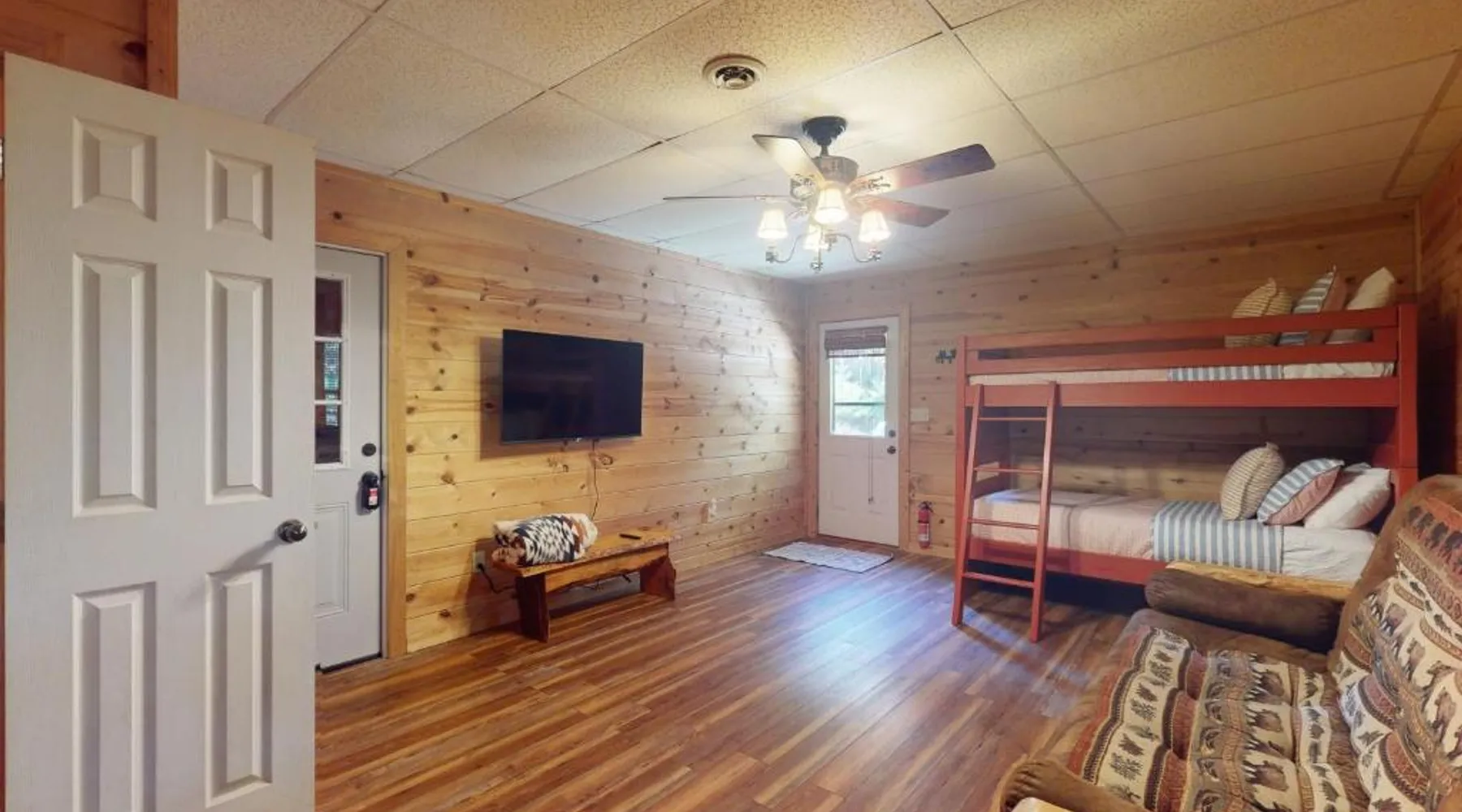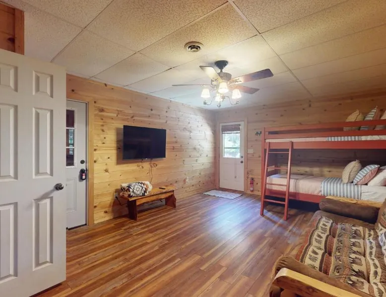 Spacious Holiday Home in Ellijay: Lazy Bear Cabin offers a spacious holiday home in Ellijay, United States. The property features two bedrooms and two bathrooms, a comfortable living room, and a fully equipped kitchen. Leisure Facilities: Guests can enjoy an indoor and outdoor swimming pool, an outdoor fireplace, a fitness room, a hot tub, a games room, and a children's playground. Additional amenities include air-conditioning, streaming services, and a washing machine. Dining and Entertainment: The on-site restaurant serves delicious meals, while the property also provides a barbecue area and a dining area. Free toiletries, a work desk, and a seating area enhance the stay. Convenient Location: Located 65 mi from Chattanooga Metropolitan Airport, Lazy Bear Cabin offers easy access to local attractions. The hot tub and fireplace are the special features of this holiday home. Boasting a private entrance, this spacious holiday home also comes with 2 separate bedrooms, 2 bathrooms, a living room and a seating area. Guests will find a stovetop, a refrigerator, a dishwasher and kitchenware in the well-fitted kitchen. The holiday home also includes a barbecue. This air-conditioned holiday home features a dining area, a TV with streaming services a washing machine and a patio. The unit has 4 beds and 1 futon.