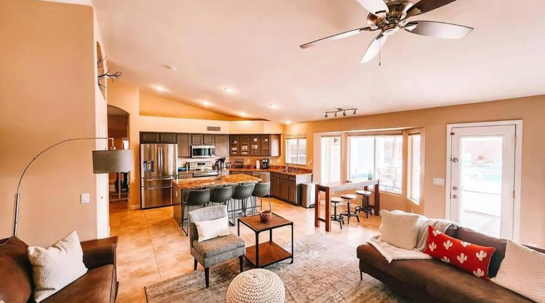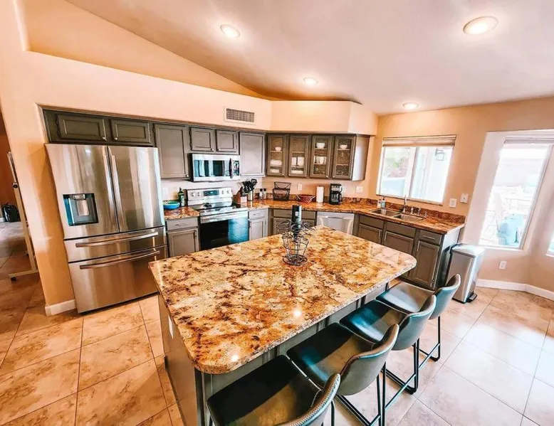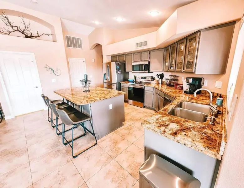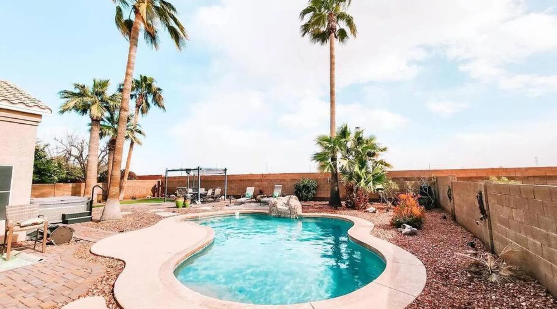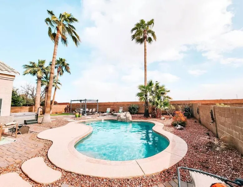Spacious Accommodations: The Luxury Pool Home! Amazing Back Yard Oasis in Avondale offers a spacious villa with four bedrooms and two bathrooms. The ground-floor unit features a living room, dining area, and a fully equipped kitchen. Modern Amenities: Guests enjoy free WiFi, air-conditioning, and a private pool. Additional amenities include a washing machine, patio, outdoor dining area, and a barbecue. The property also includes a work desk and a sofa bed. Convenient Location: Located 21 mi from Phenix Sky Harbor International Airport, the villa is near attractions such as State Farm Stadium (9.9 mi) and Phenix Convention Center (18 mi). Free on-site private parking is available. This villa features a private pool. Guests will find a stovetop, a refrigerator, a dishwasher and an oven in the well-equipped kitchen. The villa also provides guests with a barbecue. The spacious air-conditioned villa provides a flat-screen TV, a washing machine, a tea and coffee maker, a seating area as well as pool views. The unit offers 5 beds and 1 futon.