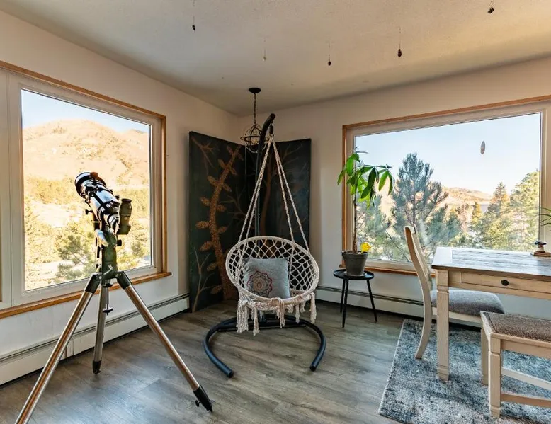 Spacious Accommodations: Winnemucca Retreat in Pike National Forest offers a spacious holiday home in Cascade-Chipita Park, Colorado. The property features three bedrooms and three bathrooms, a comfortable living room, and a fully equipped kitchen. Relaxing Facilities: Guests can enjoy spa facilities, a sauna, and a sun terrace. The property includes a hot tub, outdoor seating area, and a games room, ensuring relaxation and entertainment. Outdoor Amenities: The holiday home features a garden, balcony, and patio, providing ample space for outdoor activities. Free WiFi is available throughout the property, enhancing the stay experience. Local Attractions: Located 21 mi from Colorado Springs Airport, the property is close to attractions such as Garden of the Gods (12 mi) and Rock Ledge Ranch Historic Site (12 mi). Free on-site private parking is provided. This holiday home's standout features are the hot tub, sauna and fireplace. This spacious holiday home consists of 2 living rooms, 3 separate bedrooms and 3 bathrooms with a walk-in shower and free toiletries. Guests will find a stovetop, a refrigerator, a dishwasher and kitchenware in the well-equipped kitchen. The holiday home also provides guests with a barbecue. The holiday home provides a flat-screen TV with streaming services, a washing machine, a private entrance, a tea and coffee maker as well as mountain views. The unit offers 5 beds.