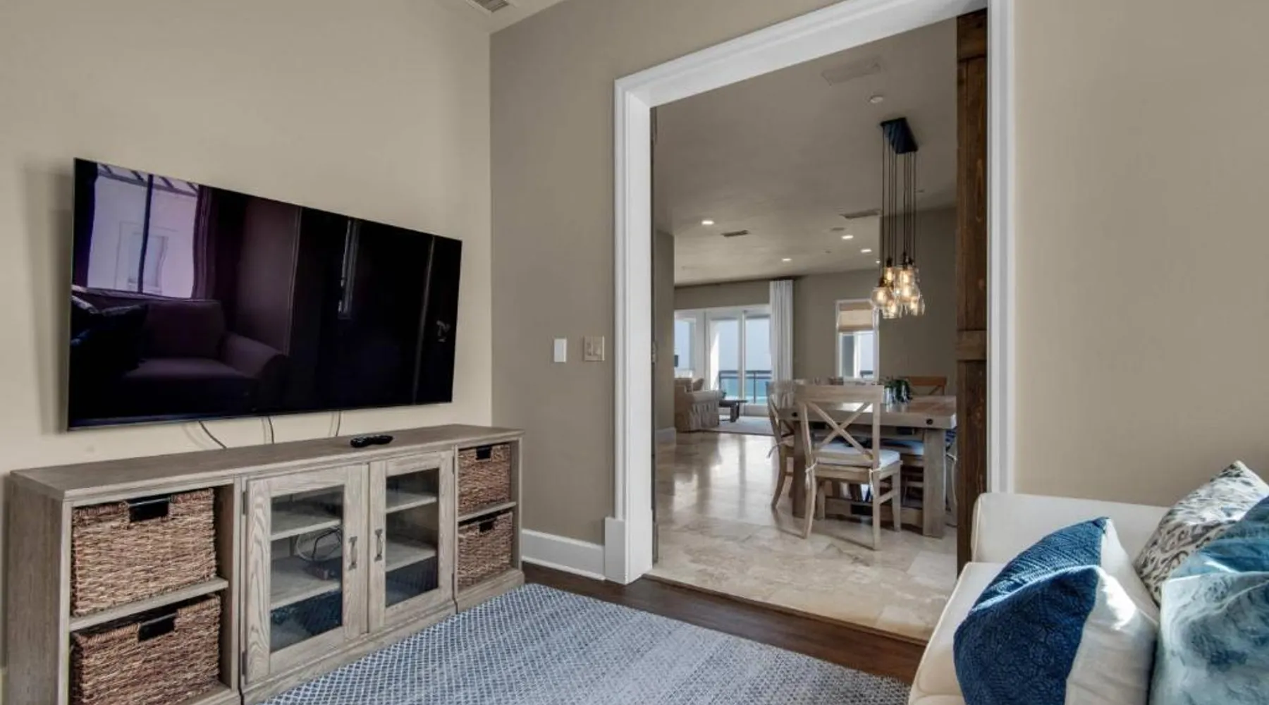 Beachfront Location: The Penthouse at Seagrove in Santa Rosa Beach offers direct beachfront access. Guests can relax on the sand or enjoy the scenic views from the spacious balcony. Spacious Accommodations: The holiday home features a elevator and ample parking. The property includes air-conditioning, a fully equipped kitchen, private bathroom, washing machine, and free toiletries. Local Attractions: Seagrove Beach is just a few steps away. Nearby attractions include Russell-Fields Pier and Pier Park, both 24 mi from the property. Cycling enthusiasts can explore the surrounding area. The spacious holiday home features a private bathroom, air conditioning, a washing machine, as well as a seating area with a TV. Meals can be prepared in the well-fitted kitchen, which is equipped with a refrigerator, a dishwasher, a microwave and a tea and coffee maker. The holiday home provides tumble dryer.