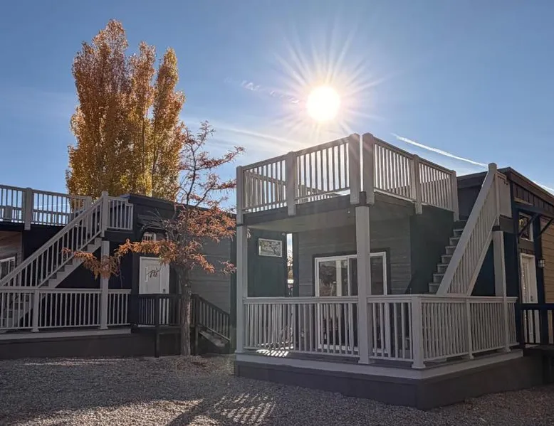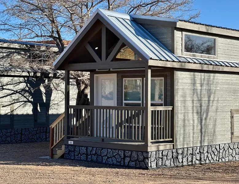 Comfortable Accommodations: Page Lake Powell Campground - Tiny Homes in Page offers lodge-style accommodations with family rooms and private bathrooms. Each unit features air-conditioning, a patio, and parquet floors. Amenities and Facilities: Guests enjoy a fitness center, garden, and free WiFi. Additional facilities include an outdoor fireplace, hot tub, outdoor play area, and picnic area. Free on-site private parking is available. Local Attractions: Wildcat Watersports is a 4-minute walk away, while Antelope Canyon lies 7.5 mi from the property. Other nearby attractions include Lake Powell Jeep Rentals and Horseshoe Bend. Activities and Surroundings: Boating opportunities are available in the surrounding area. Page Municipal Airport is 1.2 mi from the campground. Boasting a private entrance, this air-conditioned suite features 1 bedroom and 1 bathroom with a walk-in shower and a hairdryer. Featuring a patio, this suite also features a coffee machine, parquet floors and a flat-screen TV. The unit has 1 bed.