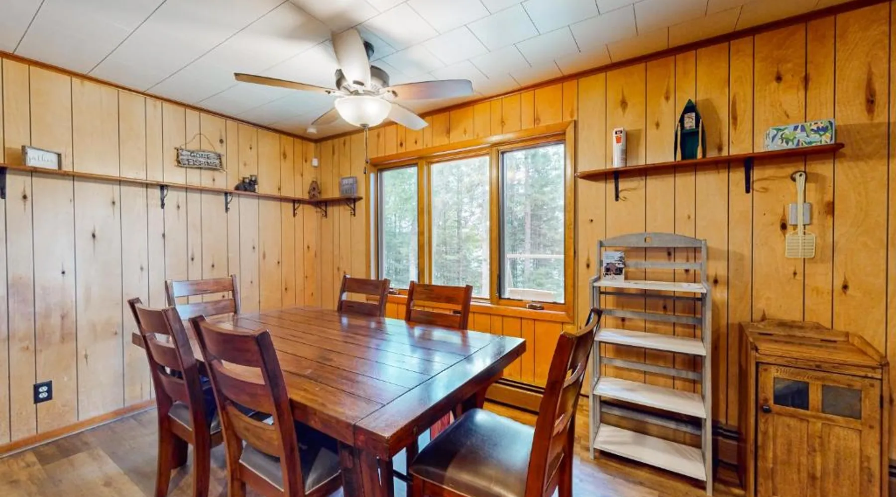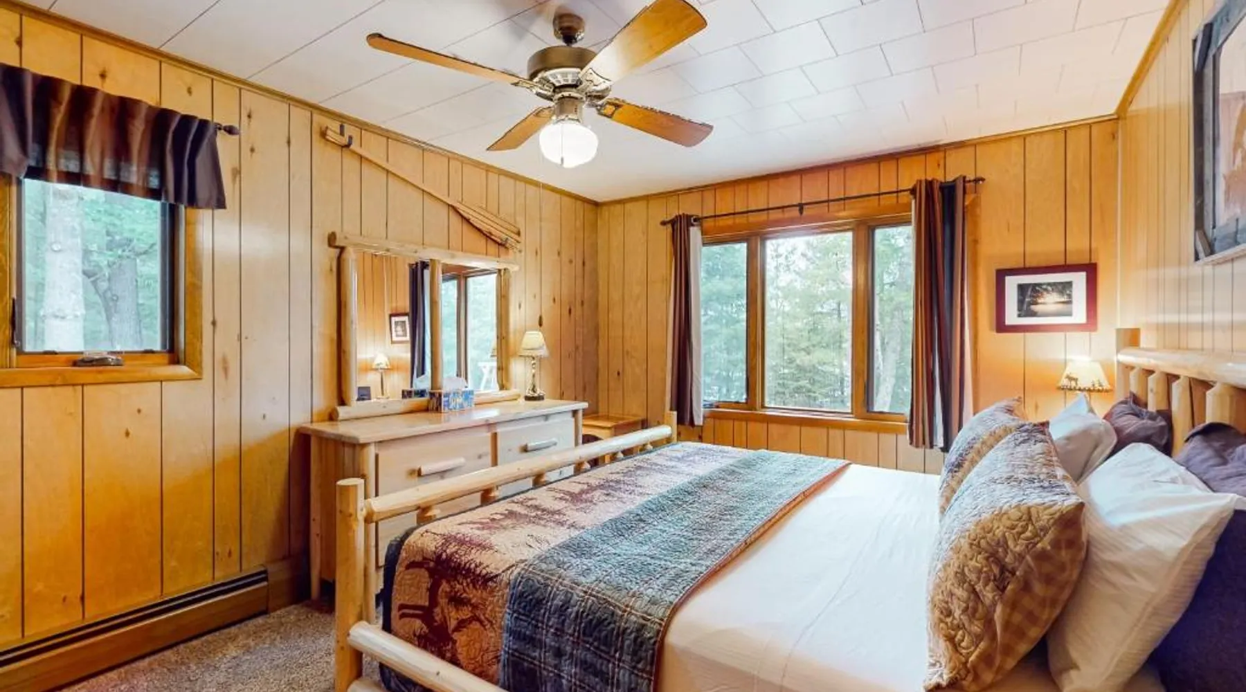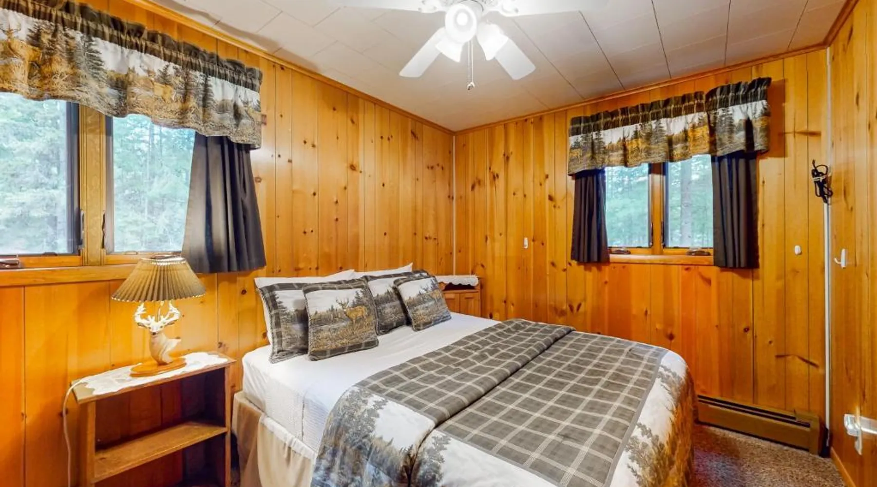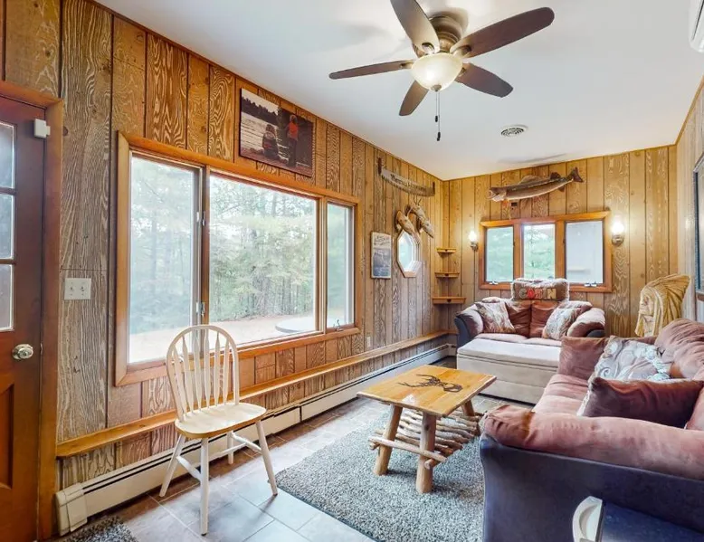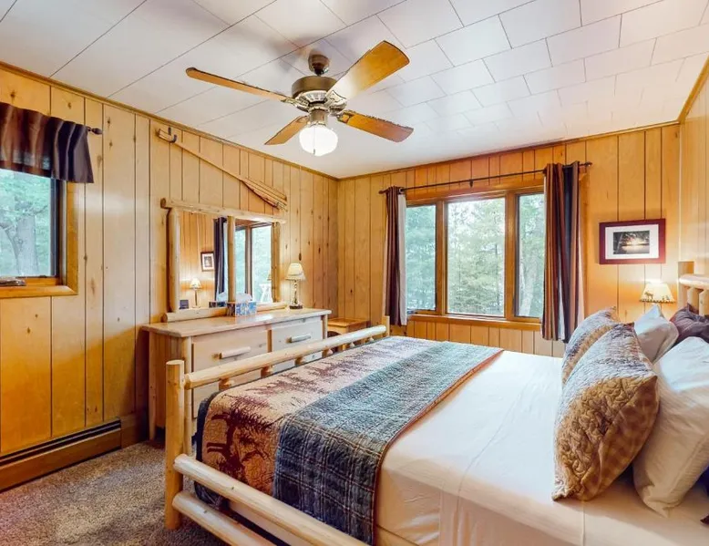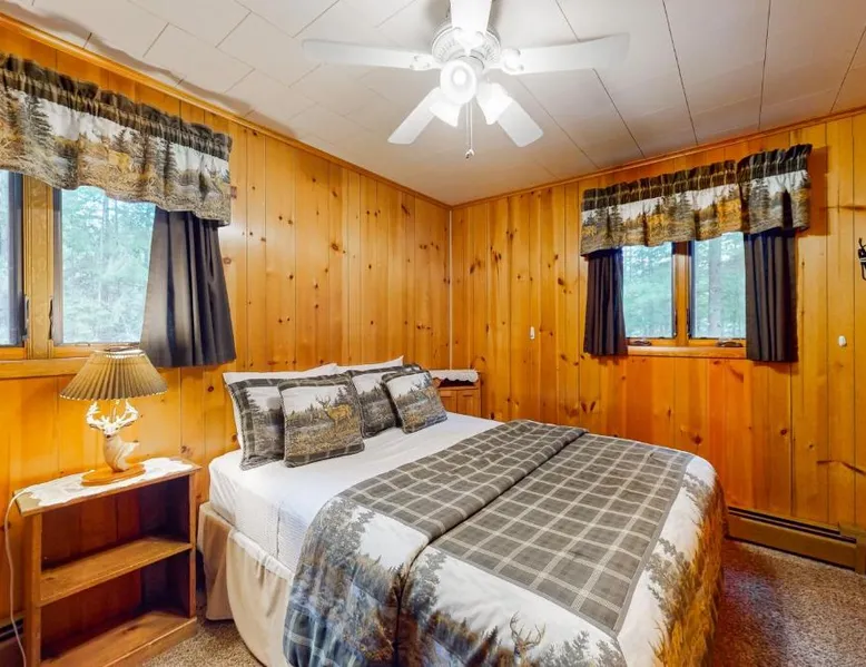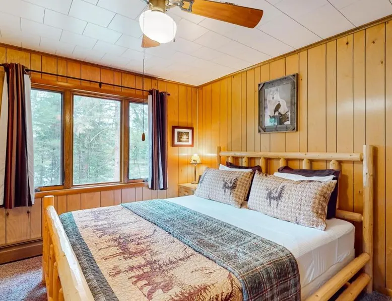 Spacious Holiday Home in Saint Germain: Konkey's Kabin offers a spacious setting with three bedrooms and two bathrooms. The property features a living room, dining area, and a fully equipped kitchen. Outdoor Amenities: Guests can enjoy an outdoor fireplace, seating area, and a picnic spot. The outdoor space provides stunning lake views and a relaxing atmosphere. On-Site Facilities: A restaurant is available on-site, complemented by streaming services, a washing machine, and a work desk. The property includes a private entrance and free toiletries. Accessibility: Rhinelander-Oneida County Airport is 30 mi away, offering convenient travel options. Featuring a private entrance, this spacious holiday home also consists of 3 separate bedrooms, 2 bathrooms, a living room and a seating area. Guests will find a stovetop, a refrigerator, a dishwasher and kitchenware in the well-equipped kitchen. The holiday home also provides guests with a barbecue. The holiday home provides a TV with streaming services, a washing machine, a tea and coffee maker, a dining area as well as lake views. The unit offers 8 beds.
