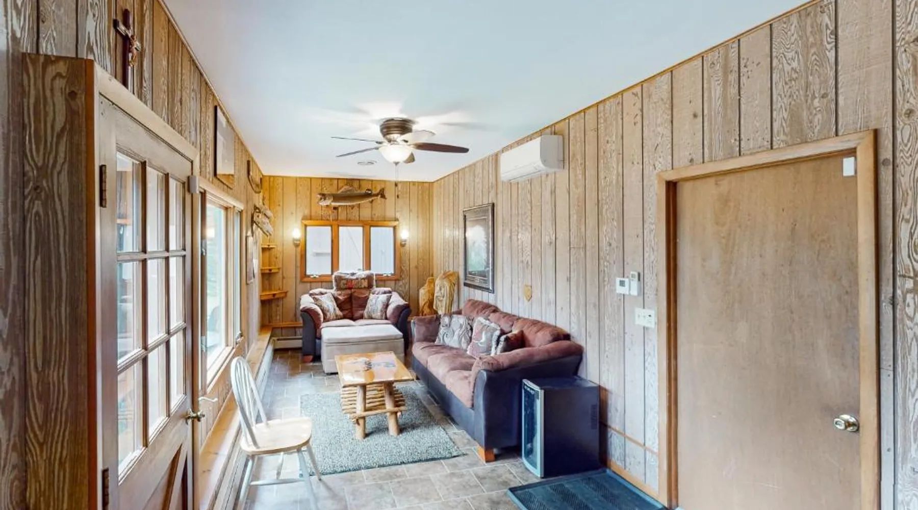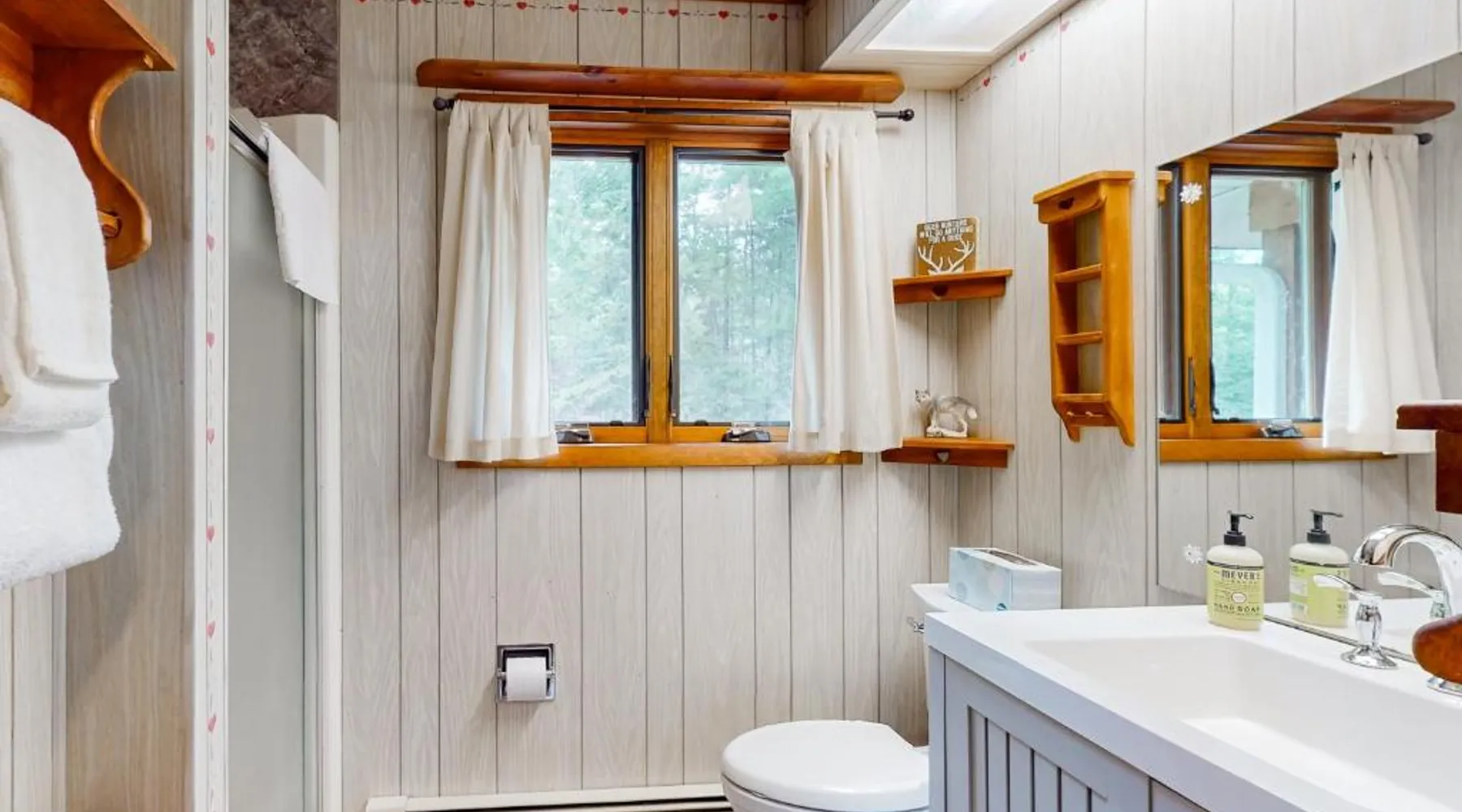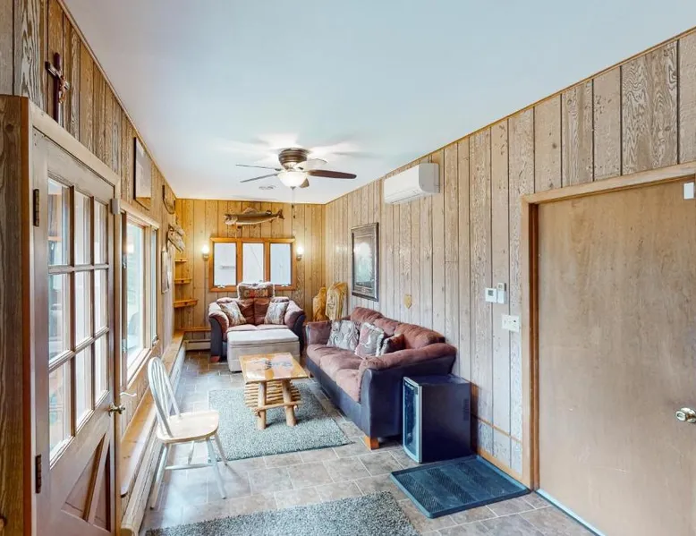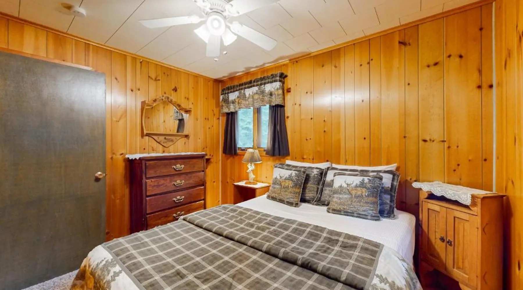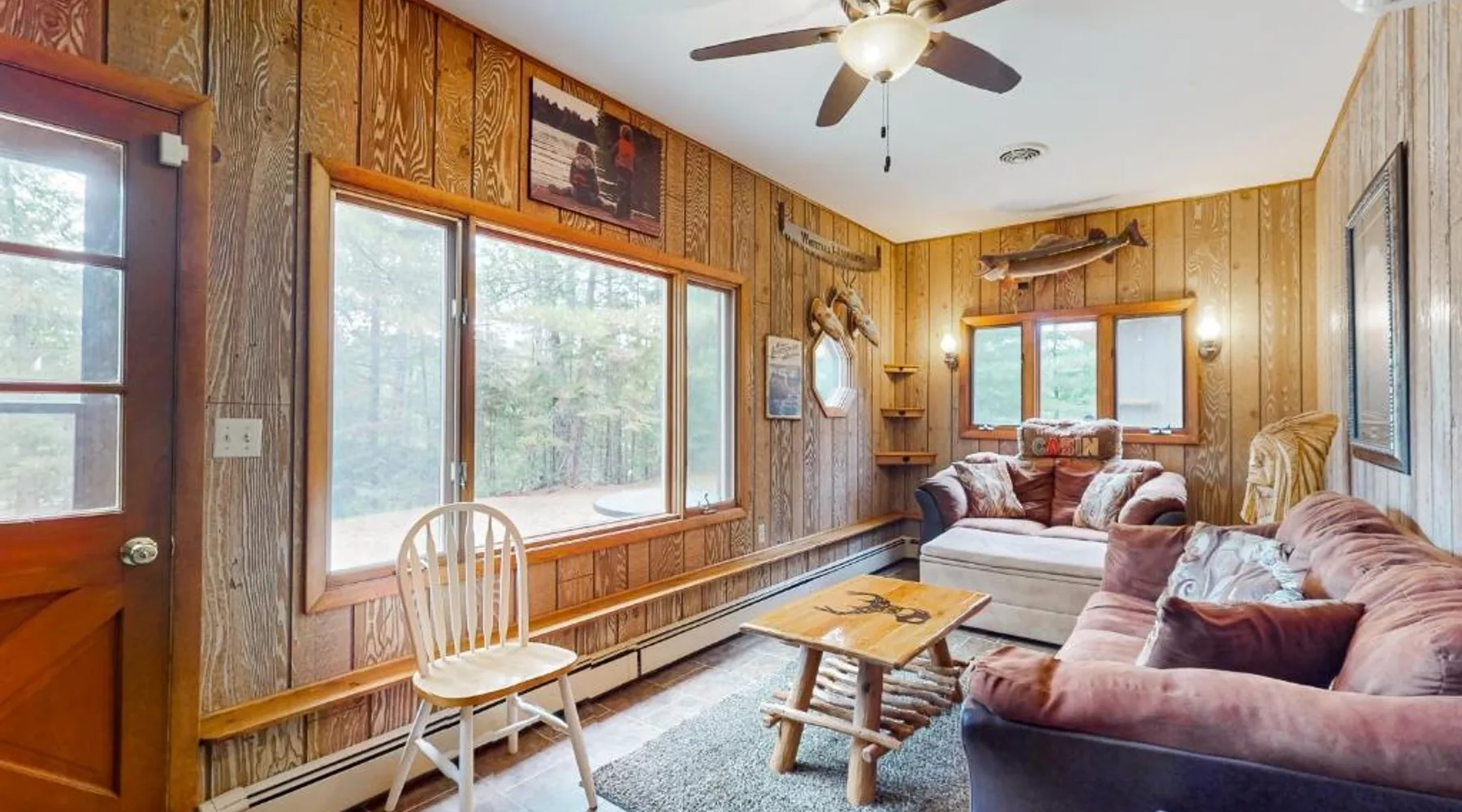Spacious Holiday Home in Saint Germain: Konkey's Kabin offers a spacious setting with three bedrooms and two bathrooms. The property features a living room, dining area, and a fully equipped kitchen. Outdoor Amenities: Guests can enjoy an outdoor fireplace, seating area, and a picnic spot. The outdoor space provides stunning lake views and a relaxing atmosphere. On-Site Facilities: A restaurant is available on-site, complemented by streaming services, a washing machine, and a work desk. The property includes a private entrance and free toiletries. Accessibility: Rhinelander-Oneida County Airport is 30 mi away, offering convenient travel options. Featuring a private entrance, this spacious holiday home also consists of 3 separate bedrooms, 2 bathrooms, a living room and a seating area. Guests will find a stovetop, a refrigerator, a dishwasher and kitchenware in the well-equipped kitchen. The holiday home also provides guests with a barbecue. The holiday home provides a TV with streaming services, a washing machine, a tea and coffee maker, a dining area as well as lake views. The unit offers 8 beds.