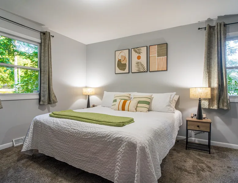 Unwind in this peaceful 3-bedroom retreat, just steps away from the serene Paw Paw Lakes. Enjoy cozy evenings by the fire pit, surrounded by twinkling lights. Explore the nearby wineries or fruit orchards, or take a leisurely stroll around Big or Little Paw Paw Lakes. Just a 10 minute drive will bring you to the shores of Lake Michigan. With a fully stocked kitchen and 3 comfortable bedrooms, this is the perfect getaway for relaxation and adventure. Located about 10 miles from the shores of Lake Michigan and it's many public beaches and just a short stroll to Paw Paw Lakes this recently updated 3 bedroom home is your perfect retreat while visiting Southwest Michigan. Key Details: ○ Property is a 1,120 square feet home with 3 bedrooms and 2 bathrooms. ○○Outdoor Space○○ ○ Gas grill with outdoor table and plenty of seating on the back deck ○ Stone fire pit complete with seating and string lights in the back yard, fire wood provided ○Bedroom 1○ ○ Comfortable king bed that has an adjustable frame and plenty of large pillows ○ Attached full bathroom complete with shower/tub combo ○ Shampoo, conditioner and body wash provided in shower for your convenience ○ 43" Roku Smart TV in Guest Mode ○ Closet with hangers and dresser in room to store your belongings ○ Iron, ironing board and steamer provided in closet for your convenience ○○Bedroom 2○○ ○ Comfortable queen bed with plenty of pillows ○ 43" Roku Smart TV in Guest Mode ○ Closet with hangers in the room to store your belongings ○ Pack n Play and children's high chair located in this closet ○○Bedroom 3○○ ○ Comfortable queen bed with plenty of pillows ○ Closet with hangers and dresser to store your belongings ○ There is no TV located in this bedroom ○○Full bathroom○○ ○ Features a tub/shower combo and plenty of towels for your stay. ○ Shampoo, conditioner and body wash provided in shower for your convenience ○ Hair dryer and clothes steamer also provided ○○Kitchen○○ ○ Fully stocked with all that is needed to cook delicious meals or just put together a quick snack. ○ Keurig and regular coffee pot provided ○ K-Cups, sugar and enough shelf-stable creamer to get your stay started provided for your convenience. ○ Dining table with 6 chairs to enjoy your meals ○○Living Room○○ ○ 65" Roku Smart TV in Guest Mode so you can easily sign into all of your streaming services. ○ Plenty of comfortable seating to rest and relax after a long day of exploring Key Attractions: ○ Located just steps from Big Paw Paw Lake and a short walk to the nearest public access ○ Located about .5 miles from Little Paw Paw Lake and a 15 minute walk to the nearest public access which features a small sandy beach area ○ Near several wineries featured on the Lake Michigan Shore Wine Trail ○ Located only a short 10 minute drive to Hagar Park - the closest beach access on Lake Michigan ○ Short 25 minute drive to the very popular Silver Beach in St Joseph ○ 30 minutes to Warren Dunes State Park where you can hike through towering sand dunes ○ Visit the nearby historic towns of St. Joseph, South Haven and Saugatuck Please note that this property is served by well water which sometimes can have a faint iron smell to it. If multiple fixtures are used at the same time this may affect water pressure inside the house so it is best to use the washer and dishwasher during the night. A few complimentary bottles of water are provided in the refrigerator at the beginning of your stay as well as Britta water filter pitchers.