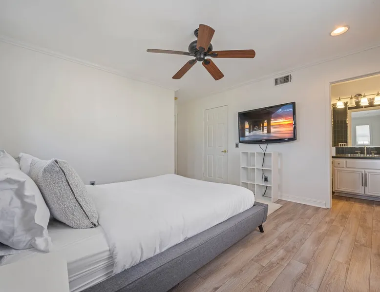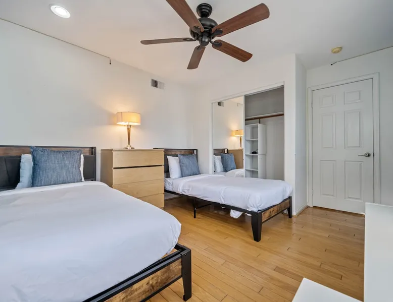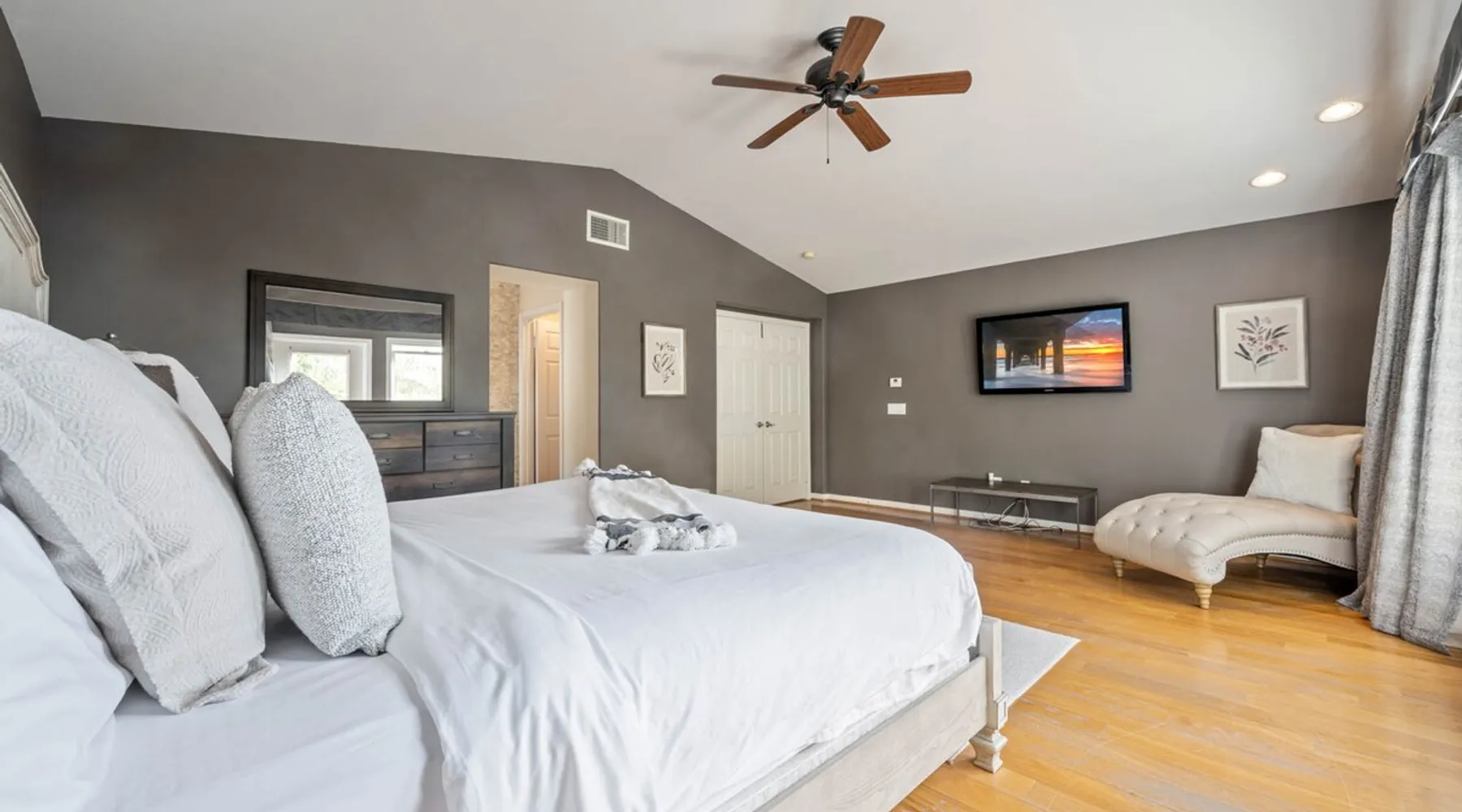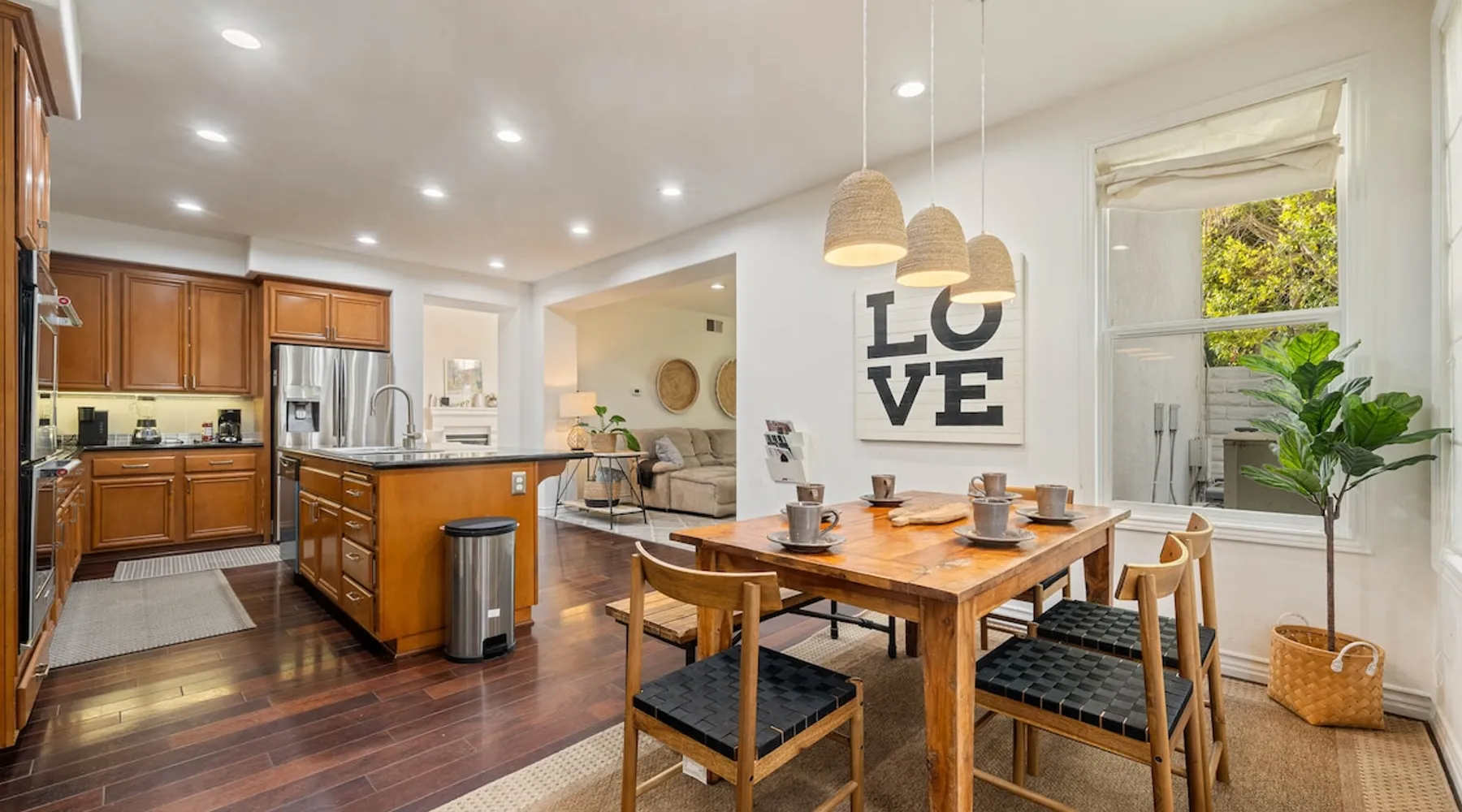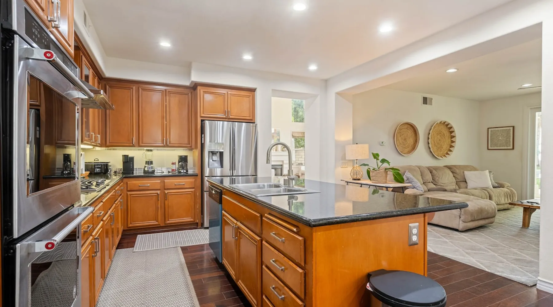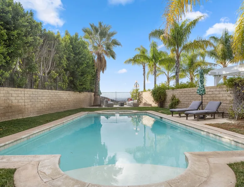 Welcome to your Stevenson Ranch luxury oasis, a rare 5-bedroom, 4-bathroom retreat offering over 3,600 sq. ft. of modern elegance and comfort. With soaring vaulted ceilings, a gorgeous pool and spa, and breathtaking hillside views, this home is designed for unforgettable stays -perfect for families, professionals, or groups seeking a peaceful yet refined getaway. The space Step inside to an inviting open floor plan that seamlessly blends sophistication and warmth. The gourmet kitchen features modern appliances, a large island, and plenty of space for culinary adventures. Dine together in the bright, sunlit dining area or unwind in the cozy living room - ideal for movie nights or relaxed gatherings. Each of the five beautifully appointed bedrooms is designed for comfort and style. The primary suite offers a private en-suite bathroom, perfect for a little extra luxury and privacy. Outdoor Paradise Your private backyard is a true Southern California sanctuary - complete with a sparkling pool, bubbling spa, and lush landscaped surroundings. Lounge in the sun, host a barbecue, or enjoy a tranquil evening under the stars. Location & Things to Do Located in a quiet, family-friendly neighborhood in Stevenson Ranch, you’ll be just minutes from everything you need — shopping, dining, and outdoor recreation. Nearby Attractions & Activities: - Six Flags Magic Mountain & Hurricane Harbor – 10 minutes away for thrilling rides and family fun - William S. Hart Park & Museum – historic park with hiking trails, a museum, and picnic spots - Valencia Town Center – upscale shopping, restaurants, and cafés - Pico Canyon & Towsley Canyon Trails – scenic hikes with panoramic views of Santa Clarita Valley - Vista Valencia Golf Course – for a relaxed round in a beautiful setting - Local Wineries & Breweries – sample Santa Clarita’s growing craft scene Whether you’re here for relaxation, adventure, or a touch of luxury living, this home offers the perfect balance of comfort, convenience, and style. Guest access The entire home is your own private oasis. Other things to note Pool heating $179/day with a 3-day minimum. Spa heating $79/day. For rentals of 30 days or longer, a flat, non-refundable utilities fee is required. This fee is calculated based on the size of the property and seasonal usage, and must be paid upfront. This home is pet friendly and there is a $250 pet cleaning fee. This fee is per pet. Important Note for Late or Last-Minute Bookings: Thank you for your reservation! Please note that for bookings made after 4 PM or for same-day arrivals, we may not always have time to fully refresh the property before your check-in, depending on the timing of your reservation. If you notice anything that needs attention upon arrival, please don’t hesitate to message us — we’re happy to send someone out the next day to take care of it. Your comfort is our priority, and we’ll do our best to ensure you have a great stay.