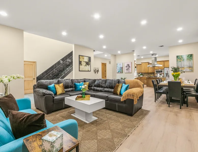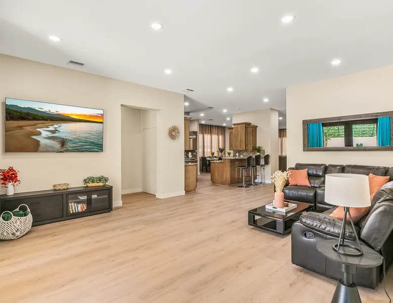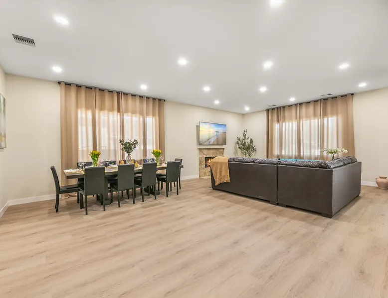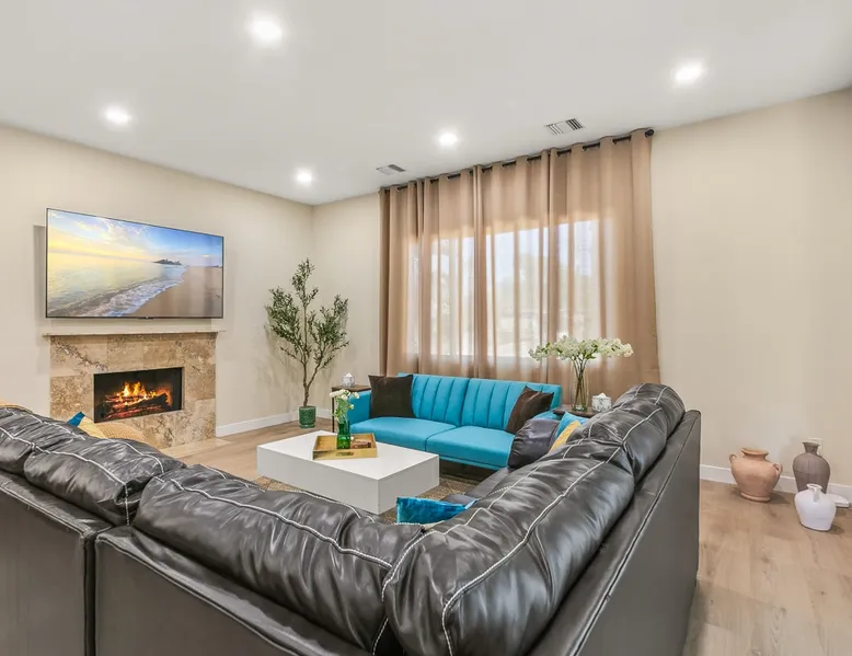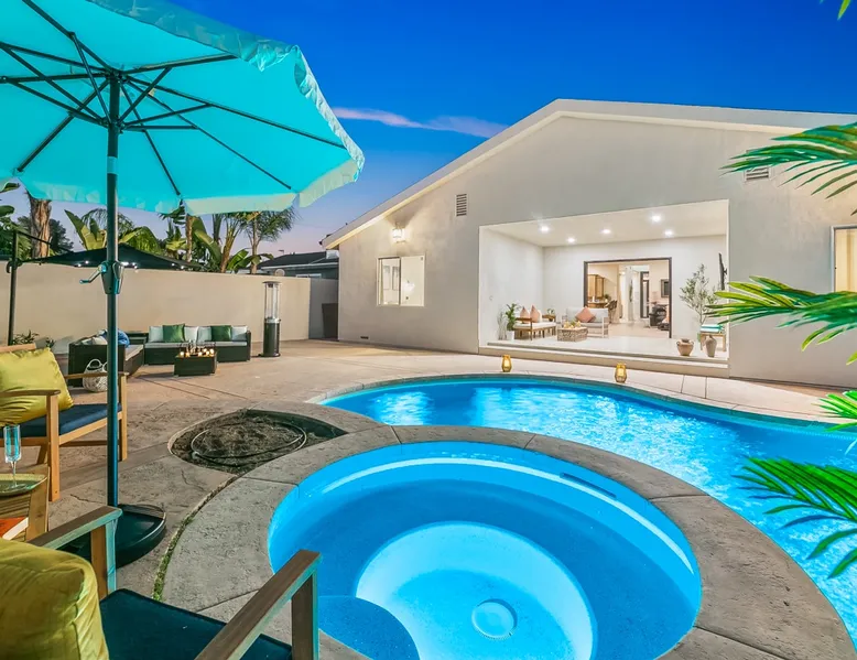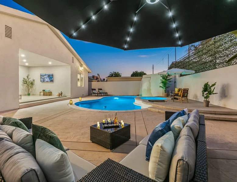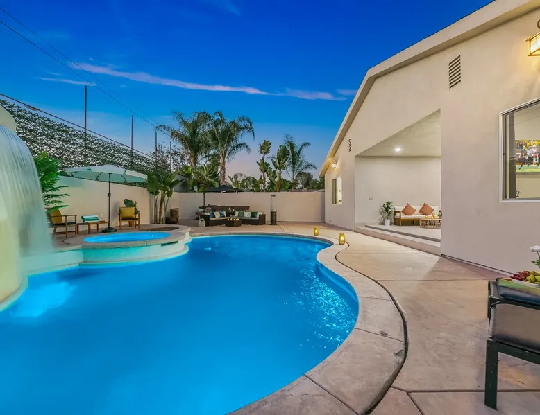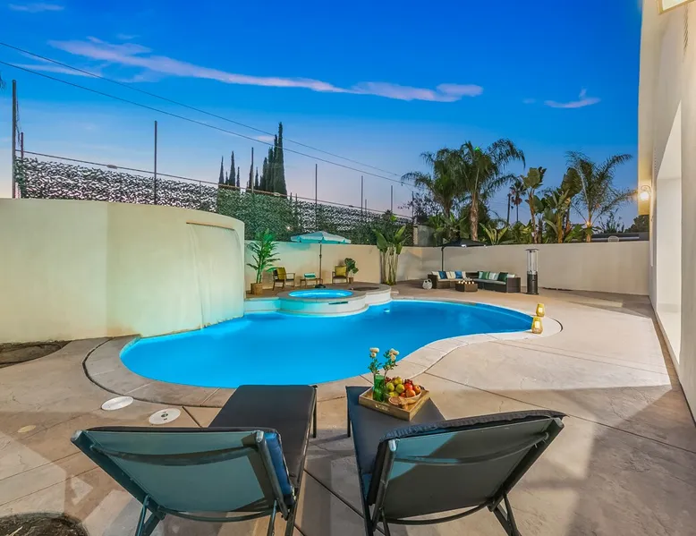 Welcome to your entertainer’s dream home in Noho. This fully remodeled 5-bedroom, 3.5-bathroom retreat is designed for luxury and style. Featuring a stunning pool and spa, spacious open floor plan, upscale kitchen, and elegant furnishings, it’s perfect for hosting unforgettable gatherings. The luxurious master suite with a spa-like bathroom adds to the indulgence. Whether relaxing or entertaining, this home offers it all. Book now and create lasting memories in this one-of-a-kind haven! The space Step inside to discover a beautifully designed interior featuring high ceilings, modern finishes, and abundant natural light. The gourmet kitchen is a chef’s dream, complete with top-of-the-line appliances and a large island, ideal for entertaining. The open-concept living and dining areas offer a welcoming space for gatherings, with tasteful decor throughout. Retreat to the luxurious master suite, complete with an en-suite bathroom featuring dual vanities and a soaking tub. Each additional bedroom is thoughtfully appointed, ensuring a restful night’s sleep. The outdoor area is a true highlight, featuring a sparkling pool, waterfall and relaxing spa, perfect for unwinding under the California sun. The spacious patio is equipped with a BBQ, making it an ideal spot for alfresco dining or hosting summer gatherings surrounded by lush landscaping. Located in a vibrant neighborhood, you’ll enjoy easy access to local attractions, shopping, and dining. Experience the perfect blend of elegance and relaxation in this exquisite North Hollywood home! Bedrooms and Bathrooms: -Bedrooms #1 and #2 each have attached (en suite) bathrooms. -Bedrooms #3 and #4 share a full bathroom. -Bedroom #5 is located on the second floor and has a half bathroom. Other things to note Pool & Spa Heating Information • Spa Heating: $75 per session (1-4 hours) or $99/day for unlimited use (short-term stays). The spa can be heated to 101-104°F. • Pool Heating (includes spa heating): $189/day with a 3-day minimum booking. The pool can be heated to 88-94°F. • Prices may be subject to change if gas rates increase. The pool requires advance notice for heating, as it takes time to reach the desired temperature depending on weather conditions. Pet Policy • This home is pet-friendly. • A $250 pet cleaning fee applies per pet. 28+ Day Stays • A $49/day utilities fee will be applied through Airbnb’s resolution center for stays over 28 days. • Pool Heating: $69-$99/day depending on weather. • Unlimited Spa Heating: $29/day. The spa can be heated to 101-104°F. If you only plan to use the spa occasionally, this can be incorporated within the $49/day utilities fee. Any utility costs exceeding the daily fee will be billed separately. Please let us know if you would like to add any heating services to your reservation! Important Note for Late or Last-Minute Bookings: Thank you for your reservation! Please note that for bookings made after 4 PM or for same-day arrivals, we may not always have time to fully refresh the property before your check-in, depending on the timing of your reservation. If you notice anything that needs attention upon arrival, please don’t hesitate to message us — we’re happy to send someone out the next day to take care of it. Your comfort is our priority, and we’ll do our best to ensure you have a great stay. Registration details HSR24-003501