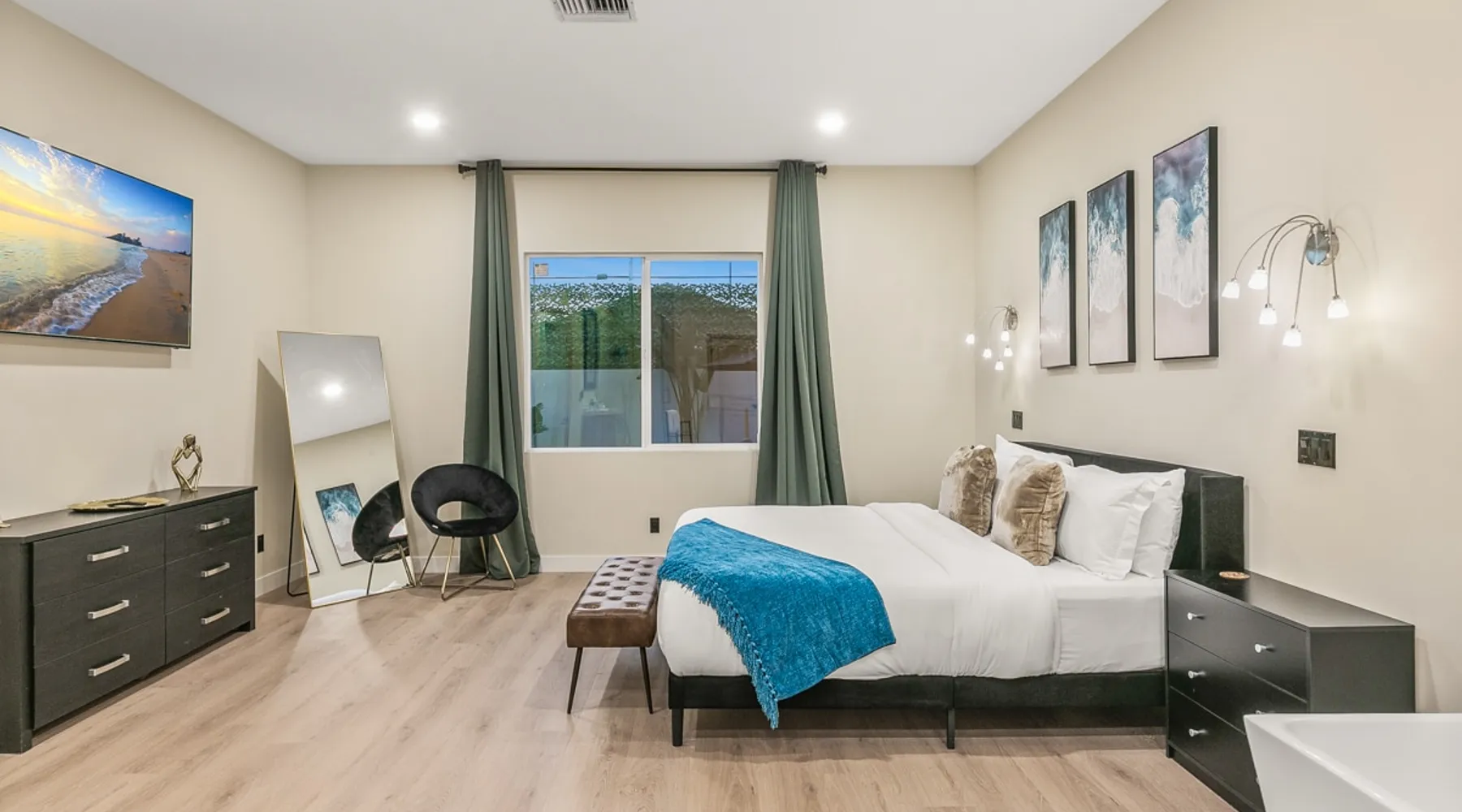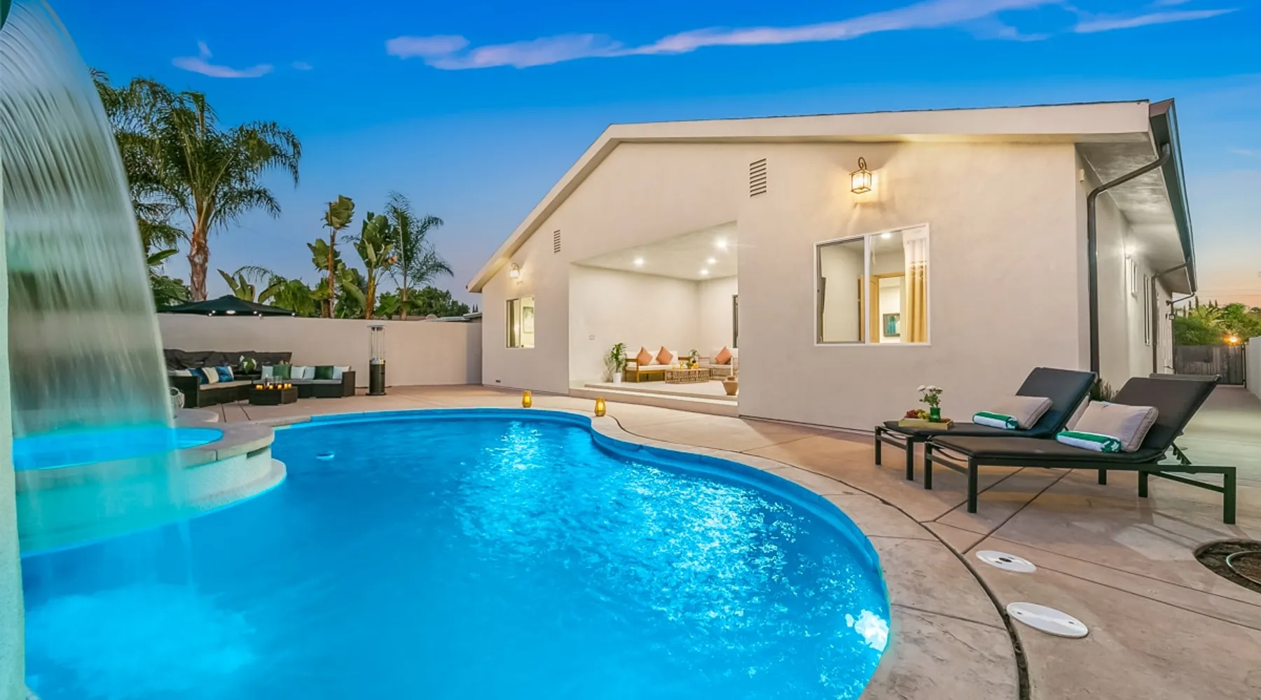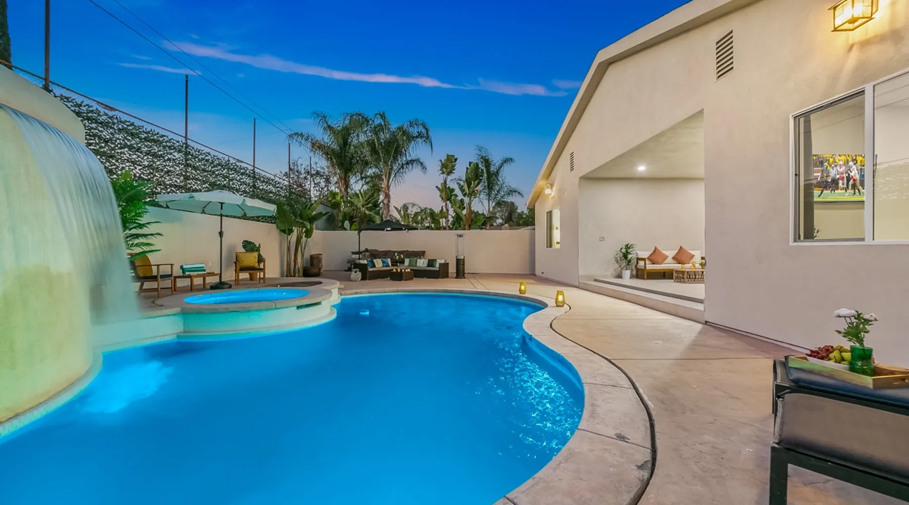 Welcome to your entertainer’s dream home in Noho. This fully remodeled 5-bedroom, 3.5-bathroom retreat is designed for luxury and style. Featuring a stunning pool and spa, spacious open floor plan, upscale kitchen, and elegant furnishings, it’s perfect for hosting unforgettable gatherings. The luxurious master suite with a spa-like bathroom adds to the indulgence. Whether relaxing or entertaining, this home offers it all. Book now and create lasting memories in this one-of-a-kind haven! The space Step inside to discover a beautifully designed interior featuring high ceilings, modern finishes, and abundant natural light. The gourmet kitchen is a chef’s dream, complete with top-of-the-line appliances and a large island, ideal for entertaining. The open-concept living and dining areas offer a welcoming space for gatherings, with tasteful decor throughout. Retreat to the luxurious master suite, complete with an en-suite bathroom featuring dual vanities and a soaking tub. Each additional bedroom is thoughtfully appointed, ensuring a restful night’s sleep. The outdoor area is a true highlight, featuring a sparkling pool, waterfall and relaxing spa, perfect for unwinding under the California sun. The spacious patio is equipped with a BBQ, making it an ideal spot for alfresco dining or hosting summer gatherings surrounded by lush landscaping. Located in a vibrant neighborhood, you’ll enjoy easy access to local attractions, shopping, and dining. Experience the perfect blend of elegance and relaxation in this exquisite North Hollywood home! Bedrooms and Bathrooms: -Bedrooms #1 and #2 each have attached (en suite) bathrooms. -Bedrooms #3 and #4 share a full bathroom. -Bedroom #5 is located on the second floor and has a half bathroom. Other things to note Pool & Spa Heating Information • Spa Heating: $75 per session (1-4 hours) or $99/day for unlimited use (short-term stays). The spa can be heated to 101-104°F. • Pool Heating (includes spa heating): $189/day with a 3-day minimum booking. The pool can be heated to 88-94°F. • Prices may be subject to change if gas rates increase. The pool requires advance notice for heating, as it takes time to reach the desired temperature depending on weather conditions. Pet Policy • This home is pet-friendly. • A $250 pet cleaning fee applies per pet. 28+ Day Stays • A $49/day utilities fee will be applied through Airbnb’s resolution center for stays over 28 days. • Pool Heating: $69-$99/day depending on weather. • Unlimited Spa Heating: $29/day. The spa can be heated to 101-104°F. If you only plan to use the spa occasionally, this can be incorporated within the $49/day utilities fee. Any utility costs exceeding the daily fee will be billed separately. Please let us know if you would like to add any heating services to your reservation! Important Note for Late or Last-Minute Bookings: Thank you for your reservation! Please note that for bookings made after 4 PM or for same-day arrivals, we may not always have time to fully refresh the property before your check-in, depending on the timing of your reservation. If you notice anything that needs attention upon arrival, please don’t hesitate to message us — we’re happy to send someone out the next day to take care of it. Your comfort is our priority, and we’ll do our best to ensure you have a great stay. Registration details HSR24-003501