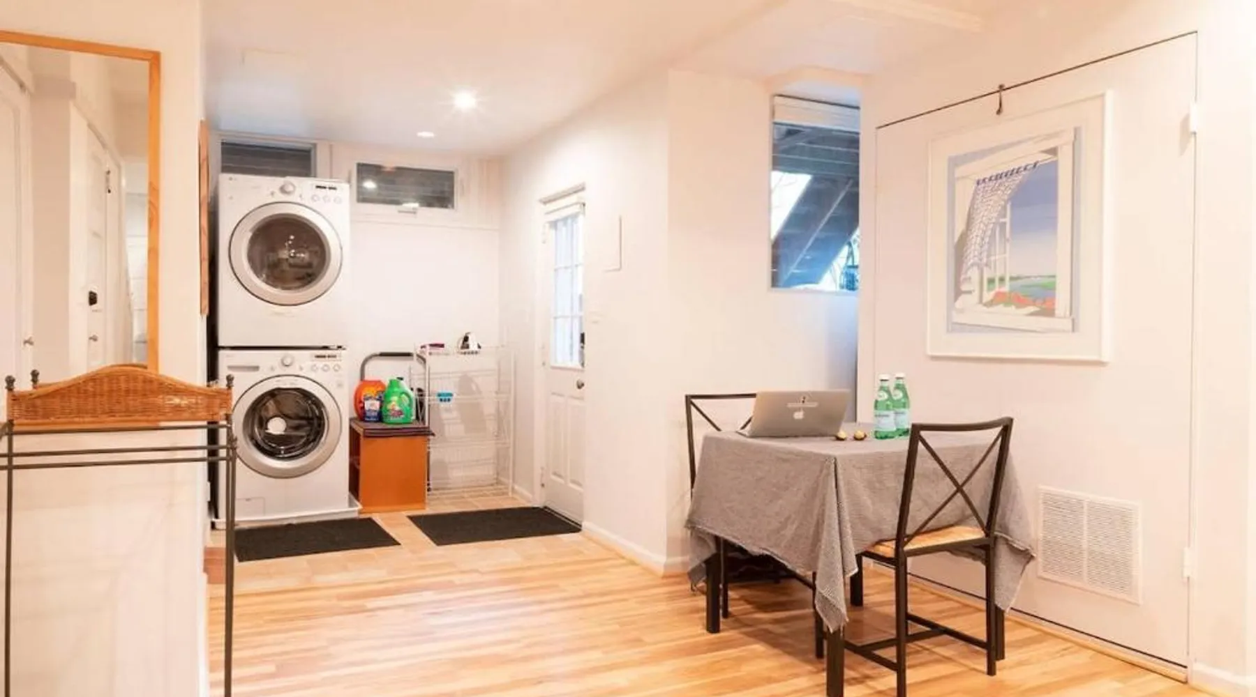 Spacious Living: Huge Studio w Full Kitchen W D Parking in Washington DC offers a spacious apartment with a private entrance. The living room features air-conditioning, a washing machine, and a fully equipped kitchen with a refrigerator, microwave, dishwasher, and oven. Modern Amenities: Guests enjoy free WiFi, a private bathroom with a shower, and a tea and coffee maker. Additional amenities include a hairdryer, TV, and kitchenware. Free on-site parking is available. Prime Location: Located 8.1 mi from Ronald Reagan Washington National Airport, the apartment is near attractions such as the Phillips Collection (2.2 mi), White House (3 mi), and Lincoln Memorial (3.7 mi). An ice-skating rink and boating are available in the surroundings. Highly Rated: Guests appreciate the spaciousness and excellent facilities, making it a highly rated choice. The apartment offers tumble dryer and heating, as well as a private bathroom featuring a hairdryer. The well-fitted kitchen features a stovetop, a refrigerator, a dishwasher and kitchenware. The spacious apartment provides air conditioning, a washing machine, a private entrance, a tea and coffee maker, as well as a TV. The unit offers 1 bed.