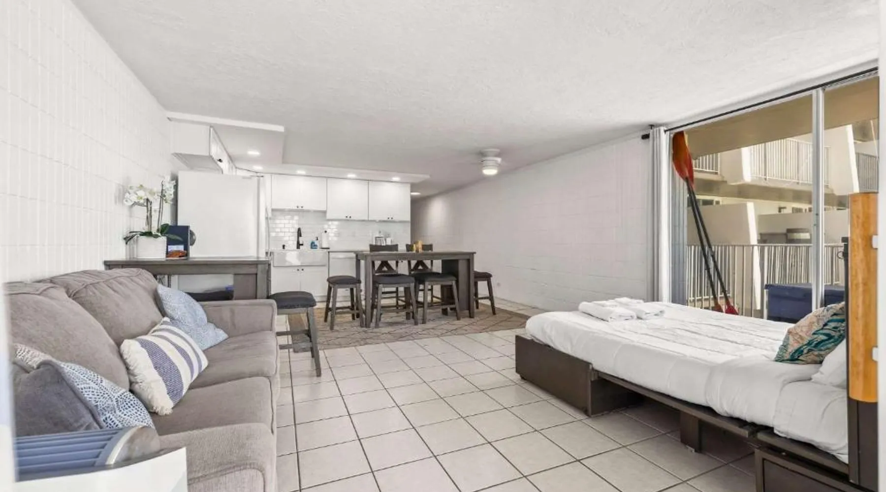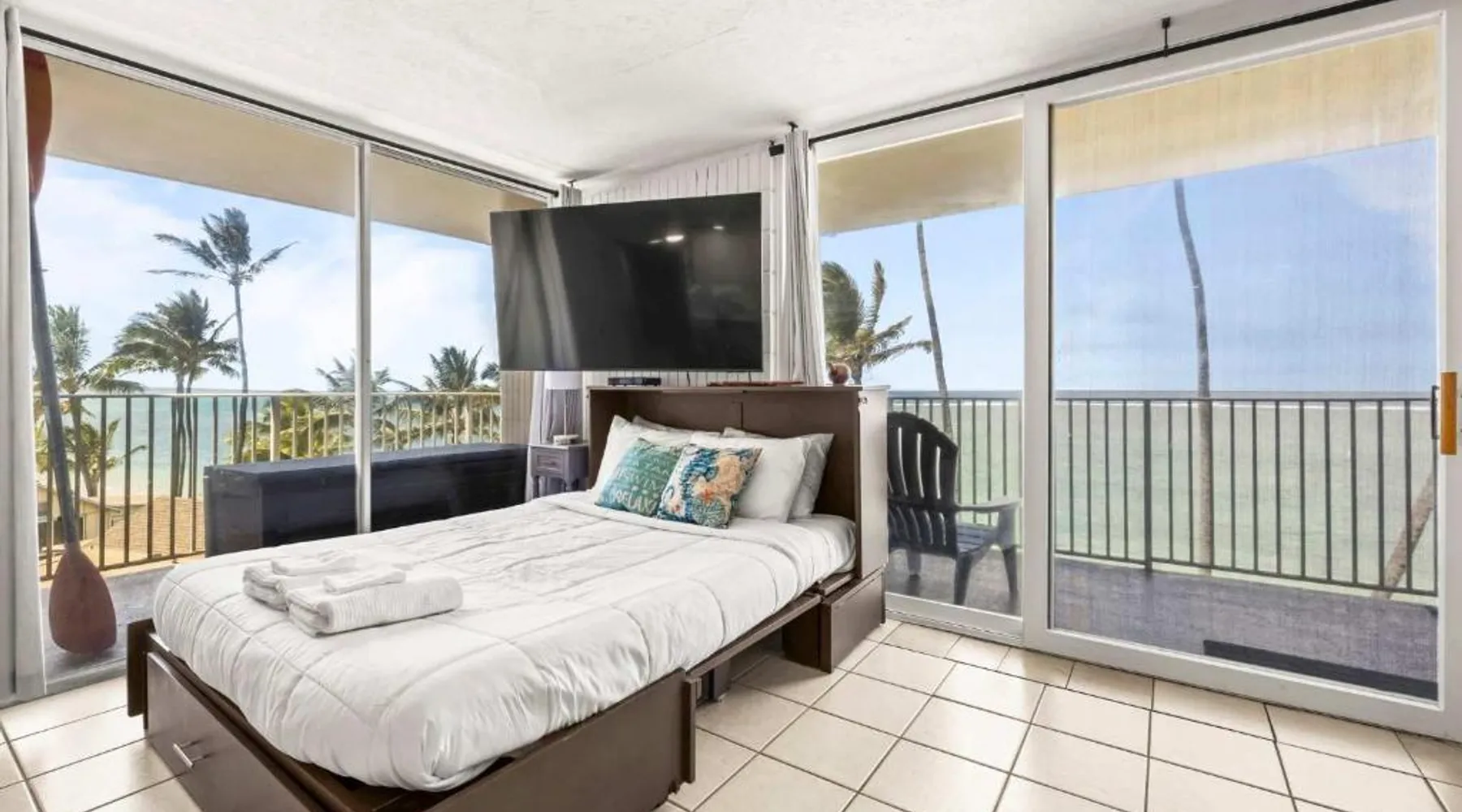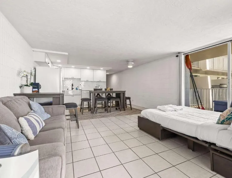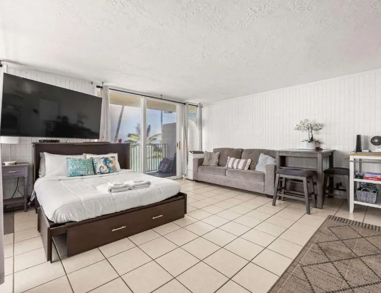 Beachfront Location: Amazing Beachfront Condo with AC in Laie offers direct beachfront access with stunning sea views. Guests can relax on the sandy shores or take a dip in the outdoor swimming pool. Facilities and Amenities: The property features a fitness center, waterpark, and free WiFi. Additional amenities include a elevator, free on-site parking, and a private entrance. Comfortable Living: The spacious holiday home includes one bedroom, one bathroom, and a living room. Equipped with air-conditioning, a fully fitted kitchen, and a washing machine, it ensures a comfortable stay. Nearby Attractions: Punalu'u Beach Park is less than 0.6 mi away, while the Polynesian Cultural Center is 4.3 mi distant. Honolulu International Airport is 30 mi from the property. Guests will find a stovetop, a refrigerator, a dishwasher and kitchenware in the kitchen. The apartment also has a barbecue. The spacious air-conditioned apartment offers a TV with streaming services, a washing machine, a private entrance, a tea and coffee maker as well as sea views. The unit offers 4 beds.
