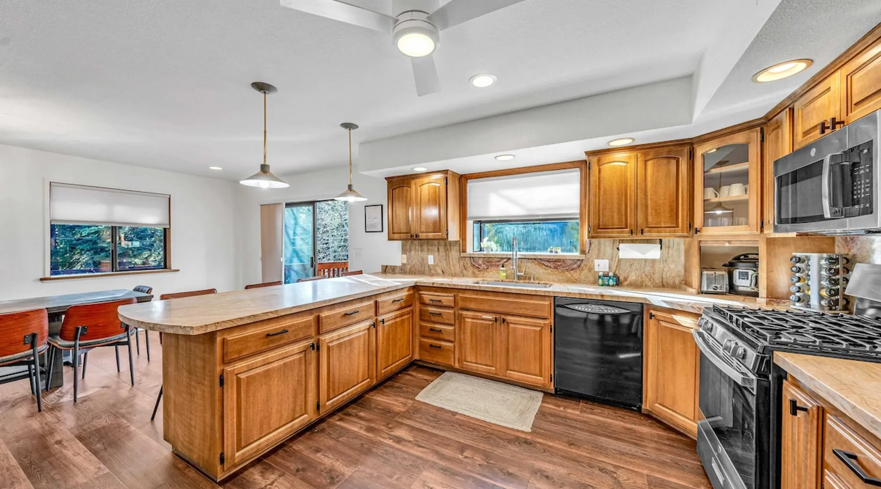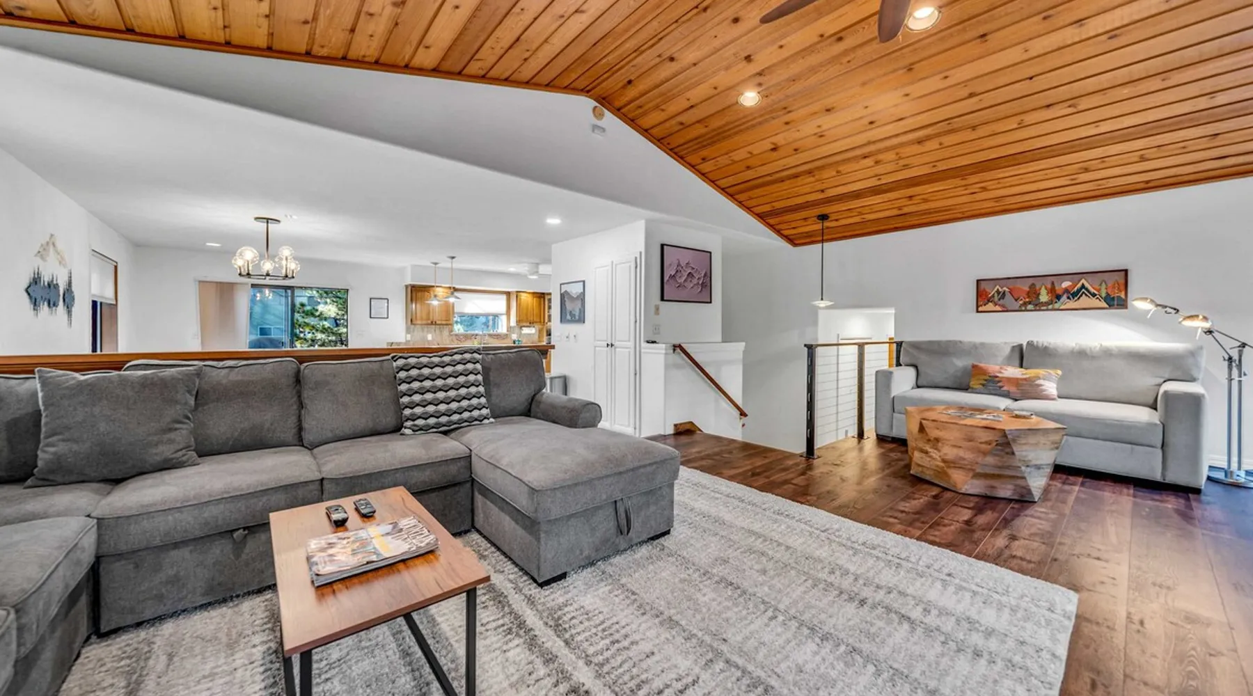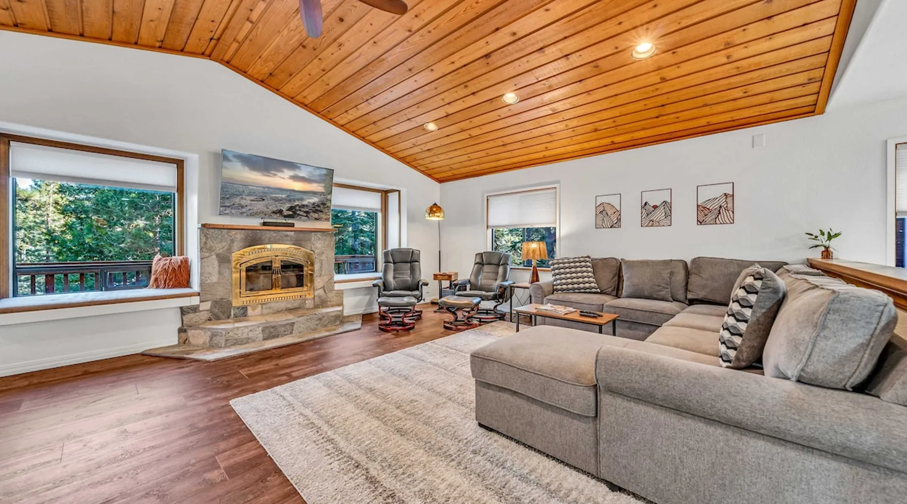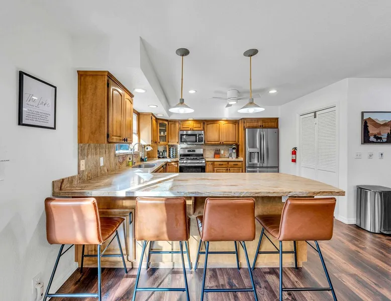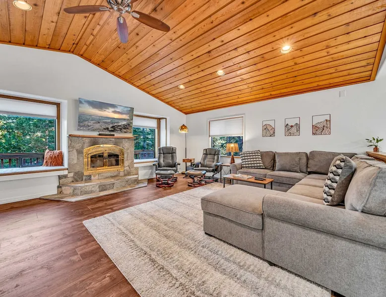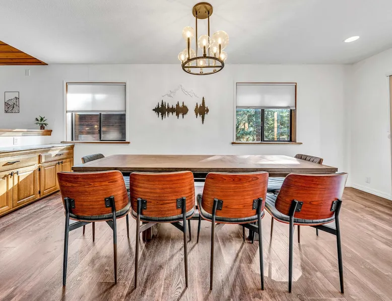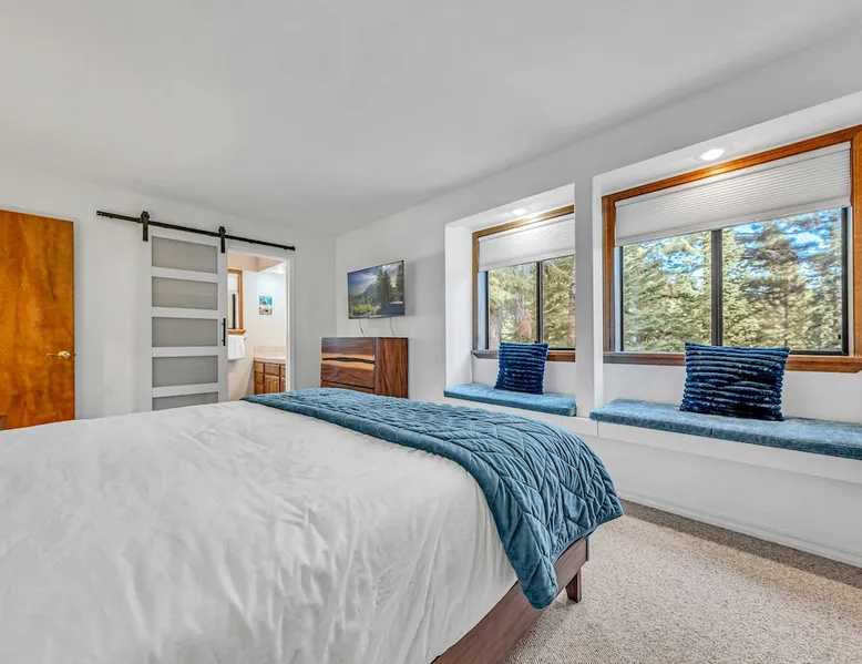 Experience the ultimate Lake Tahoe vacation rental in this spacious 4-bedroom, 3-bathroom home in Tahoe Vista. Offering 2,267 square feet of living space, including an apartment with a separate entrance, this property is perfect for families or groups. After skiing at Northstar California Resort or hiking and boating on Lake Tahoe, enjoy the convenience of a fully equipped kitchen, multiple living areas, and 2 decks, all set in a tranquil location just minutes from Lake Tahoe's best attractions. The space Location perks: Lake Tahoe (2.1 miles), Northstar California Resort (4.9 miles), Incline Village (7.5 miles) Interior: - Kitchen (Keurig, Crockpot, blender, cooking utensils, tableware) - Kitchenette (Keurig, mini fridge, sink, microwave, no hot plate) - 3 Smart TVs (42” LG in bedrooms, 55” LG in living room) - Gas fireplace - Washer and dryer - Free WiFi (566 Mbps) - Central heating, no A/C - 2,267 sq ft Exterior: - Backyard - 2 decks - On-site parking for 3 vehicles (1 in garage, 2 in driveway) Main Floor: Kitchen, dining area, living room, master bedroom (king bed, en suite bathroom), 1 bedroom (king bed), 1 bedroom (queen bed), 1 full bathroom Lower Level (Apartment with separate entrance): Queen bed, living space, kitchenette, dining area, 1 full bathroom Guest access Guests have access to the entire home, including the private studio, patio, and in-unit laundry. On-site parking for 3 vehicles is available (1 in the garage and 2 in the driveway). Other things to note Please note that this property does not include air conditioning, which is typical for Tahoe homes. Please keep in mind that if you plan to ski, you are responsible for verifying the ski resorts' opening and closing dates. Registration details STR25-9288