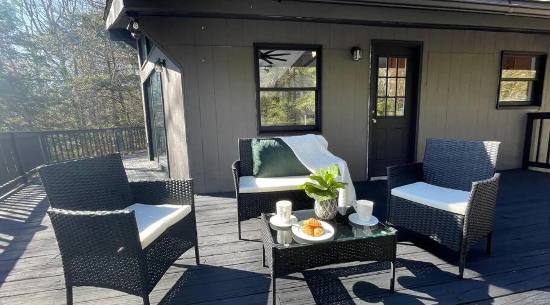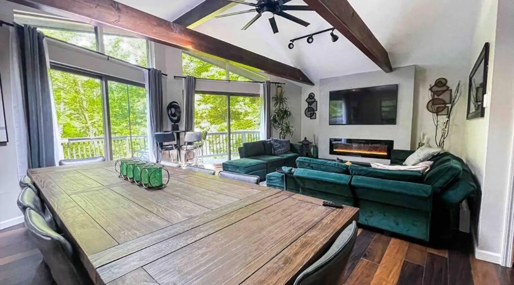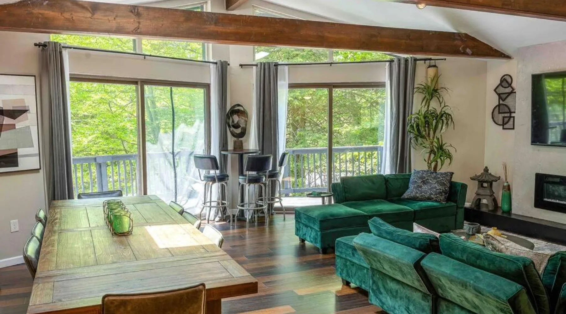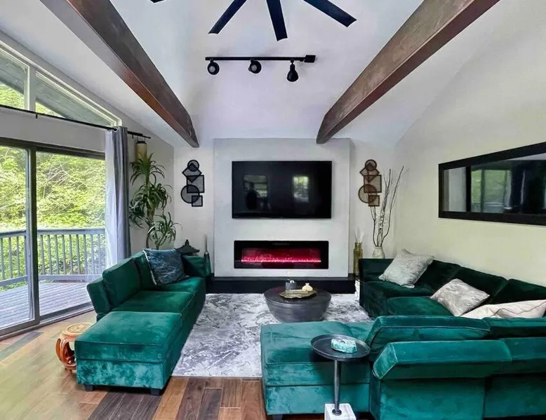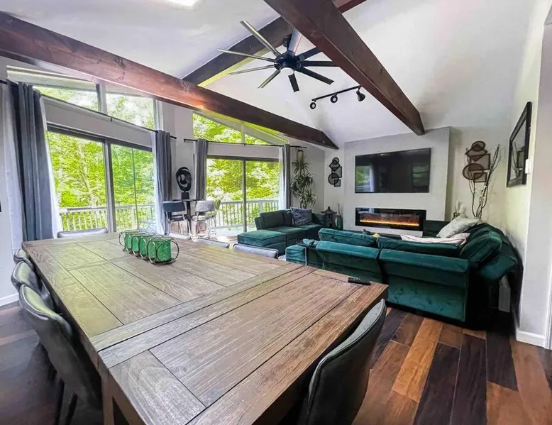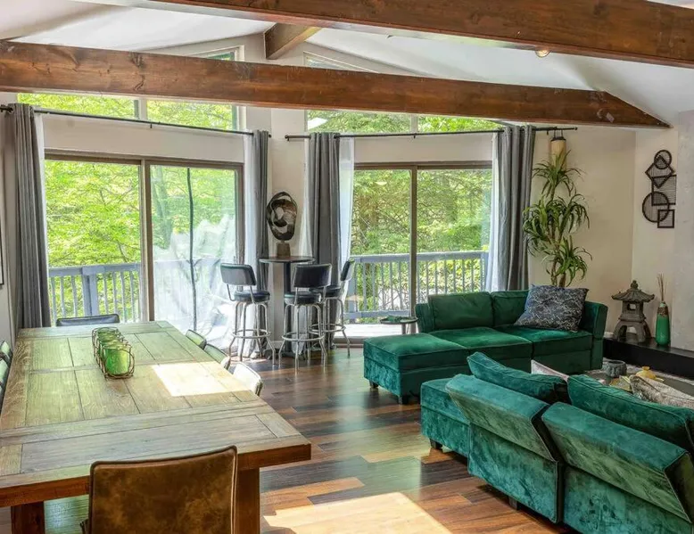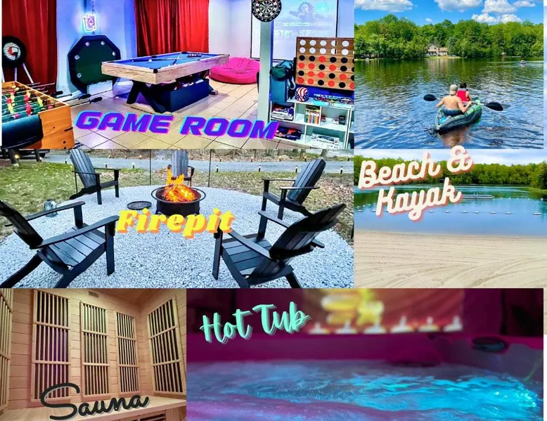Spacious Accommodations: Zen Spa Oasis Retreat in Blakeslee offers a spacious chalet with four bedrooms and three bathrooms. The living room features a sofa bed and parquet floors, ensuring comfort for all guests. Wellness and Leisure: Guests can enjoy a private beach area, spa and wellness center, sauna, sun terrace, and hot tub. Additional facilities include a tennis court, bar, games room, and free WiFi. Convenient Location: Located 33 mi from Wilkes-Barre/Scranton International Airport, the property is near attractions such as Jack Frost Mountain Resort (3.1 mi), Pocono Raceway (8.1 mi), and Kalahari Waterpark (13 mi). Free on-site private parking is available. This chalet's standout features are the hot tub, sauna and fireplace. This spacious chalet includes 2 living rooms, 4 separate bedrooms and 3 bathrooms with a bath and free toiletries. The well-fitted kitchen has a stovetop, a refrigerator, a dishwasher and an oven. The air-conditioned chalet offers a flat-screen TV with streaming services, a washing machine, a private entrance, a mini-bar as well as garden views. The unit has 7 beds.