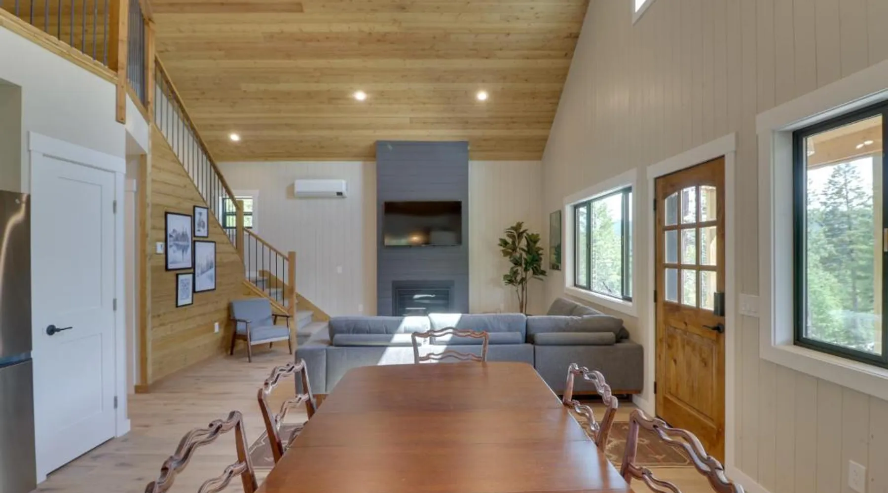 Spacious Accommodations: Lakeside Cabin Retreat with Private Hot Tub! in Lakeside offers a spacious holiday home with two bedrooms and two bathrooms. The living room features a cozy fireplace and a private entrance. Wellness and Connectivity: Guests can relax in the private hot tub or unwind at the on-site spa and wellness center. Free WiFi is available throughout the property, ensuring connectivity. Modern Amenities: The holiday home includes air-conditioning, a fully equipped kitchen with a coffee machine, washing machine, and a work desk. Additional amenities include a patio, outdoor dining area, and a TV. Nearby Attractions: Flathead Lake is 15 mi away, and Glacier Park International Airport is 27 mi from the property. Highly rated by guests, the retreat provides a comfortable and relaxing stay. The hot tub and fireplace are the standout features of this holiday home. Boasting a private entrance, this air-conditioned holiday home features 2 living rooms, 2 separate bedrooms and 2 bathrooms with a bath and a shower. Meals can be prepared in the kitchen, which has a stovetop, a refrigerator, a dishwasher and kitchenware. The spacious holiday home features a washing machine, a coffee machine, a wardrobe, tumble dryer and a flat-screen TV. The unit has 4 beds.