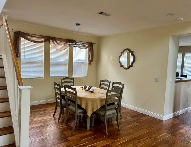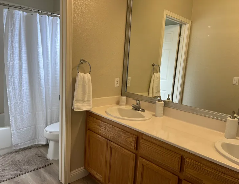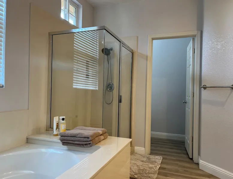 Welcome to this newly remodeled spacious house in sunny Dublin, CA. This modern and comfortable home is a perfect base to explore all that San Francisco Bay Area has to offer! Minutes to San Francisco Premium Outlets, Livermore’s wedding venues, BART, Water Park and Emerald Glen Park within walking distance. Stanford Trivalley hospital, Dublin Kaiser and Sutter Health minutes away. Camp Parks Military base nearby. Livermore wineries 15 min away, Napa Valley 60 min The space * This modern and comfortable home features fully equipped kitchen with brand new appliances and a cozy breakfast nook and opens to a family room theater ready to stream your favorite shows or gather around fireplace for a game night. Tasteful former dining area features beautiful and comfortable dining table with seating for eight to enjoy time together over a meal after a day of exploration or work. The living room with double ceilings allows the light to illuminate the space and creates the perfect ambiance. Downstairs area features a guest restroom and a fully equipped laundry room. Upstairs you will find a supersized privately located master bedroom with modern finishes, including brand new Ashley furniture queen size bed with luxury linens, jacuzzi hot tub and a separate shower, double vanity, and a walk-in closet. Additional linens are provided. Crib available upon request. Two additional bedrooms feature queen size beds in each and the other bedroom presents two twin beds and a desk. Additional bathroom is located across the hall from all the bedrooms and is equipped with the bathtub and a double vanity. * high speed internet access provided * Two car garage is spacious and features EV charger. * Additional parking is available in the quest parking area located on the left hand side directly after entering the development from the Tassajara road.