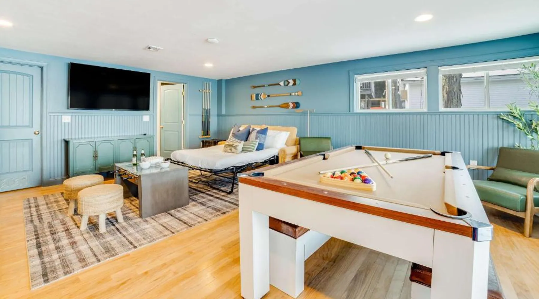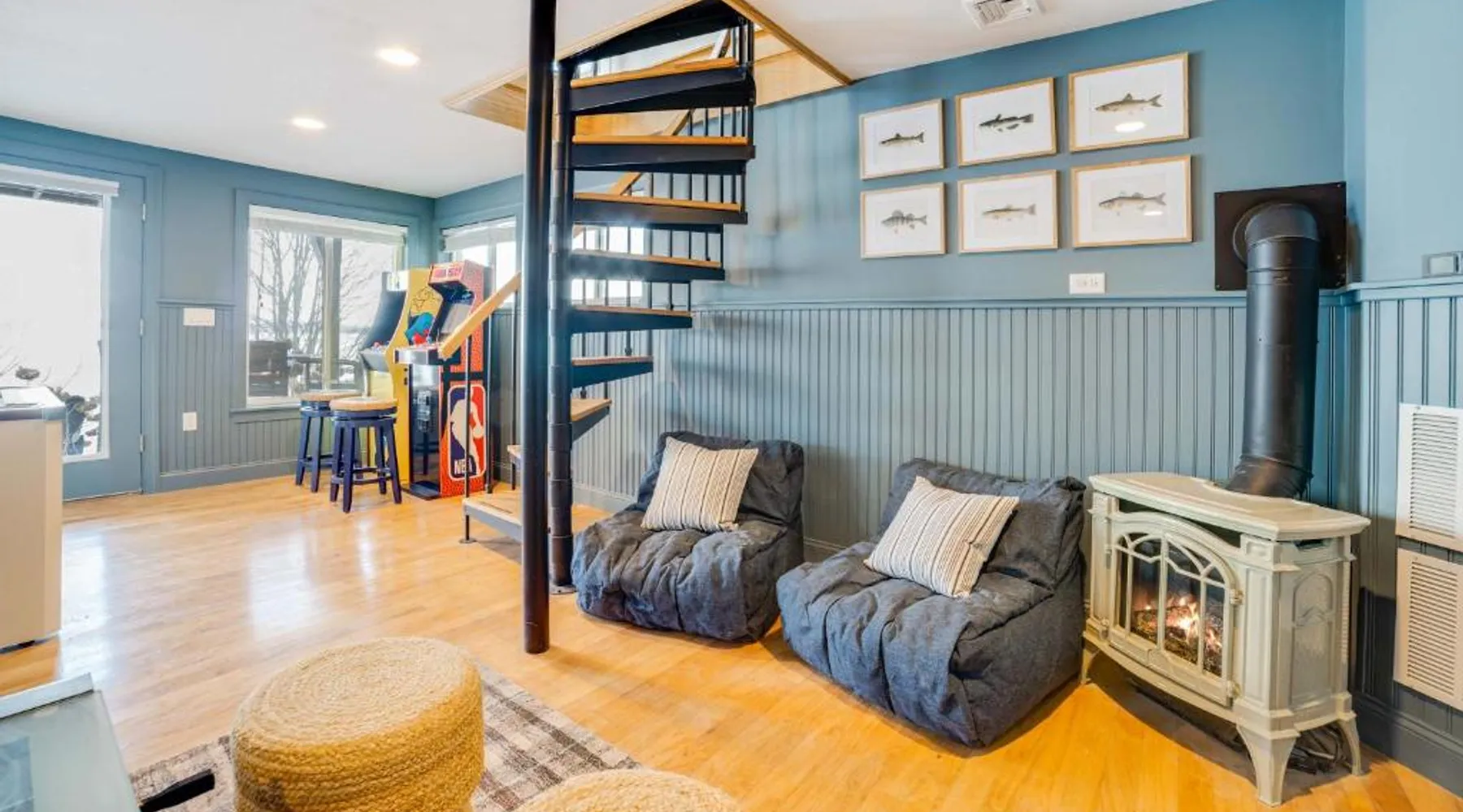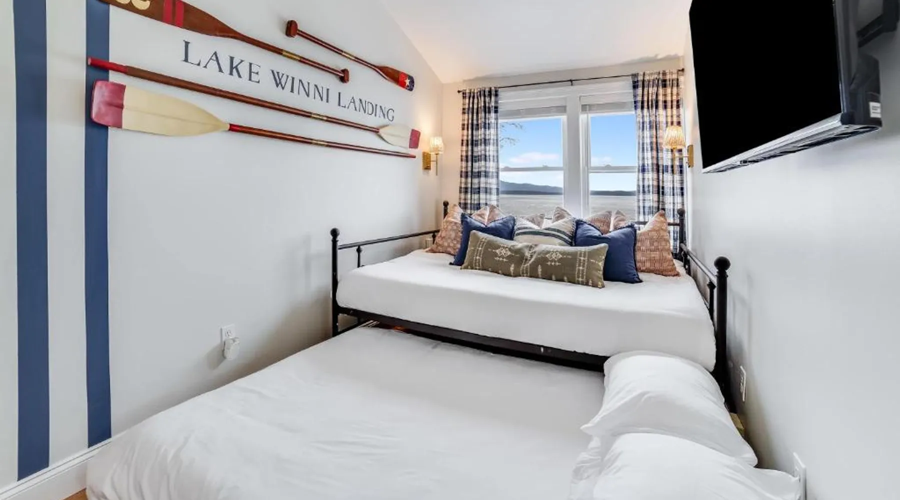 Spacious Accommodations: Lake Access Mtn Views Game Room Hot Tub & More in Gilford offers a spacious holiday home with three bedrooms and three bathrooms. The living room features a cozy fireplace and comfortable furnishings. Modern Amenities: Guests enjoy free WiFi, a games room, and a hot tub. The fully equipped kitchen includes a dishwasher, refrigerator, and dining table. Additional amenities include a washing machine, patio, and outdoor furniture. Outdoor Spaces: The property offers stunning lake views and a private patio. An outdoor barbecue provides a perfect setting for alfresco dining. Convenient Location: Located 47 mi from Portsmouth International Airport at Pease, the holiday home is located in Gilford. Reception staff speak English. This holiday home's special features are the hot tub and the fireplace. This spacious holiday home consists of 1 living room, 3 separate bedrooms and 3 bathrooms with a hairdryer and free toiletries. Guests will find a refrigerator, a dishwasher and kitchenware in the kitchen. The holiday home also provides guests with a barbecue. Among the room amenities are a washing machine, a private entrance, a tea and coffee maker as well as a patio and lake views. The unit offers 6 beds.