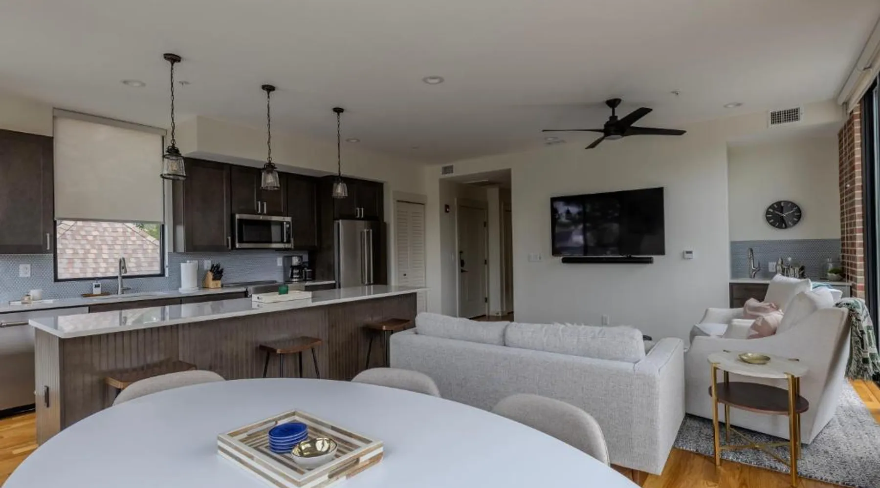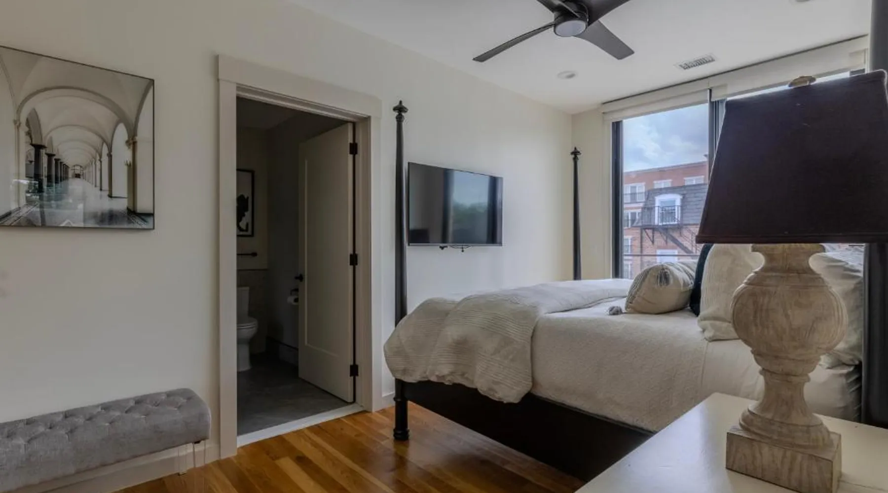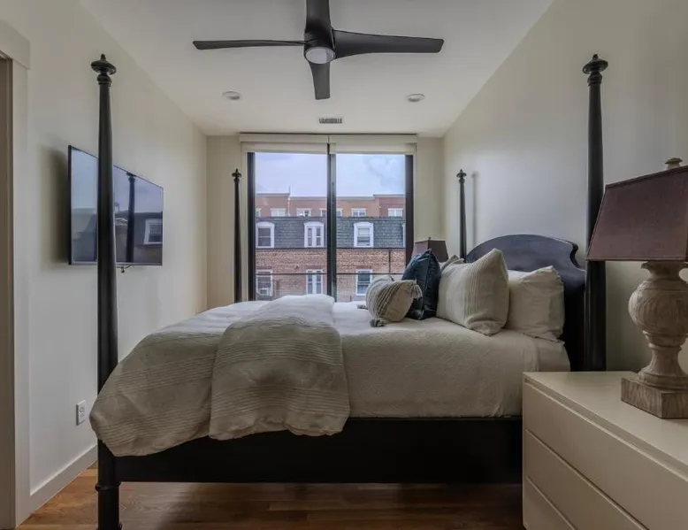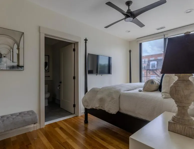 Spacious Accommodations: Downtown Princeton Chic in Princeton offers a spacious apartment with two bedrooms and two bathrooms. The living room includes a comfortable sofa and a work desk, ensuring a pleasant stay. Modern Amenities: Guests enjoy free WiFi, air-conditioning, and a sun terrace. The apartment features a fully equipped kitchen with a refrigerator, microwave, dishwasher, oven, and stovetop. Additional amenities include a washing machine, balcony, and terrace. Convenient Location: Princeton University is a 6-minute walk away, while Trenton-Mercer Airport lies 14 mi from the property. Nearby attractions include Princeton Battlefield State Park (1.9 mi) and Sesame Place (19 mi). An ice-skating rink is also located in the surroundings. This spacious apartment consists of 1 living room, 2 separate bedrooms and 2 bathrooms with a hairdryer. The fully equipped kitchen features a stovetop, a refrigerator, a dishwasher and an oven. Featuring a terrace, this apartment also provides air conditioning, a washing machine and a flat-screen TV. The unit offers 2 beds.