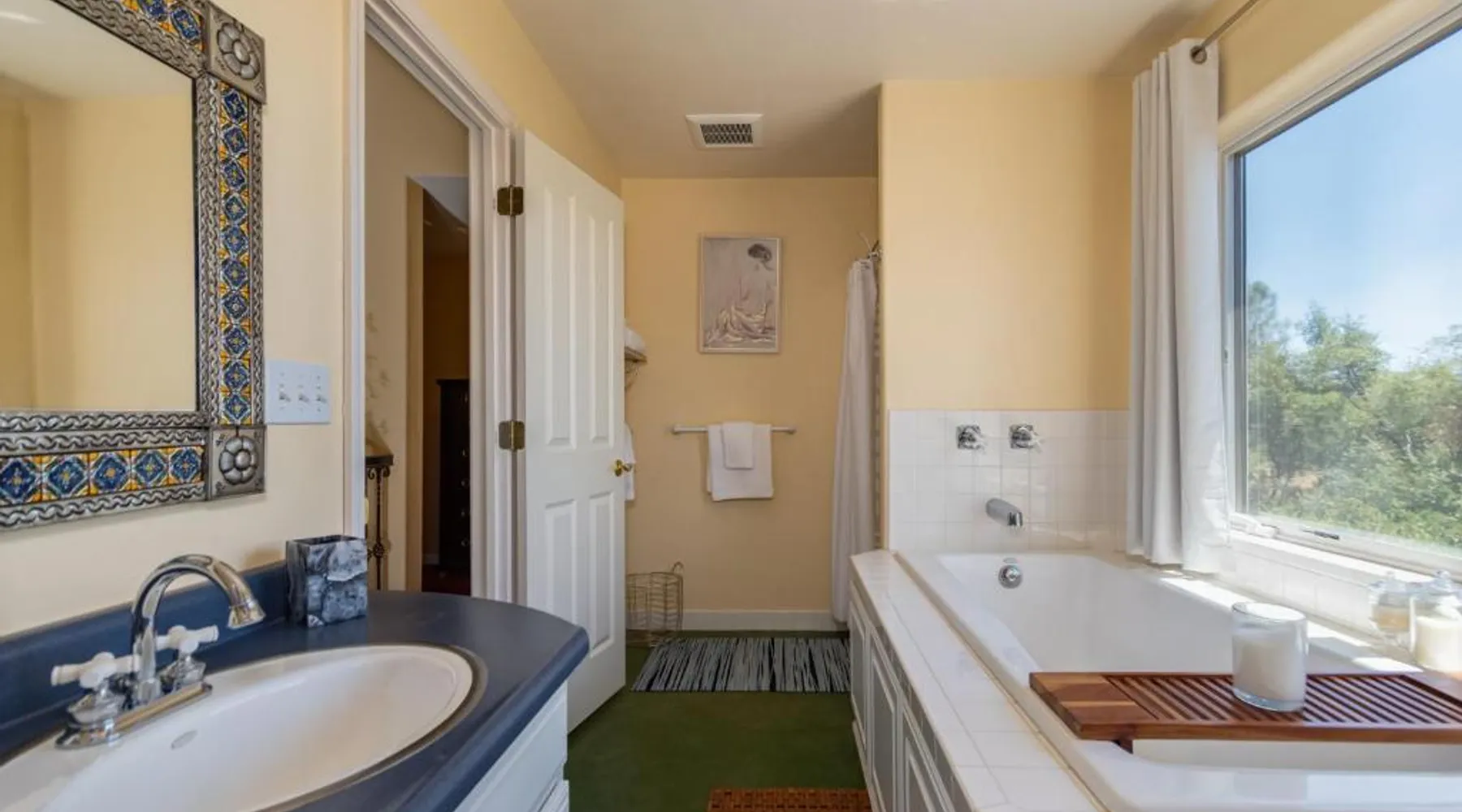 Spacious Accommodations: La Conac in Murphys offers a spacious holiday home with four bedrooms and three bathrooms. The property features a private entrance and ample space for relaxation. Modern Amenities: Guests enjoy free WiFi, a games room, and free on-site private parking. The fully equipped kitchen includes a refrigerator, microwave, dishwasher, oven, stovetop, toaster, and kitchenware. Additional amenities include a washing machine, fireplace, barbecue, dining table, outdoor furniture, and a TV. Local Activities: La Conac is ideal for skiing and cycling enthusiasts. Stockton Metropolitan Airport is located 60 mi away, providing convenient travel options. This holiday home provides a fireplace. Featuring a private entrance, this spacious holiday home also consists of 4 separate bedrooms and 3 bathrooms with a hairdryer. Guests will find a stovetop, a refrigerator, a dishwasher and kitchenware in the kitchen. The holiday home also provides guests with a barbecue. This holiday home features a washing machine, a tea and coffee maker, a TV and outdoor furniture. The unit offers 5 beds.
