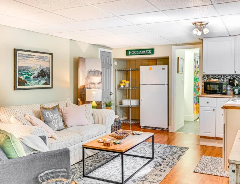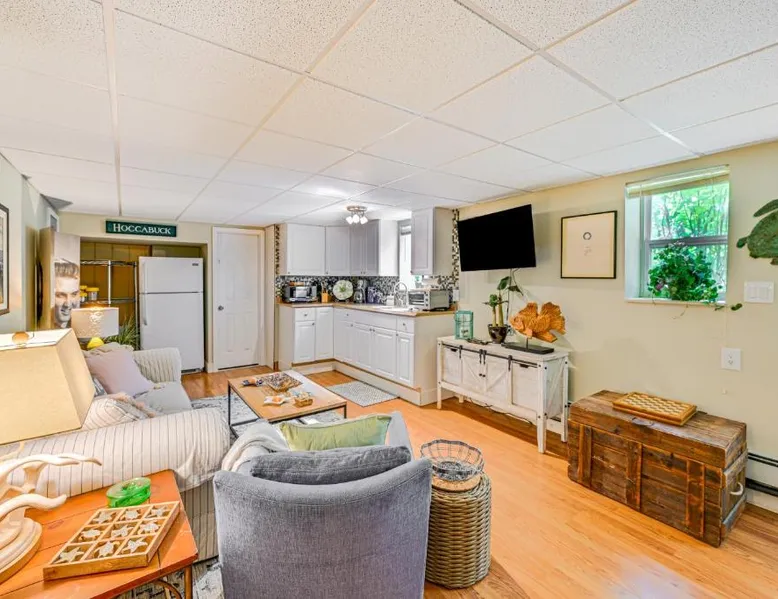 Comfortable Living Space: The apartment features one bedroom, a living room, and a bathroom. Guests enjoy air-conditioning, a private pool, and a hot tub. The kitchen is equipped with modern appliances, including a refrigerator, microwave, and coffee machine. Convenient Amenities: Free WiFi is available throughout the property. Additional amenities include a work desk, dining table, and wardrobe. The apartment offers a private entrance and a barbecue area for outdoor entertainment. Local Attractions: Splish Splash Water Park is located 6.2 mi away. Long Island MacArthur Airport is 28 mi from the property. The Hamptons are 25 mi distant, providing ample opportunities for relaxation and exploration. This apartment's special features are the private pool and the hot tub. Featuring a private entrance, this air-conditioned apartment is consisted of of 1 living room, 1 separate bedroom and 1 bathroom with a bath and a hairdryer. Guests can make meals in the kitchen that comes with a refrigerator, kitchenware, a microwave and a toaster. The apartment offers a tea and coffee maker, a wardrobe, a barbecue, heating, as well as a flat-screen TV with cable channels. The unit offers 2 beds.