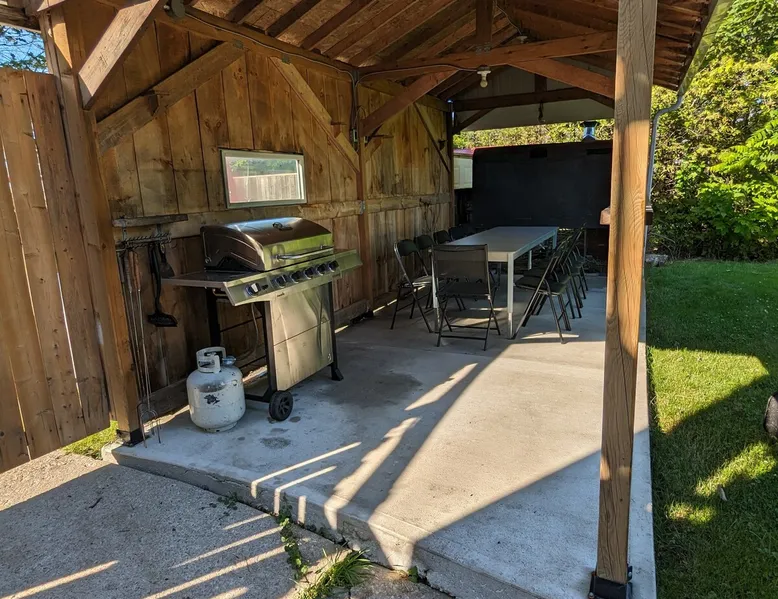 This 3 bedroom cottage has modern upgrades but still having that cottage feeling. All beds are comfortable aswell as the baby crib. hot tub. Fire pit in the back yard. Front and back deck with a BBQ. Lots of parking. Plenty of grass space for activities and sports. There is a basketball net and 2 hockey nets. Beach is only 7 min away. The cottage has a standby generator system that will automatically turn on and off. Hot tub is open all year round The space Top floor has a big balcony that over looks the livingroom. Also a long balcony on the second floor that's lets you enjoying the full view of the back yard. Rooms are fair size. The single bed in the livingroom is a cot. Guest access No access to a main floor bedroom and garage. Both will be locked. All rooms shown in the listing are available. You get the hot tub to yourself. Other things to note The cottage has security cameras on the perimeter. Bring bug spray as they do come out at night. We provide propane and a spare in case you run out.