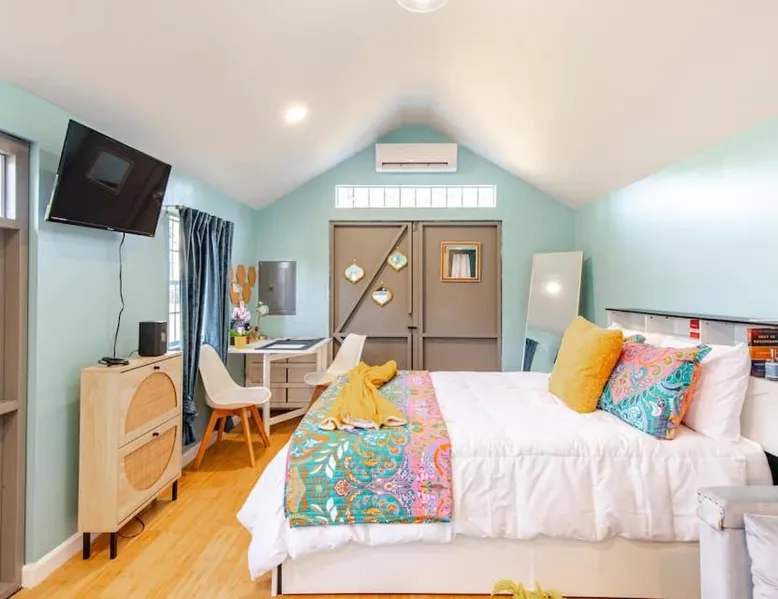 Modern Comforts: The Nia House in Atlanta offers a recently renovated apartment with one bedroom and one bathroom. Guests enjoy air-conditioning, a kitchenette, and free WiFi. Outdoor Spaces: A private garden provides relaxing outdoor areas, while the inner courtyard offers additional greenery. An outdoor dining area enhances the serene environment. Convenient Amenities: The apartment features a work desk, streaming services, and a dining table. Free on-site private parking is available, along with free toiletries and a fully equipped kitchen. Prime Location: Located 7.5 mi from Hartsfield–Jackson Atlanta International Airport, The Nia House is near attractions such as Mercedes-Benz Stadium (2.8 mi) and Georgia Aquarium (3.7 mi). Highly rated by guests. Boasting a private entrance, this air-conditioned apartment features a kitchenette, 1 bedroom and 1 bathroom with a shower and slippers. Meals can be prepared in the kitchenette, which features a stovetop, a refrigerator, kitchenware and a microwave. The apartment features a flat-screen TV with streaming services, a tea and coffee maker, a dining area, a wardrobe as well as garden views. The unit has 1 bed.