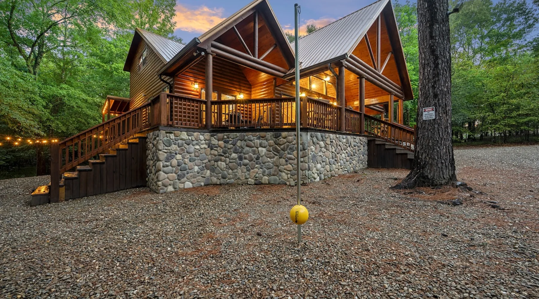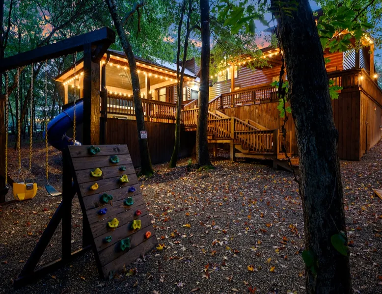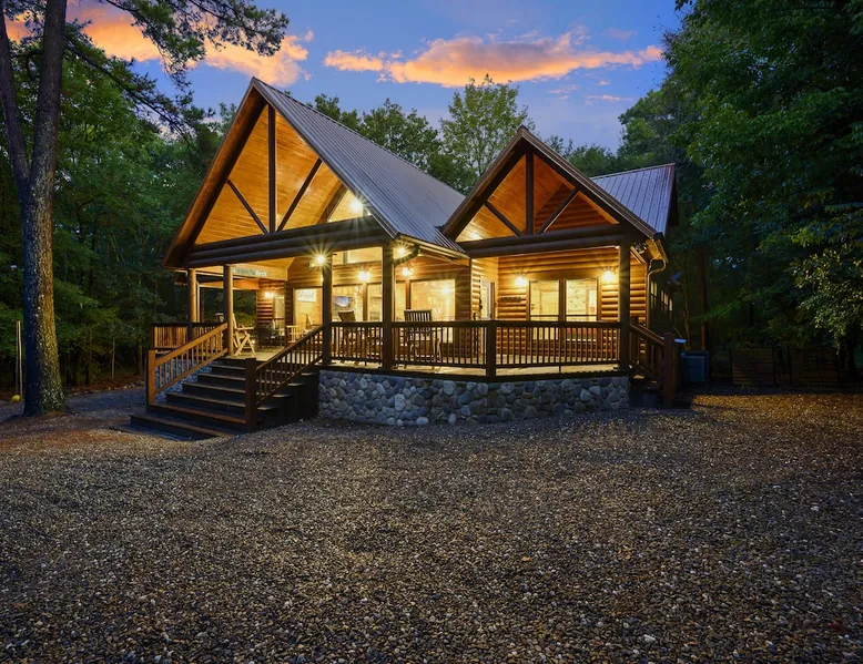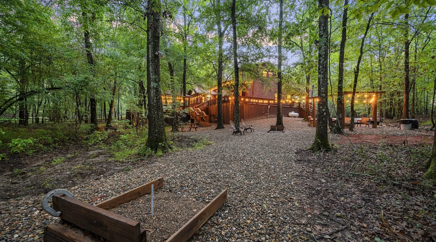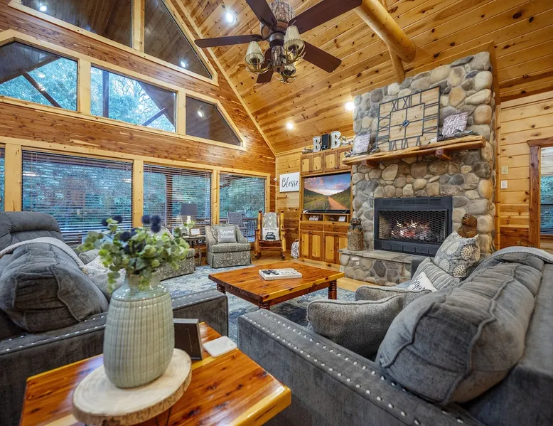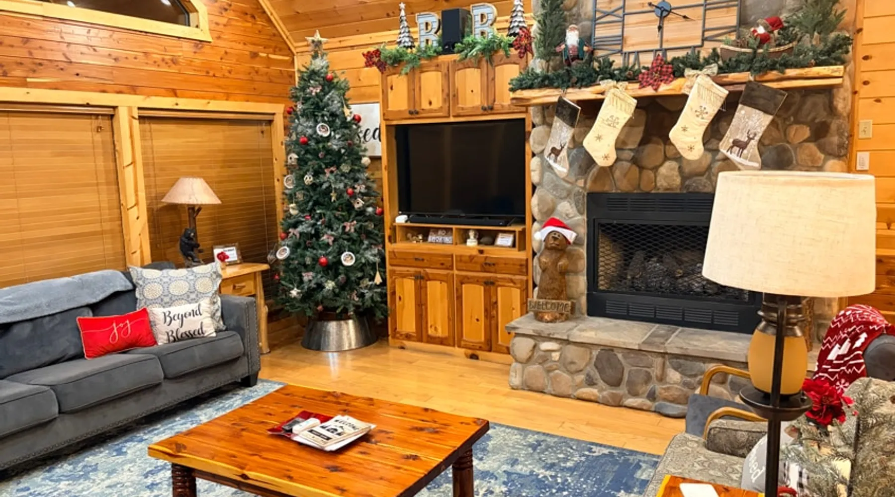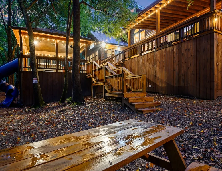 🏡 Welcome to Beyond Blessed Beyond Blessed is a beautifully designed luxury cabin where relaxation, adventure, and quality time come together in perfect harmony. Conveniently located in the heart of Hochatown, this retreat offers everything you need for a truly unforgettable stay—from modern indoor comforts to outdoor fun for all ages. The space 🛋️ Living Room A cozy space for relaxation and entertainment: Large Sectional A recliner for added comfort Two accent chairs and a wooden rocking chair Big-screen TV & gas fireplace 🍽️ Kitchen & Dining Everything you need for cooking in: Fully equipped kitchen with modern appliances Dining table for 6 with additional seating for 4 at the kitchen island Cookware, bakeware, dishes, utensils, grilling tools Coffee bar with both a regular drip pot and a Keurig K-Cup machine 🛏️ Sleeping Arrangement Spacious and comfortable for group stays: 5 King Bedrooms with plush beds 2 Ensuite Bathrooms for added privacy Jack & Jill Bathroom shared between two king rooms 🌳 Outdoor Living Endless outdoor amenities for every guest: Hot tub under the stars Gas Grill (hard-lined to the main tank of the property) Fire pit swing area with lights – perfect for evening gatherings Covered deck with Smart TV, propane grill, and lounge seating Porch swings for peaceful morning coffee Slide off the back deck – fun for kids and adults alike Swing set to entertain the little ones Creekside walkway & bench for tranquil forest moments Outdoor Games Include: Corn hole Horseshoes Tetherball Giant Jenga 🚗 Convenience & Comfort Spacious driveway – plenty of parking for vehicles, boats, or ATVs Hassle-free check-in & check-out for a seamless stay 🐾 Pet Friendly 1 dog under 50 lbs. (dogs only) $125 pet fee applies 📌 Additional Info Full-size washer & dryer Seasonal fireplaces: Available Oct–May 15 Surveillance: Exterior cameras face entrances only, monitored at check-in for occupancy compliance Free Wi-Fi Refund policy: 6% processing fee on applicable refunds Max occupancy: 12 guests – NO EXCEPTIONS Guest access Guest has access to entire cabin Other things to note It is located near all the best restaurants, activities, and park amenities. It is just a short drive to Broken Bow Lake, Beavers Bend State Park, popular hiking trails, restaurants, breweries, wineries, and downtown Hochatown, and access to all the outdoors activities you want – boating, hiking, fly-fishing, kayaking, zip-lining, ATV trails, horseback riding, Cedar Creek Golf Course, Choctaw Landing Casino, mini-golf, helicopter rides, mining for gold, train rides, go-carts, and a great petting zoo. Don’t forget these items when you come to visit: • Rain gear and light jackets (Our average rainfall is 55″-60″ each year). • We have beautiful scenic trails; good hiking boots are a must. • Water shoes for our vast shorelines and streams. • Insect repellent, sunblock, and other first-aid supplies. • Coffee and filters – enjoy this while sitting on the deck in the early morning. • Condiments --A starter supply of coffee/filters, salt/pepper, paper towels, toilet paper, bath soap, dish soap, dishwasher tablets, trash bags, and laundry soap is provided. Still, guests may need to bring additional supplies. If we are missing something or you have a question we haven't answered, please feel free to reach out to us directly at Bravo Cabin Rentals and we will personally respond as soon as possible. We look forward to making your next vacation in Broken Bow/Hochatown one you won’t forget!