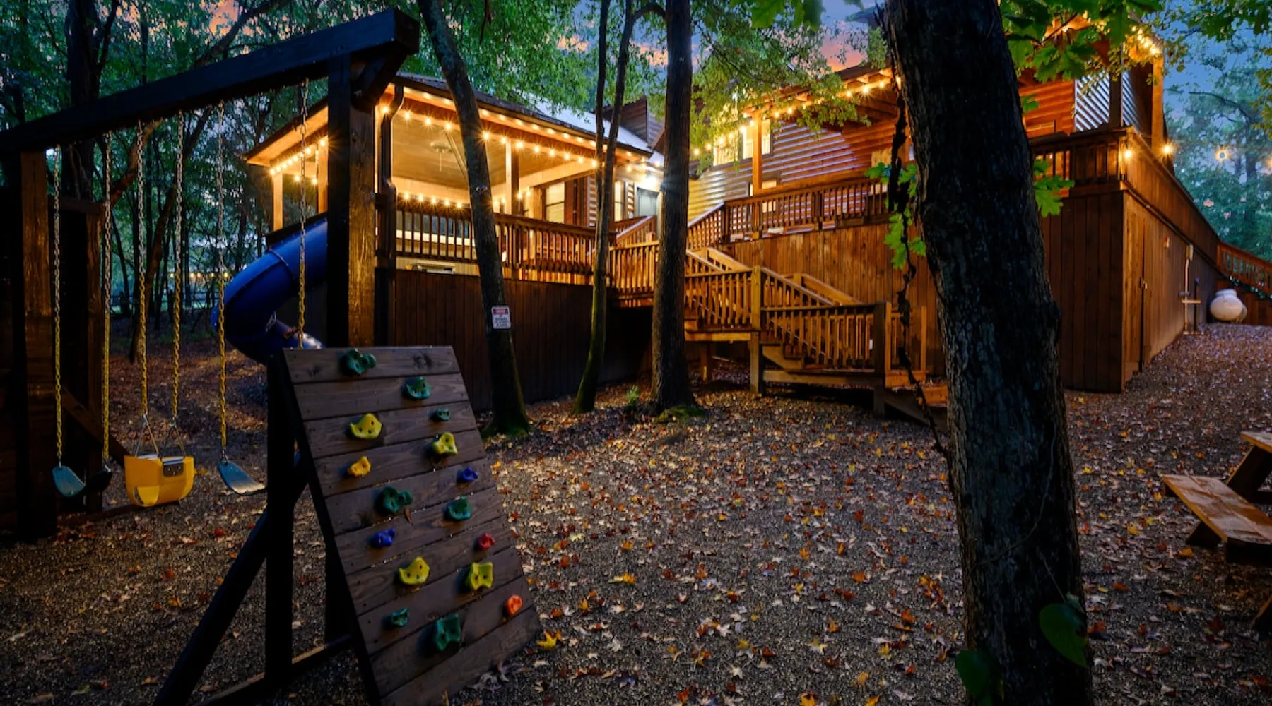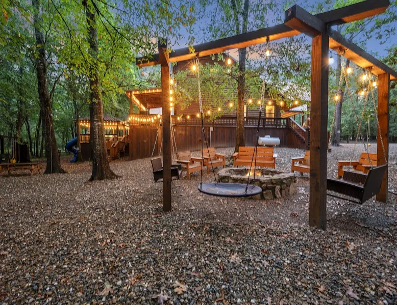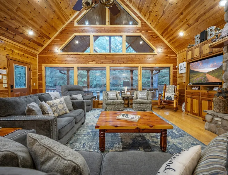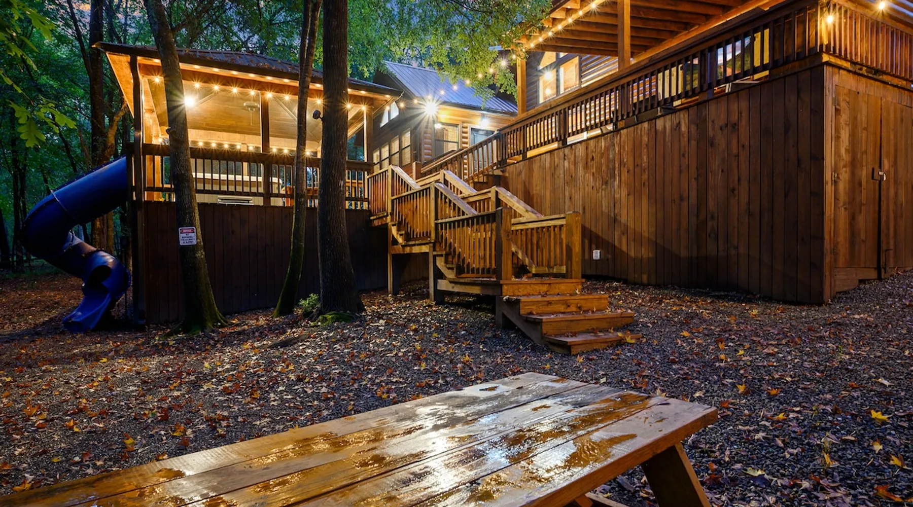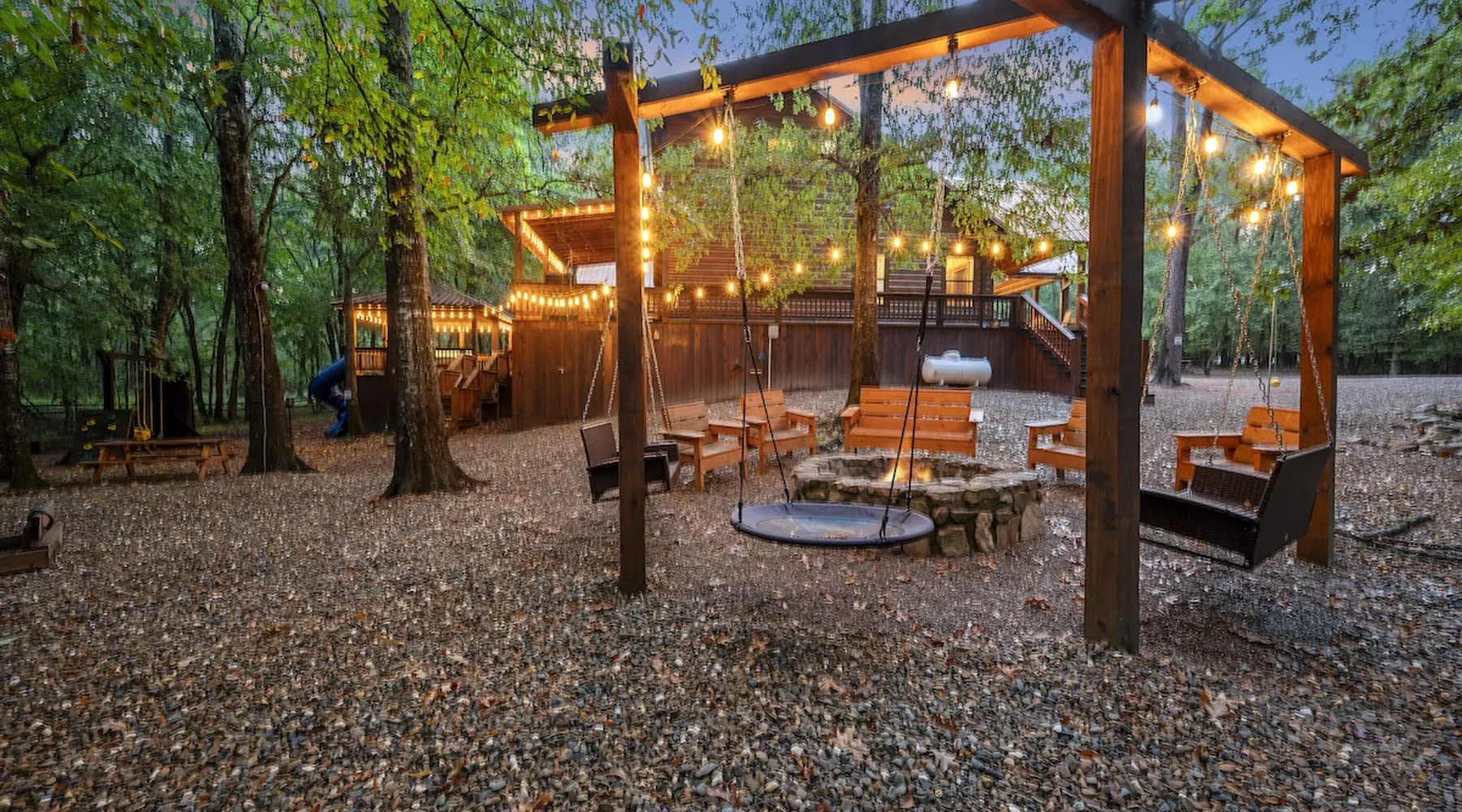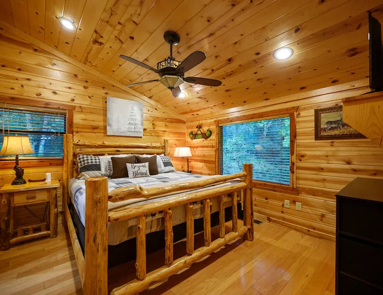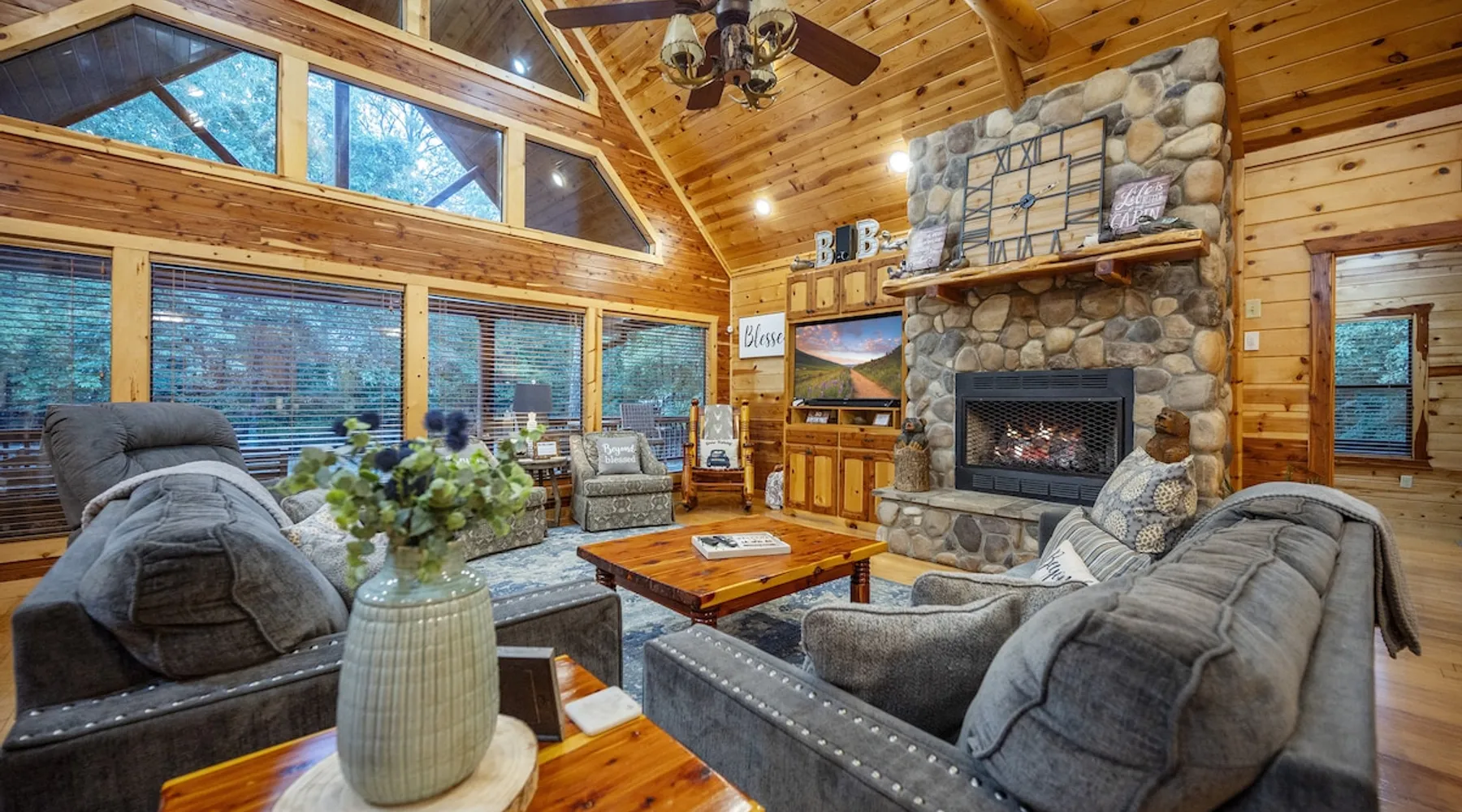 🏡 Welcome to Beyond Blessed Beyond Blessed is a beautifully designed luxury cabin where relaxation, adventure, and quality time come together in perfect harmony. Conveniently located in the heart of Hochatown, this retreat offers everything you need for a truly unforgettable stay—from modern indoor comforts to outdoor fun for all ages. The space 🛋️ Living Room A cozy space for relaxation and entertainment: Large Sectional A recliner for added comfort Two accent chairs and a wooden rocking chair Big-screen TV & gas fireplace 🍽️ Kitchen & Dining Everything you need for cooking in: Fully equipped kitchen with modern appliances Dining table for 6 with additional seating for 4 at the kitchen island Cookware, bakeware, dishes, utensils, grilling tools Coffee bar with both a regular drip pot and a Keurig K-Cup machine 🛏️ Sleeping Arrangement Spacious and comfortable for group stays: 5 King Bedrooms with plush beds 2 Ensuite Bathrooms for added privacy Jack & Jill Bathroom shared between two king rooms 🌳 Outdoor Living Endless outdoor amenities for every guest: Hot tub under the stars Gas Grill (hard-lined to the main tank of the property) Fire pit swing area with lights – perfect for evening gatherings Covered deck with Smart TV, propane grill, and lounge seating Porch swings for peaceful morning coffee Slide off the back deck – fun for kids and adults alike Swing set to entertain the little ones Creekside walkway & bench for tranquil forest moments Outdoor Games Include: Corn hole Horseshoes Tetherball Giant Jenga 🚗 Convenience & Comfort Spacious driveway – plenty of parking for vehicles, boats, or ATVs Hassle-free check-in & check-out for a seamless stay 🐾 Pet Friendly 1 dog under 50 lbs. (dogs only) $125 pet fee applies 📌 Additional Info Full-size washer & dryer Seasonal fireplaces: Available Oct–May 15 Surveillance: Exterior cameras face entrances only, monitored at check-in for occupancy compliance Free Wi-Fi Refund policy: 6% processing fee on applicable refunds Max occupancy: 12 guests – NO EXCEPTIONS Guest access Guest has access to entire cabin Other things to note It is located near all the best restaurants, activities, and park amenities. It is just a short drive to Broken Bow Lake, Beavers Bend State Park, popular hiking trails, restaurants, breweries, wineries, and downtown Hochatown, and access to all the outdoors activities you want – boating, hiking, fly-fishing, kayaking, zip-lining, ATV trails, horseback riding, Cedar Creek Golf Course, Choctaw Landing Casino, mini-golf, helicopter rides, mining for gold, train rides, go-carts, and a great petting zoo. Don’t forget these items when you come to visit: • Rain gear and light jackets (Our average rainfall is 55″-60″ each year). • We have beautiful scenic trails; good hiking boots are a must. • Water shoes for our vast shorelines and streams. • Insect repellent, sunblock, and other first-aid supplies. • Coffee and filters – enjoy this while sitting on the deck in the early morning. • Condiments --A starter supply of coffee/filters, salt/pepper, paper towels, toilet paper, bath soap, dish soap, dishwasher tablets, trash bags, and laundry soap is provided. Still, guests may need to bring additional supplies. If we are missing something or you have a question we haven't answered, please feel free to reach out to us directly at Bravo Cabin Rentals and we will personally respond as soon as possible. We look forward to making your next vacation in Broken Bow/Hochatown one you won’t forget!