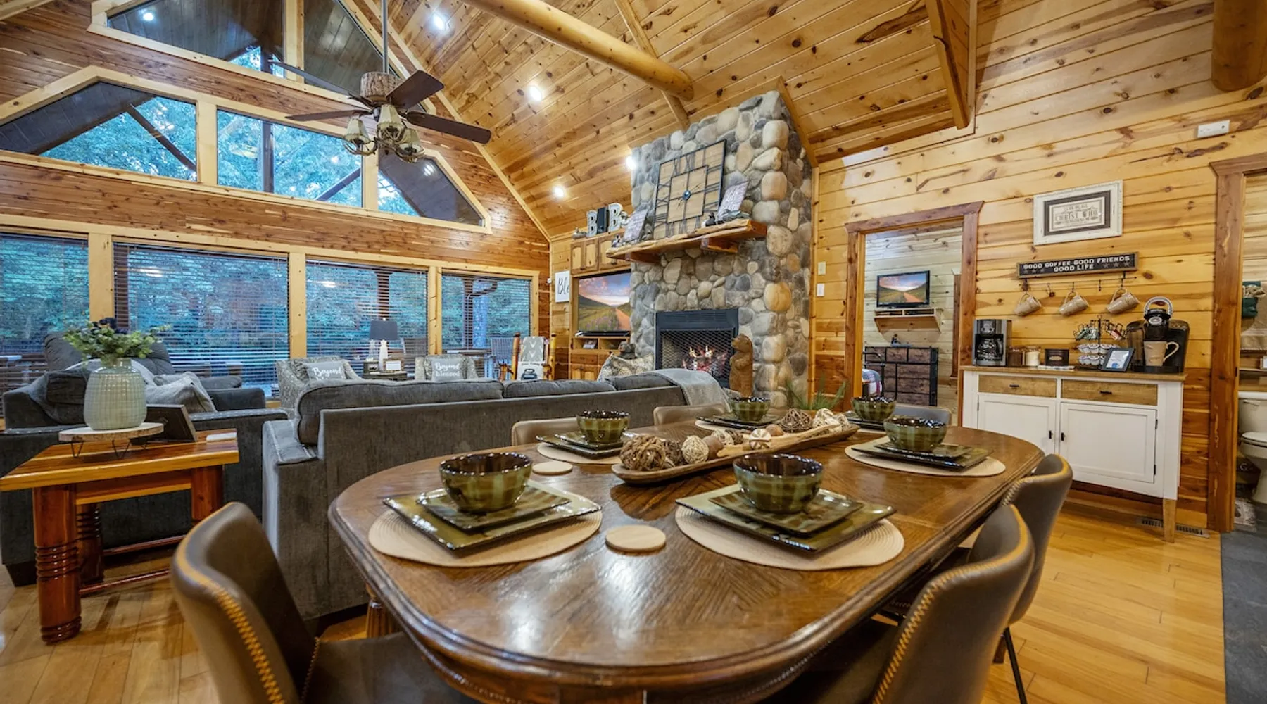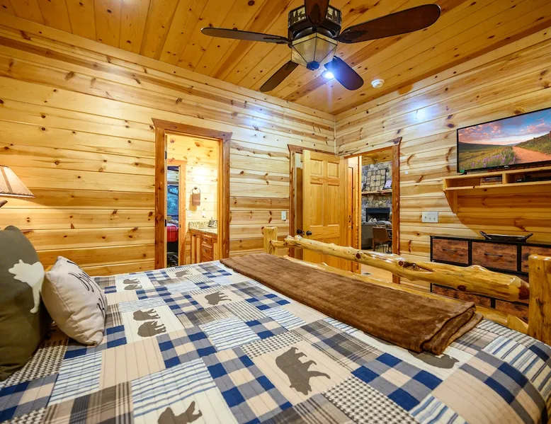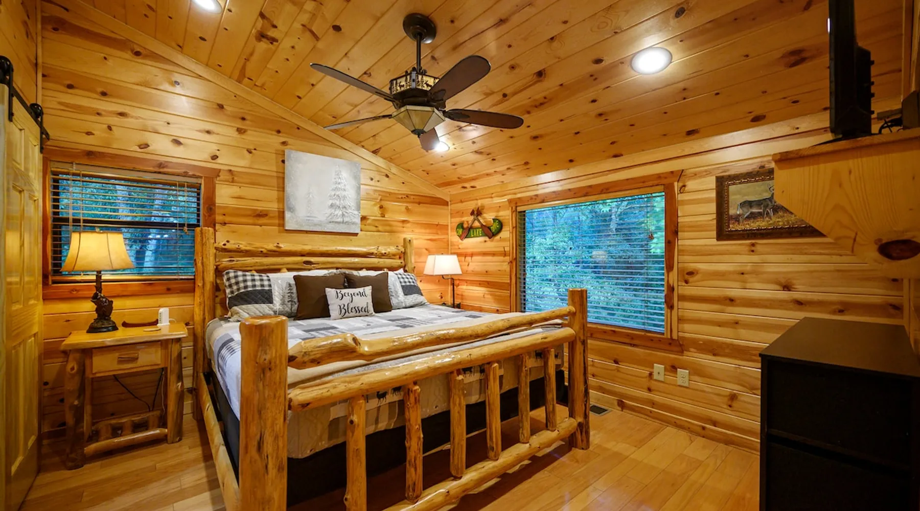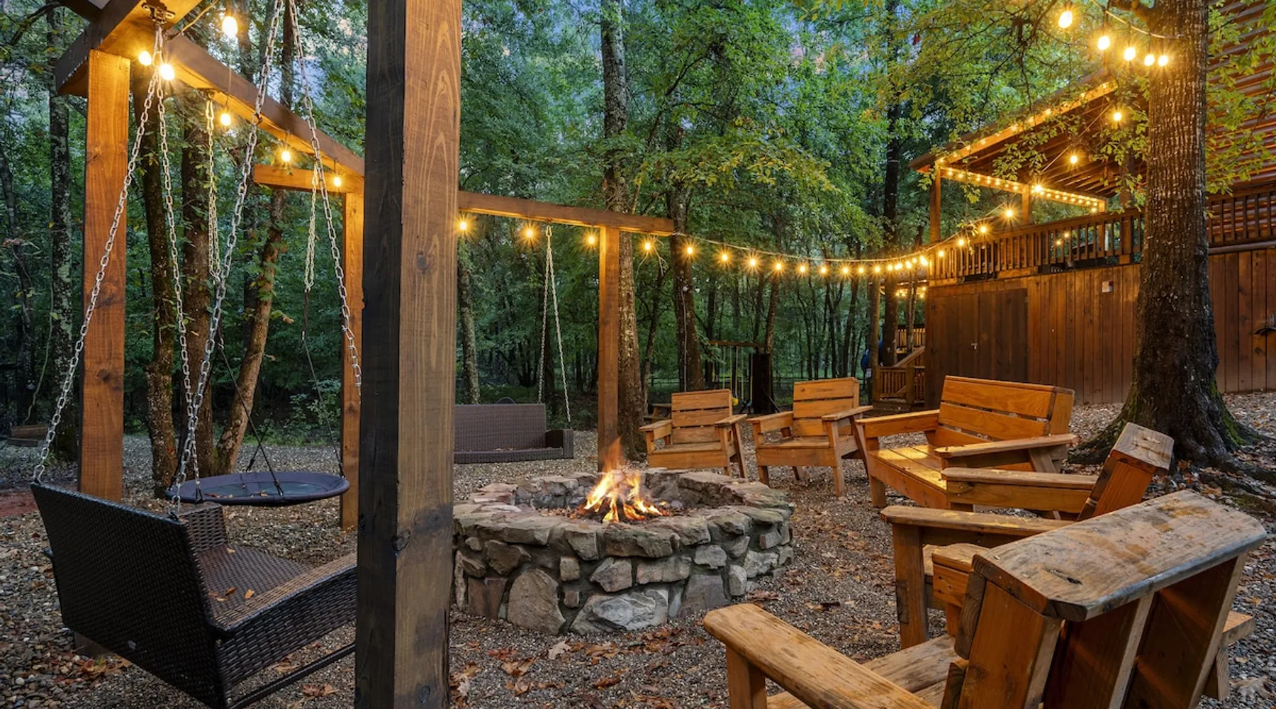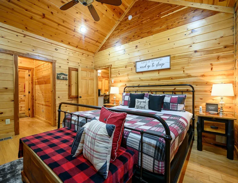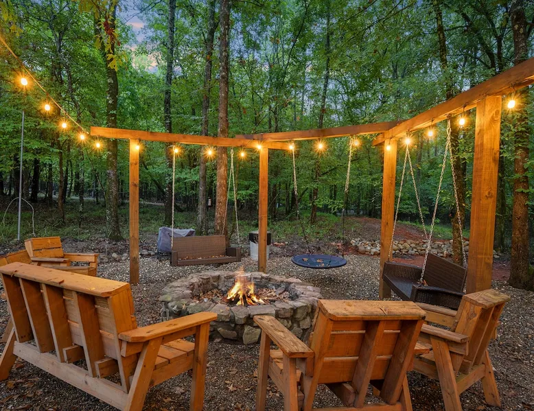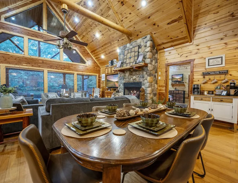 🏡 Welcome to Beyond Blessed Beyond Blessed is a beautifully designed luxury cabin where relaxation, adventure, and quality time come together in perfect harmony. Conveniently located in the heart of Hochatown, this retreat offers everything you need for a truly unforgettable stay—from modern indoor comforts to outdoor fun for all ages. The space 🛋️ Living Room A cozy space for relaxation and entertainment: Large Sectional A recliner for added comfort Two accent chairs and a wooden rocking chair Big-screen TV & gas fireplace 🍽️ Kitchen & Dining Everything you need for cooking in: Fully equipped kitchen with modern appliances Dining table for 6 with additional seating for 4 at the kitchen island Cookware, bakeware, dishes, utensils, grilling tools Coffee bar with both a regular drip pot and a Keurig K-Cup machine 🛏️ Sleeping Arrangement Spacious and comfortable for group stays: 5 King Bedrooms with plush beds 2 Ensuite Bathrooms for added privacy Jack & Jill Bathroom shared between two king rooms 🌳 Outdoor Living Endless outdoor amenities for every guest: Hot tub under the stars Gas Grill (hard-lined to the main tank of the property) Fire pit swing area with lights – perfect for evening gatherings Covered deck with Smart TV, propane grill, and lounge seating Porch swings for peaceful morning coffee Slide off the back deck – fun for kids and adults alike Swing set to entertain the little ones Creekside walkway & bench for tranquil forest moments Outdoor Games Include: Corn hole Horseshoes Tetherball Giant Jenga 🚗 Convenience & Comfort Spacious driveway – plenty of parking for vehicles, boats, or ATVs Hassle-free check-in & check-out for a seamless stay 🐾 Pet Friendly 1 dog under 50 lbs. (dogs only) $125 pet fee applies 📌 Additional Info Full-size washer & dryer Seasonal fireplaces: Available Oct–May 15 Surveillance: Exterior cameras face entrances only, monitored at check-in for occupancy compliance Free Wi-Fi Refund policy: 6% processing fee on applicable refunds Max occupancy: 12 guests – NO EXCEPTIONS Guest access Guest has access to entire cabin Other things to note It is located near all the best restaurants, activities, and park amenities. It is just a short drive to Broken Bow Lake, Beavers Bend State Park, popular hiking trails, restaurants, breweries, wineries, and downtown Hochatown, and access to all the outdoors activities you want – boating, hiking, fly-fishing, kayaking, zip-lining, ATV trails, horseback riding, Cedar Creek Golf Course, Choctaw Landing Casino, mini-golf, helicopter rides, mining for gold, train rides, go-carts, and a great petting zoo. Don’t forget these items when you come to visit: • Rain gear and light jackets (Our average rainfall is 55″-60″ each year). • We have beautiful scenic trails; good hiking boots are a must. • Water shoes for our vast shorelines and streams. • Insect repellent, sunblock, and other first-aid supplies. • Coffee and filters – enjoy this while sitting on the deck in the early morning. • Condiments --A starter supply of coffee/filters, salt/pepper, paper towels, toilet paper, bath soap, dish soap, dishwasher tablets, trash bags, and laundry soap is provided. Still, guests may need to bring additional supplies. If we are missing something or you have a question we haven't answered, please feel free to reach out to us directly at Bravo Cabin Rentals and we will personally respond as soon as possible. We look forward to making your next vacation in Broken Bow/Hochatown one you won’t forget!