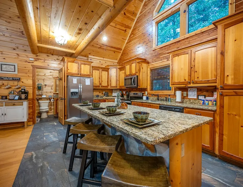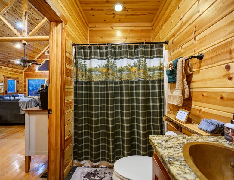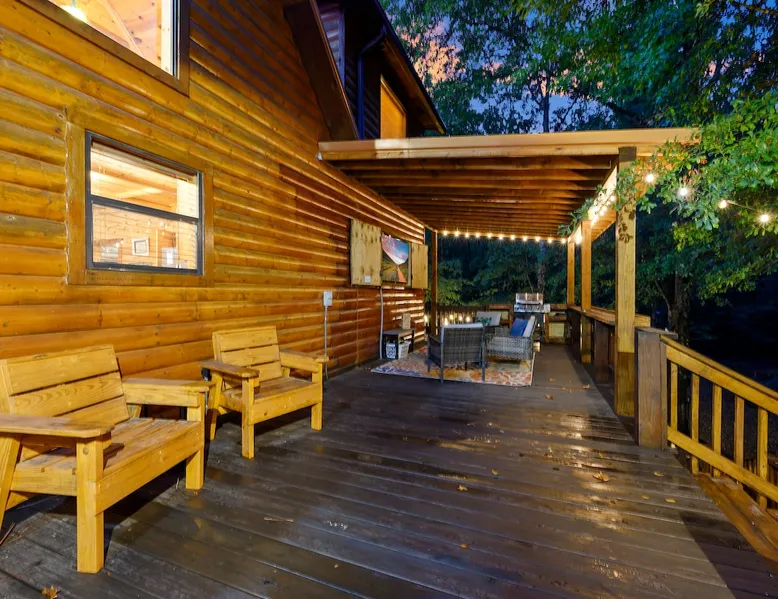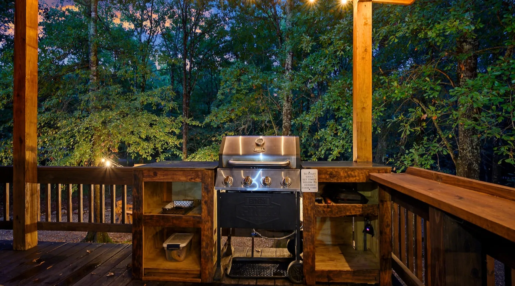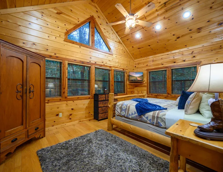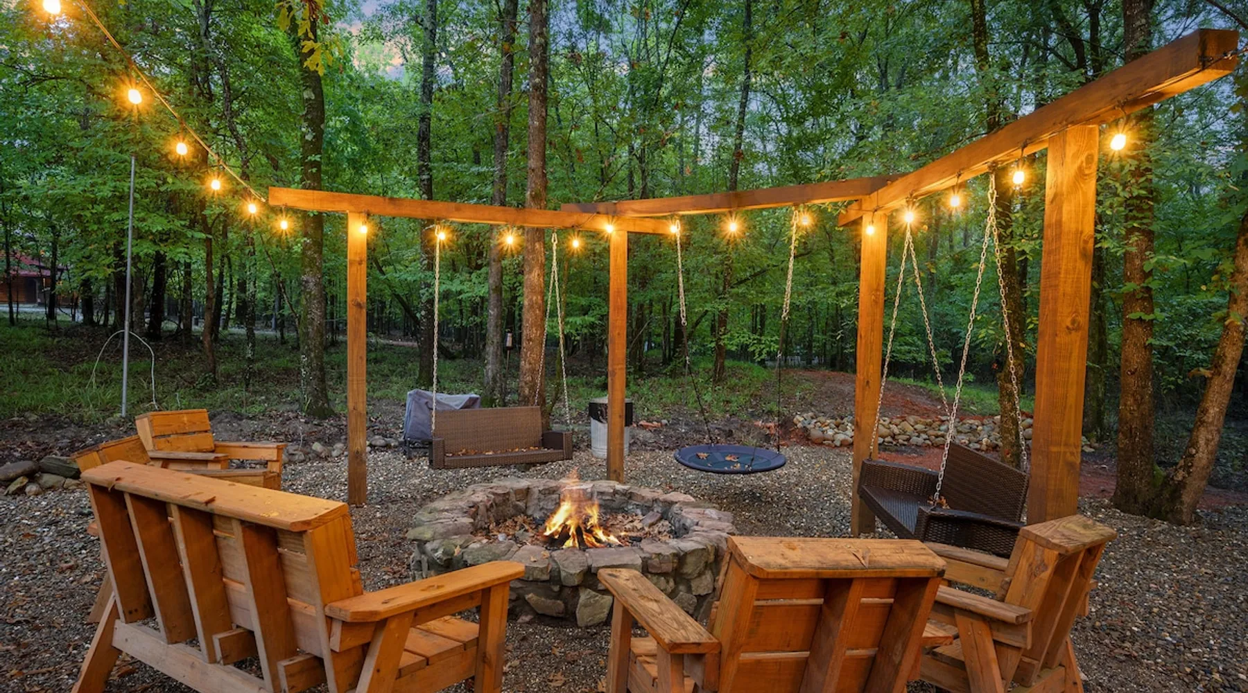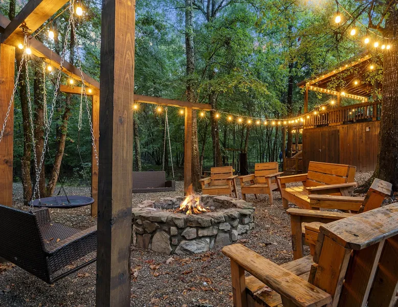 🏡 Welcome to Beyond Blessed Beyond Blessed is a beautifully designed luxury cabin where relaxation, adventure, and quality time come together in perfect harmony. Conveniently located in the heart of Hochatown, this retreat offers everything you need for a truly unforgettable stay—from modern indoor comforts to outdoor fun for all ages. The space 🛋️ Living Room A cozy space for relaxation and entertainment: Large Sectional A recliner for added comfort Two accent chairs and a wooden rocking chair Big-screen TV & gas fireplace 🍽️ Kitchen & Dining Everything you need for cooking in: Fully equipped kitchen with modern appliances Dining table for 6 with additional seating for 4 at the kitchen island Cookware, bakeware, dishes, utensils, grilling tools Coffee bar with both a regular drip pot and a Keurig K-Cup machine 🛏️ Sleeping Arrangement Spacious and comfortable for group stays: 5 King Bedrooms with plush beds 2 Ensuite Bathrooms for added privacy Jack & Jill Bathroom shared between two king rooms 🌳 Outdoor Living Endless outdoor amenities for every guest: Hot tub under the stars Gas Grill (hard-lined to the main tank of the property) Fire pit swing area with lights – perfect for evening gatherings Covered deck with Smart TV, propane grill, and lounge seating Porch swings for peaceful morning coffee Slide off the back deck – fun for kids and adults alike Swing set to entertain the little ones Creekside walkway & bench for tranquil forest moments Outdoor Games Include: Corn hole Horseshoes Tetherball Giant Jenga 🚗 Convenience & Comfort Spacious driveway – plenty of parking for vehicles, boats, or ATVs Hassle-free check-in & check-out for a seamless stay 🐾 Pet Friendly 1 dog under 50 lbs. (dogs only) $125 pet fee applies 📌 Additional Info Full-size washer & dryer Seasonal fireplaces: Available Oct–May 15 Surveillance: Exterior cameras face entrances only, monitored at check-in for occupancy compliance Free Wi-Fi Refund policy: 6% processing fee on applicable refunds Max occupancy: 12 guests – NO EXCEPTIONS Guest access Guest has access to entire cabin Other things to note It is located near all the best restaurants, activities, and park amenities. It is just a short drive to Broken Bow Lake, Beavers Bend State Park, popular hiking trails, restaurants, breweries, wineries, and downtown Hochatown, and access to all the outdoors activities you want – boating, hiking, fly-fishing, kayaking, zip-lining, ATV trails, horseback riding, Cedar Creek Golf Course, Choctaw Landing Casino, mini-golf, helicopter rides, mining for gold, train rides, go-carts, and a great petting zoo. Don’t forget these items when you come to visit: • Rain gear and light jackets (Our average rainfall is 55″-60″ each year). • We have beautiful scenic trails; good hiking boots are a must. • Water shoes for our vast shorelines and streams. • Insect repellent, sunblock, and other first-aid supplies. • Coffee and filters – enjoy this while sitting on the deck in the early morning. • Condiments --A starter supply of coffee/filters, salt/pepper, paper towels, toilet paper, bath soap, dish soap, dishwasher tablets, trash bags, and laundry soap is provided. Still, guests may need to bring additional supplies. If we are missing something or you have a question we haven't answered, please feel free to reach out to us directly at Bravo Cabin Rentals and we will personally respond as soon as possible. We look forward to making your next vacation in Broken Bow/Hochatown one you won’t forget!