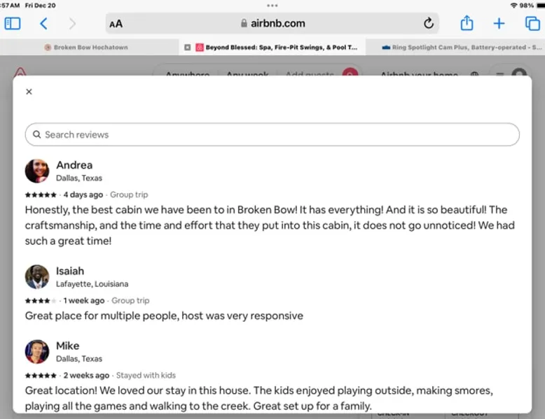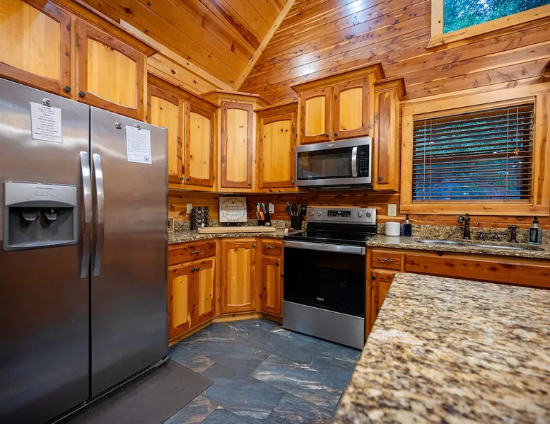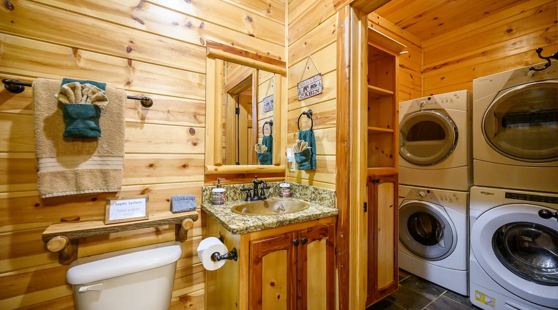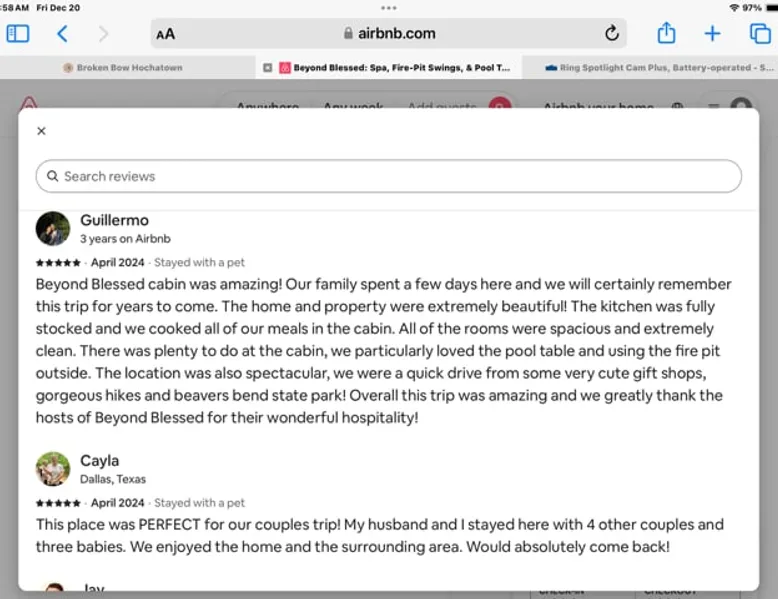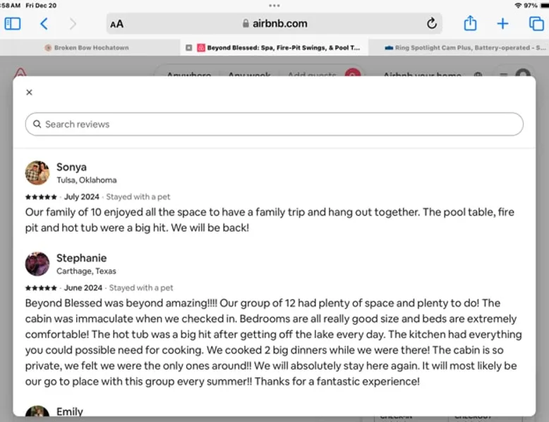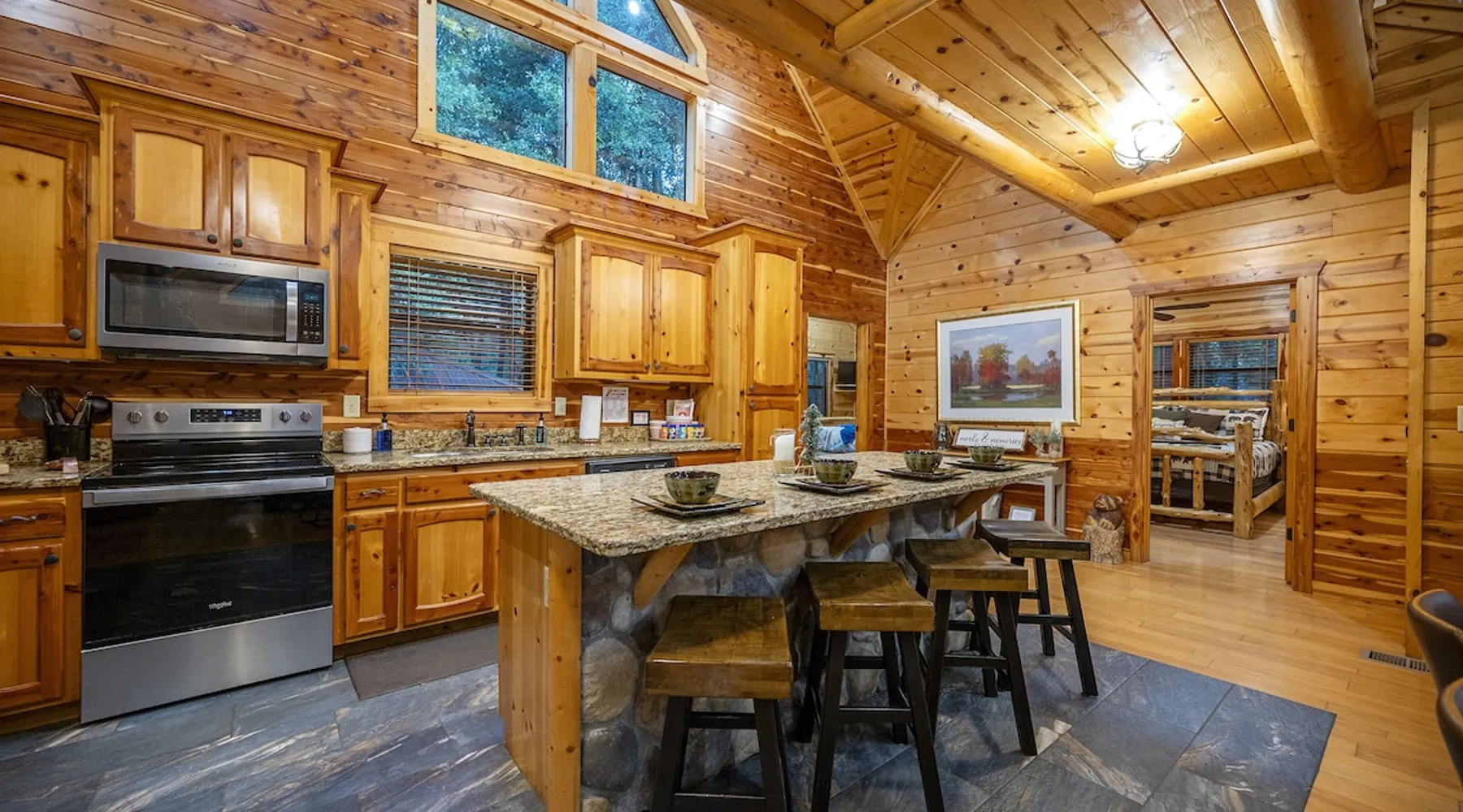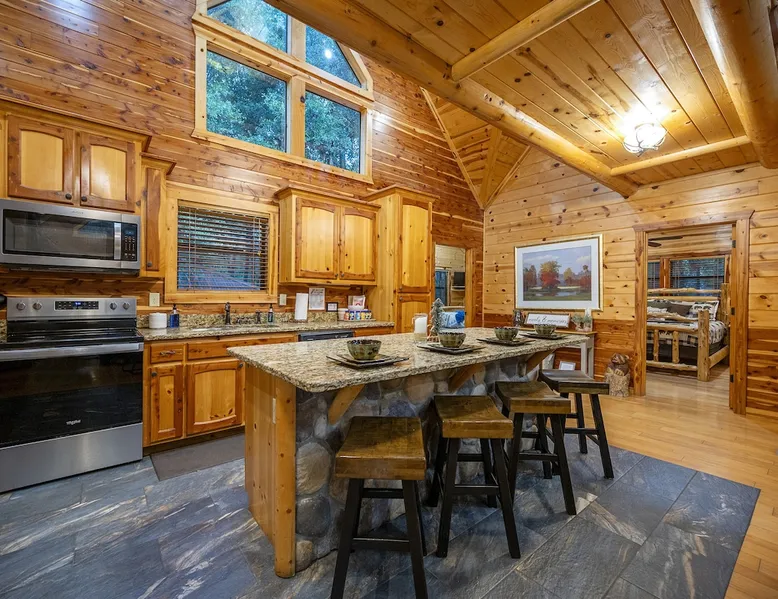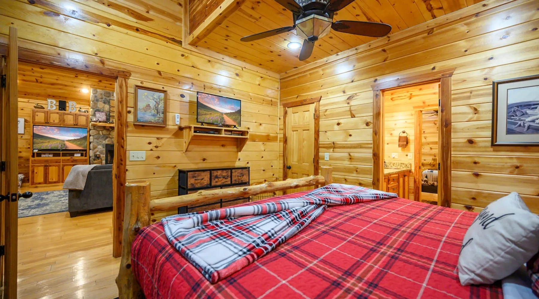🏡 Welcome to Beyond Blessed Beyond Blessed is a beautifully designed luxury cabin where relaxation, adventure, and quality time come together in perfect harmony. Conveniently located in the heart of Hochatown, this retreat offers everything you need for a truly unforgettable stay—from modern indoor comforts to outdoor fun for all ages. The space 🛋️ Living Room A cozy space for relaxation and entertainment: Large Sectional A recliner for added comfort Two accent chairs and a wooden rocking chair Big-screen TV & gas fireplace 🍽️ Kitchen & Dining Everything you need for cooking in: Fully equipped kitchen with modern appliances Dining table for 6 with additional seating for 4 at the kitchen island Cookware, bakeware, dishes, utensils, grilling tools Coffee bar with both a regular drip pot and a Keurig K-Cup machine 🛏️ Sleeping Arrangement Spacious and comfortable for group stays: 5 King Bedrooms with plush beds 2 Ensuite Bathrooms for added privacy Jack & Jill Bathroom shared between two king rooms 🌳 Outdoor Living Endless outdoor amenities for every guest: Hot tub under the stars Gas Grill (hard-lined to the main tank of the property) Fire pit swing area with lights – perfect for evening gatherings Covered deck with Smart TV, propane grill, and lounge seating Porch swings for peaceful morning coffee Slide off the back deck – fun for kids and adults alike Swing set to entertain the little ones Creekside walkway & bench for tranquil forest moments Outdoor Games Include: Corn hole Horseshoes Tetherball Giant Jenga 🚗 Convenience & Comfort Spacious driveway – plenty of parking for vehicles, boats, or ATVs Hassle-free check-in & check-out for a seamless stay 🐾 Pet Friendly 1 dog under 50 lbs. (dogs only) $125 pet fee applies 📌 Additional Info Full-size washer & dryer Seasonal fireplaces: Available Oct–May 15 Surveillance: Exterior cameras face entrances only, monitored at check-in for occupancy compliance Free Wi-Fi Refund policy: 6% processing fee on applicable refunds Max occupancy: 12 guests – NO EXCEPTIONS Guest access Guest has access to entire cabin Other things to note It is located near all the best restaurants, activities, and park amenities. It is just a short drive to Broken Bow Lake, Beavers Bend State Park, popular hiking trails, restaurants, breweries, wineries, and downtown Hochatown, and access to all the outdoors activities you want – boating, hiking, fly-fishing, kayaking, zip-lining, ATV trails, horseback riding, Cedar Creek Golf Course, Choctaw Landing Casino, mini-golf, helicopter rides, mining for gold, train rides, go-carts, and a great petting zoo. Don’t forget these items when you come to visit: • Rain gear and light jackets (Our average rainfall is 55″-60″ each year). • We have beautiful scenic trails; good hiking boots are a must. • Water shoes for our vast shorelines and streams. • Insect repellent, sunblock, and other first-aid supplies. • Coffee and filters – enjoy this while sitting on the deck in the early morning. • Condiments --A starter supply of coffee/filters, salt/pepper, paper towels, toilet paper, bath soap, dish soap, dishwasher tablets, trash bags, and laundry soap is provided. Still, guests may need to bring additional supplies. If we are missing something or you have a question we haven't answered, please feel free to reach out to us directly at Bravo Cabin Rentals and we will personally respond as soon as possible. We look forward to making your next vacation in Broken Bow/Hochatown one you won’t forget!