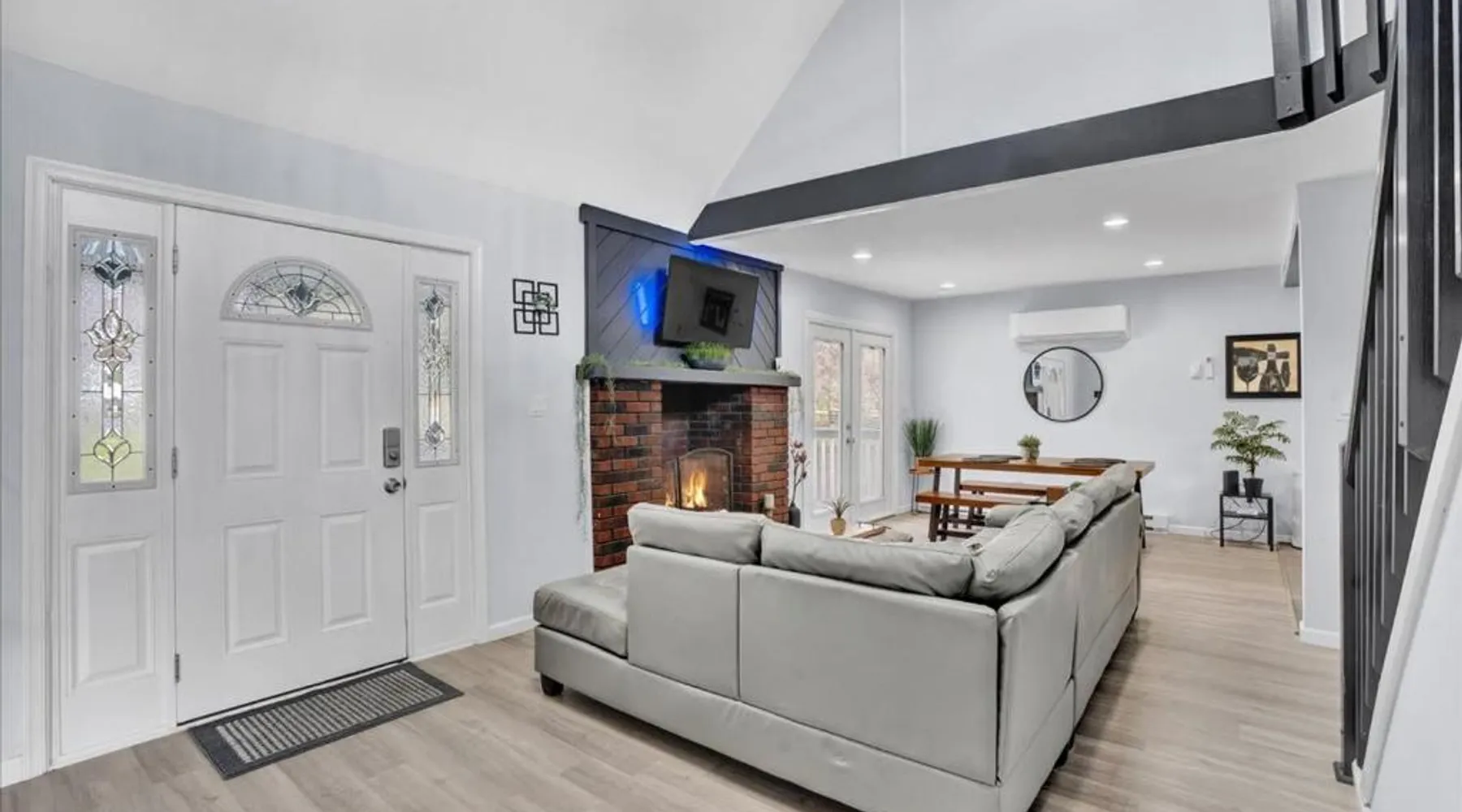 Spacious Holiday Home in Long Pond: Heart of Pocono Mtn 3bd 2ba Gameroom Pocono Raceway offers a spacious setting in Long Pond. The property features three bedrooms and two bathrooms, ensuring ample space for guests. Modern Amenities: Guests enjoy free WiFi, air-conditioning, and a fully equipped kitchen with a dishwasher and microwave. Additional amenities include a washing machine, patio, and a private entrance. Outdoor Spaces: The holiday home features a garden and provides lake and mountain views. A patio offers a relaxing outdoor area, perfect for unwinding. Nearby Attractions: Pocono Raceway is 5 mi away, while Delaware Water Gap National Recreation Area lies 24 mi from the property. Other attractions include Kalahari Waterpark (5.6 mi) and Jack Frost Mountain Resort (12 mi). Meals can be prepared in the kitchen, which has a stovetop, a refrigerator, a dishwasher and kitchenware. The spacious air-conditioned holiday home features a TV, a washing machine, a private entrance, a tea and coffee maker as well as lake views. The unit has 4 beds.