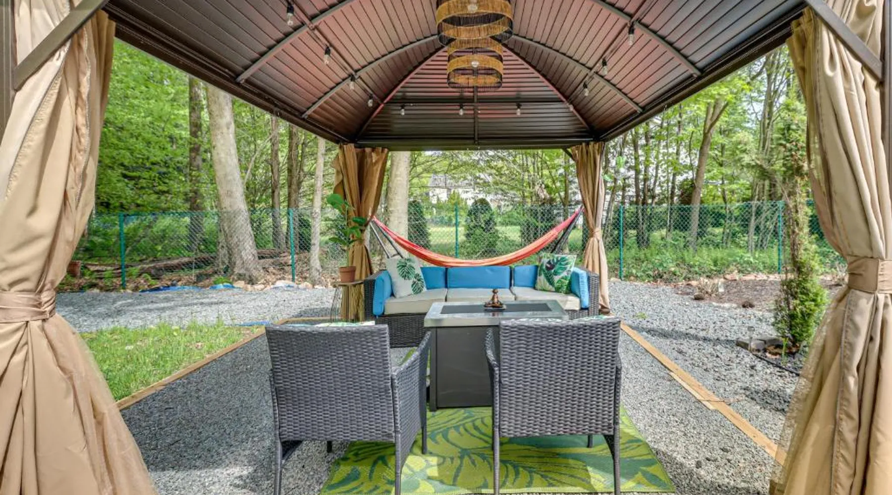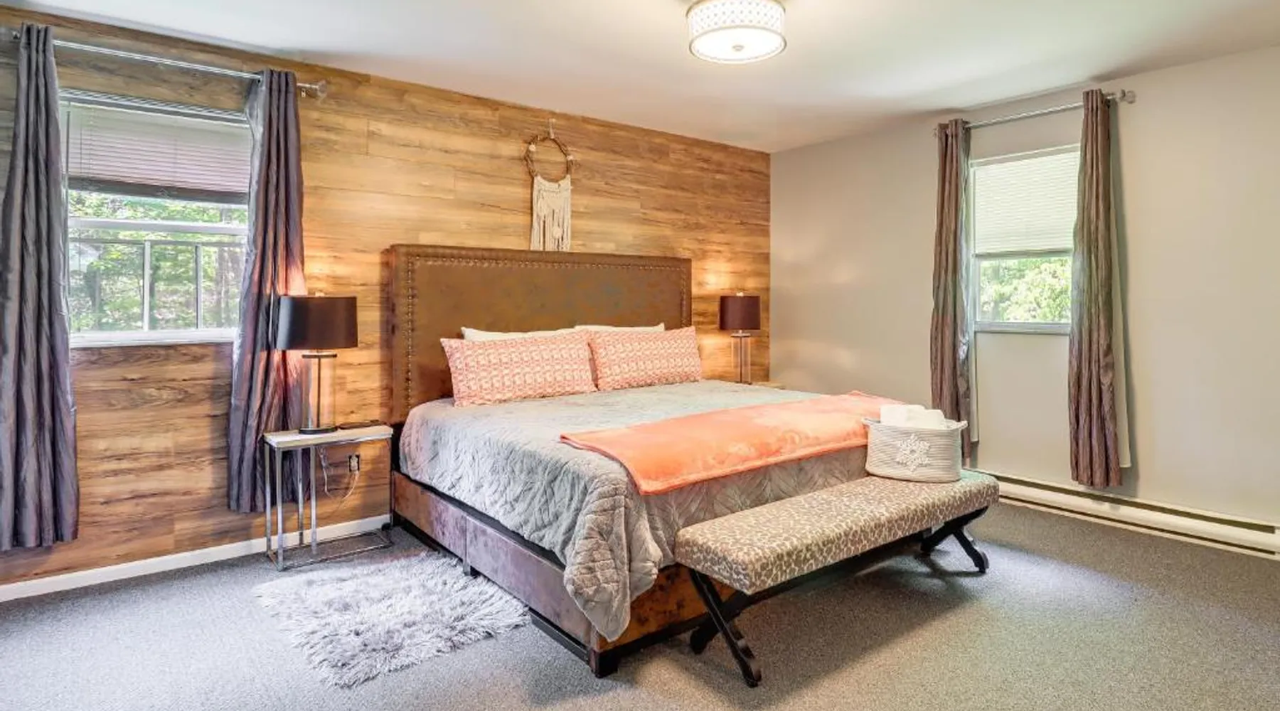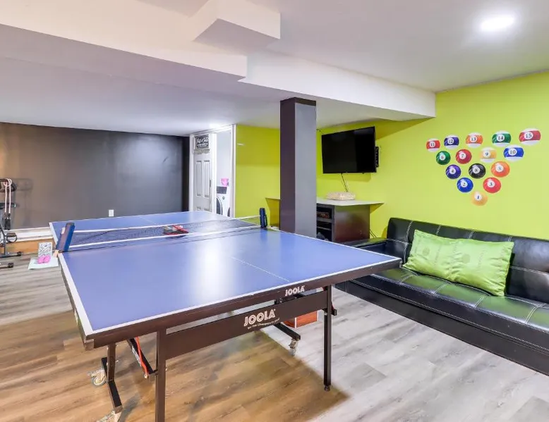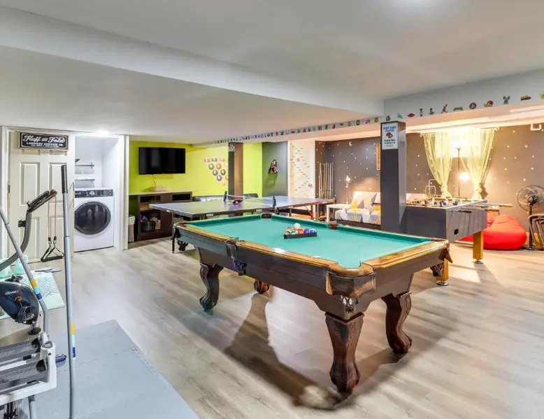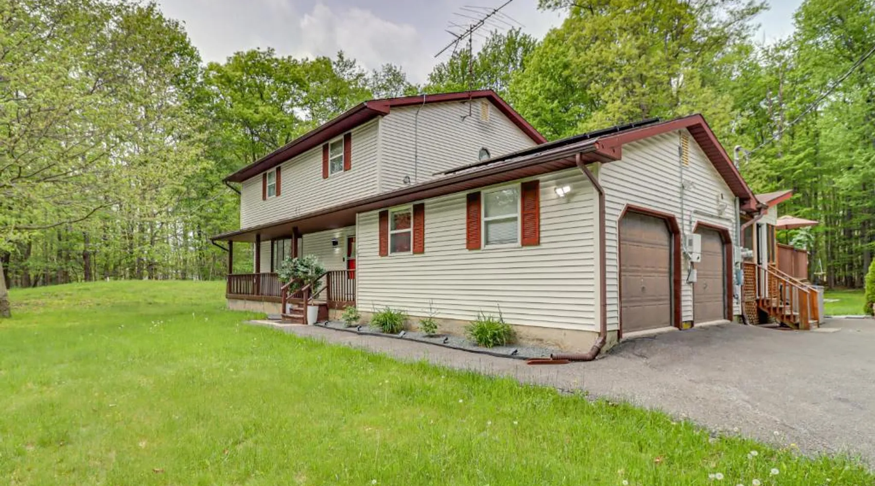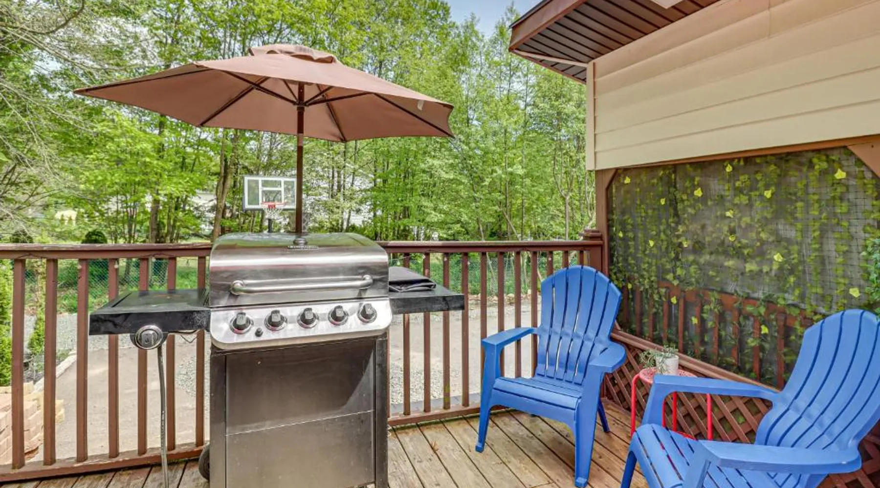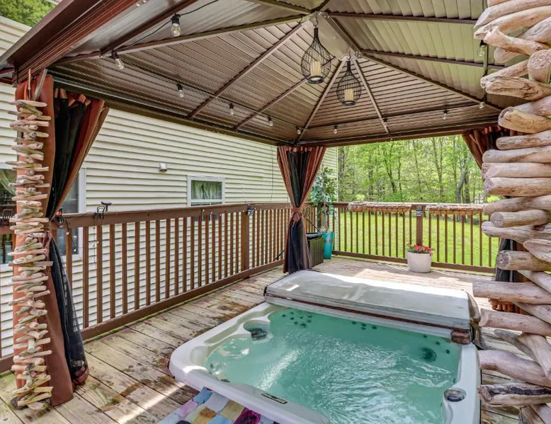 Spacious Holiday Home: Long Pond Home with Hot Tub about 8 Mi to Kalahari! in Long Pond offers a spacious setting with four bedrooms and three bathrooms. The property includes a living room and a fully equipped kitchen. Modern Amenities: Guests enjoy free WiFi, air-conditioning, a hot tub, and a games room. Additional facilities include a washing machine, fireplace, barbecue, and outdoor dining area. Convenient Location: Located 40 mi from Lehigh Valley International Airport, the property is near attractions such as Pocono Raceway (6.2 mi), Kalahari Waterpark (8.1 mi), and Delaware Water Gap National Recreation Area (27 mi). The hot tub and fireplace are the special features of this holiday home. This spacious holiday home is consisted of of 1 living room, 4 separate bedrooms and 3 bathrooms with a bath and free toiletries. Guests will find a stovetop, a refrigerator, kitchenware and an oven in the fully equipped kitchen. The holiday home also has a barbecue. The air-conditioned holiday home offers a flat-screen TV, a washing machine, a private entrance and a coffee machine. The unit offers 8 beds.