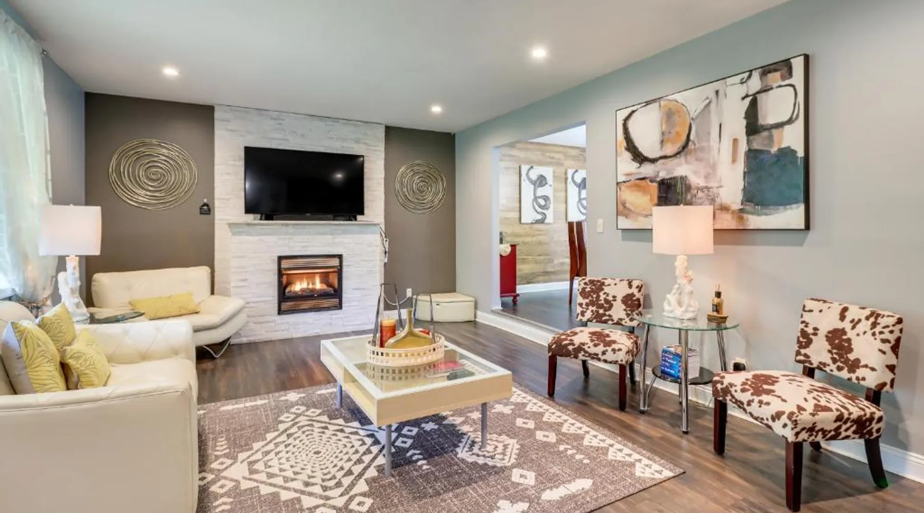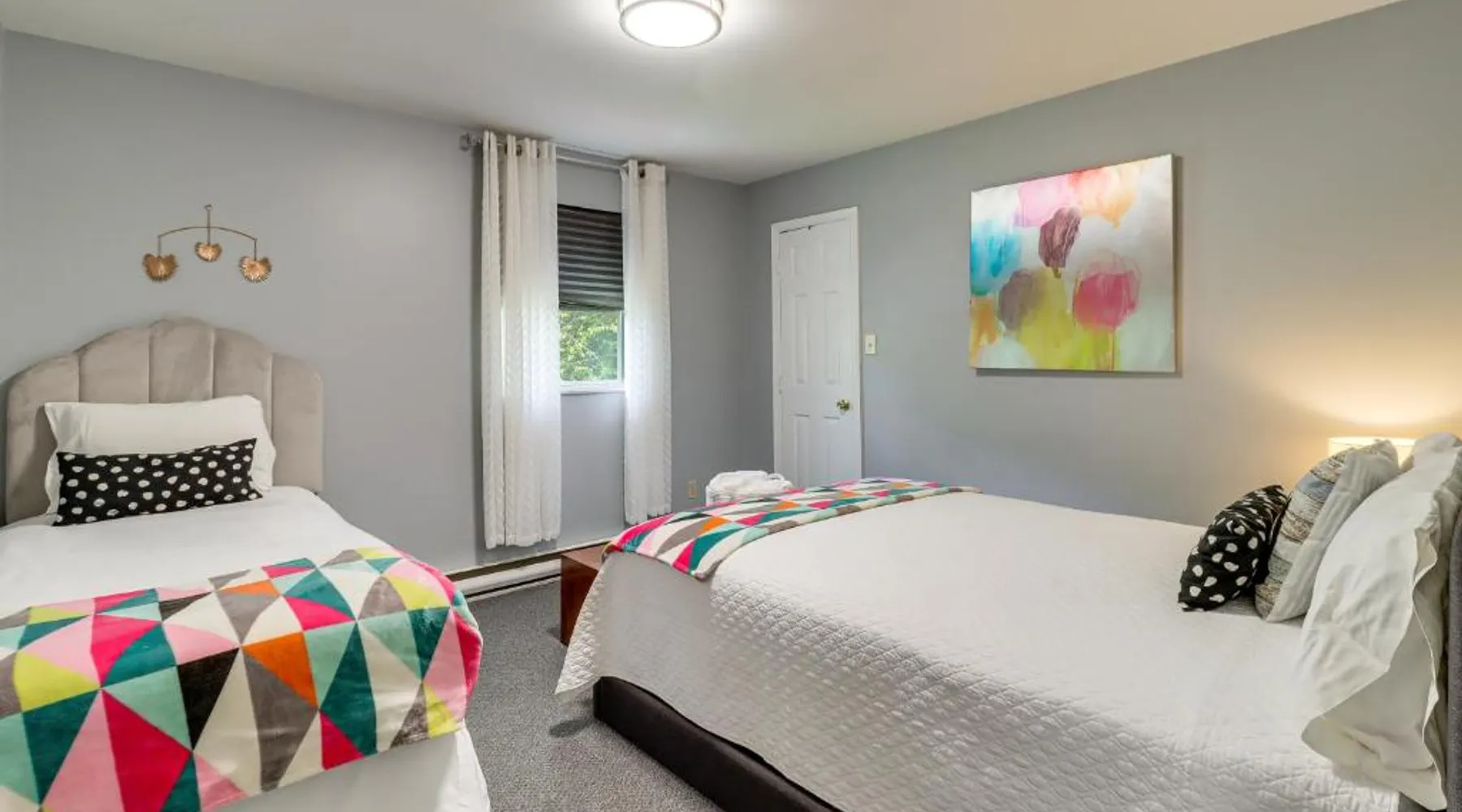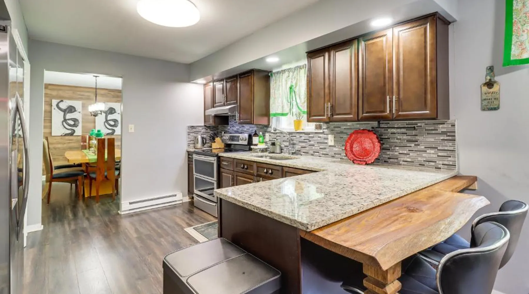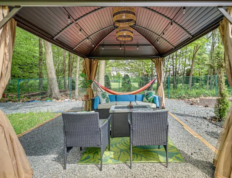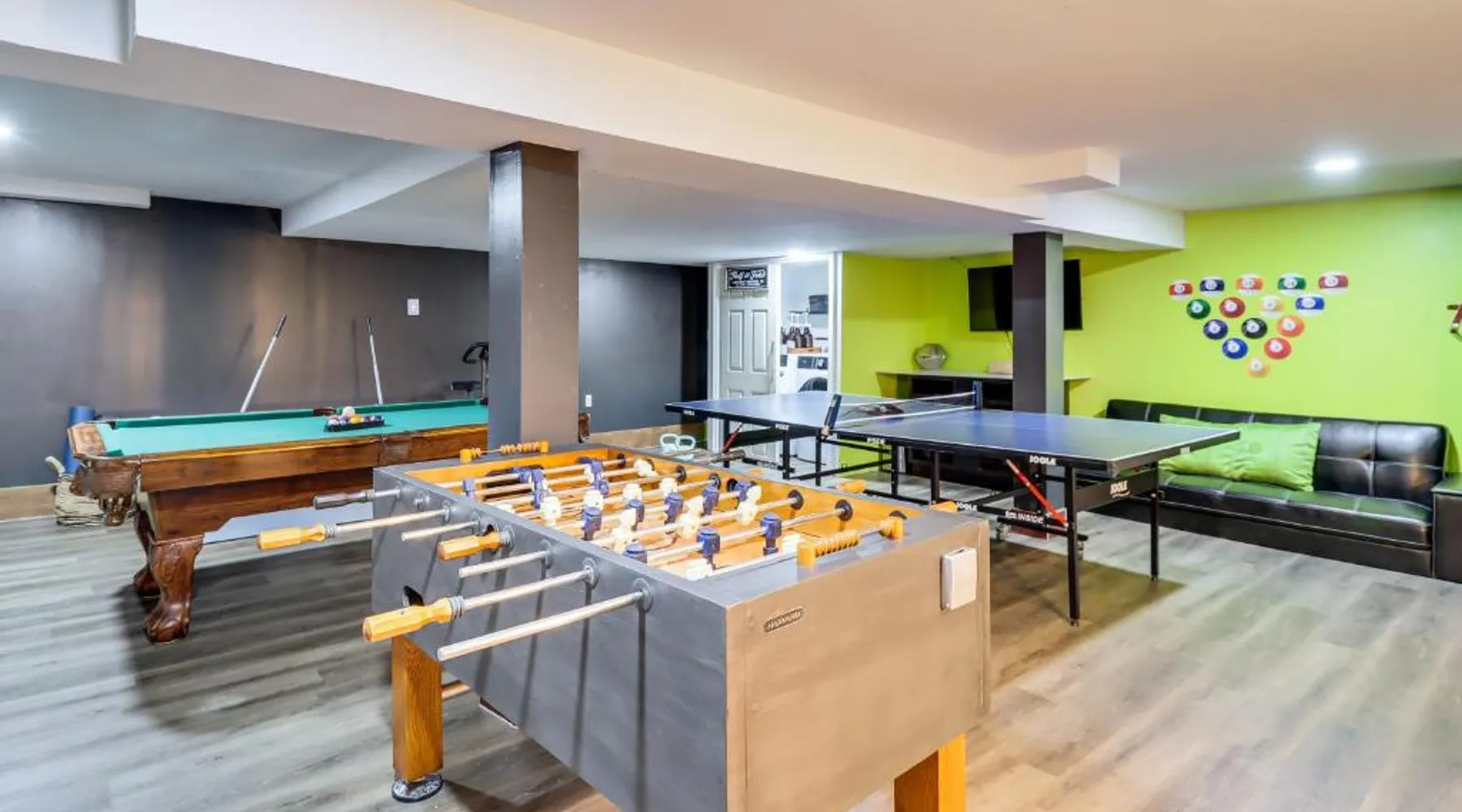 Spacious Holiday Home: Long Pond Home with Hot Tub about 8 Mi to Kalahari! in Long Pond offers a spacious setting with four bedrooms and three bathrooms. The property includes a living room and a fully equipped kitchen. Modern Amenities: Guests enjoy free WiFi, air-conditioning, a hot tub, and a games room. Additional facilities include a washing machine, fireplace, barbecue, and outdoor dining area. Convenient Location: Located 40 mi from Lehigh Valley International Airport, the property is near attractions such as Pocono Raceway (6.2 mi), Kalahari Waterpark (8.1 mi), and Delaware Water Gap National Recreation Area (27 mi). The hot tub and fireplace are the special features of this holiday home. This spacious holiday home is consisted of of 1 living room, 4 separate bedrooms and 3 bathrooms with a bath and free toiletries. Guests will find a stovetop, a refrigerator, kitchenware and an oven in the fully equipped kitchen. The holiday home also has a barbecue. The air-conditioned holiday home offers a flat-screen TV, a washing machine, a private entrance and a coffee machine. The unit offers 8 beds.
